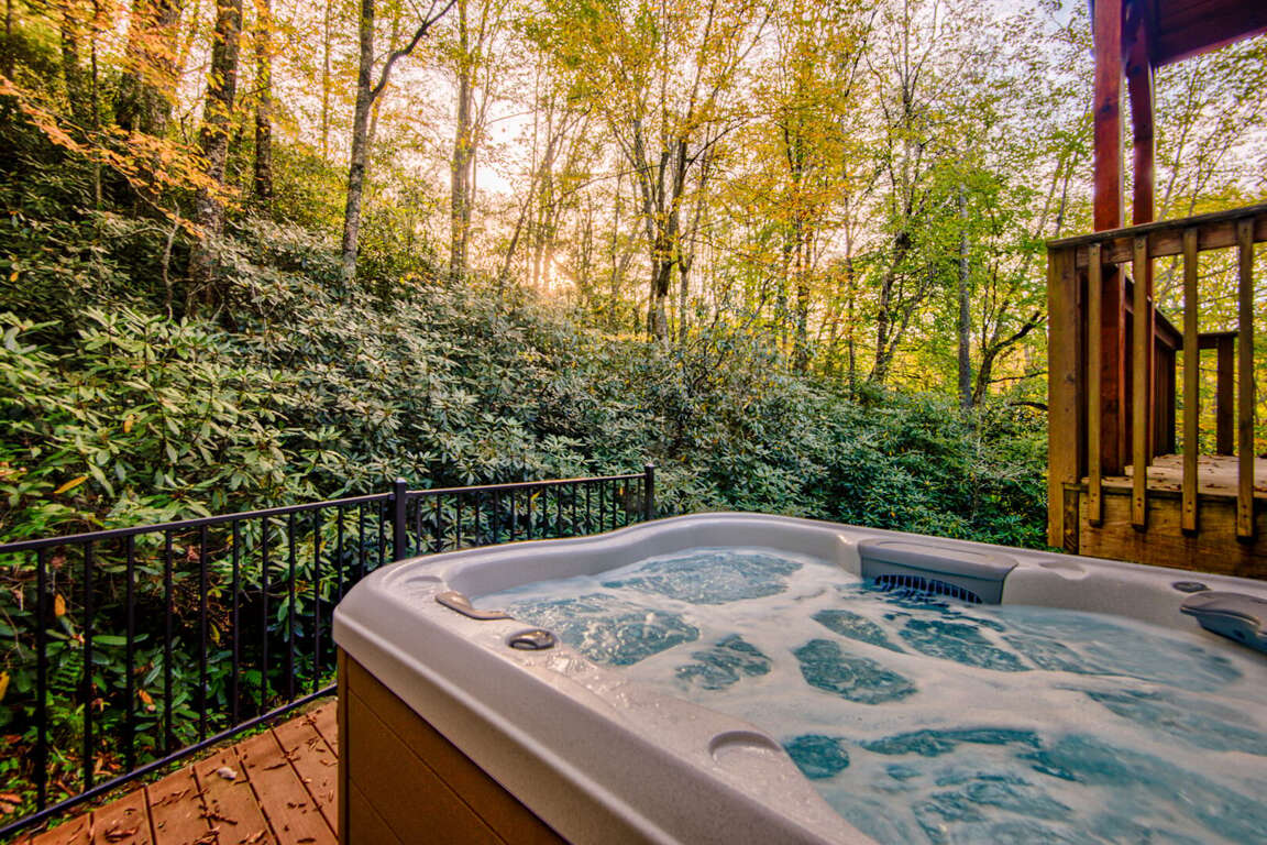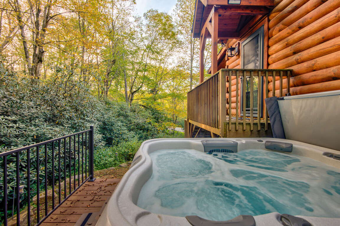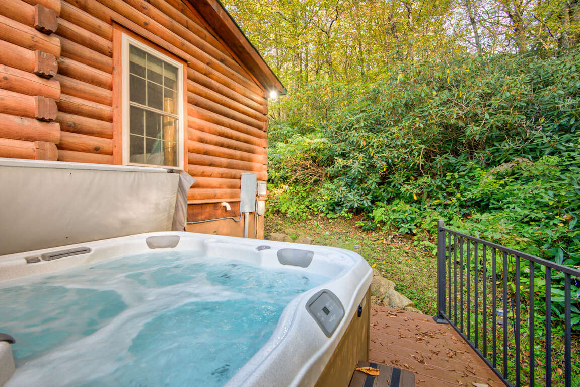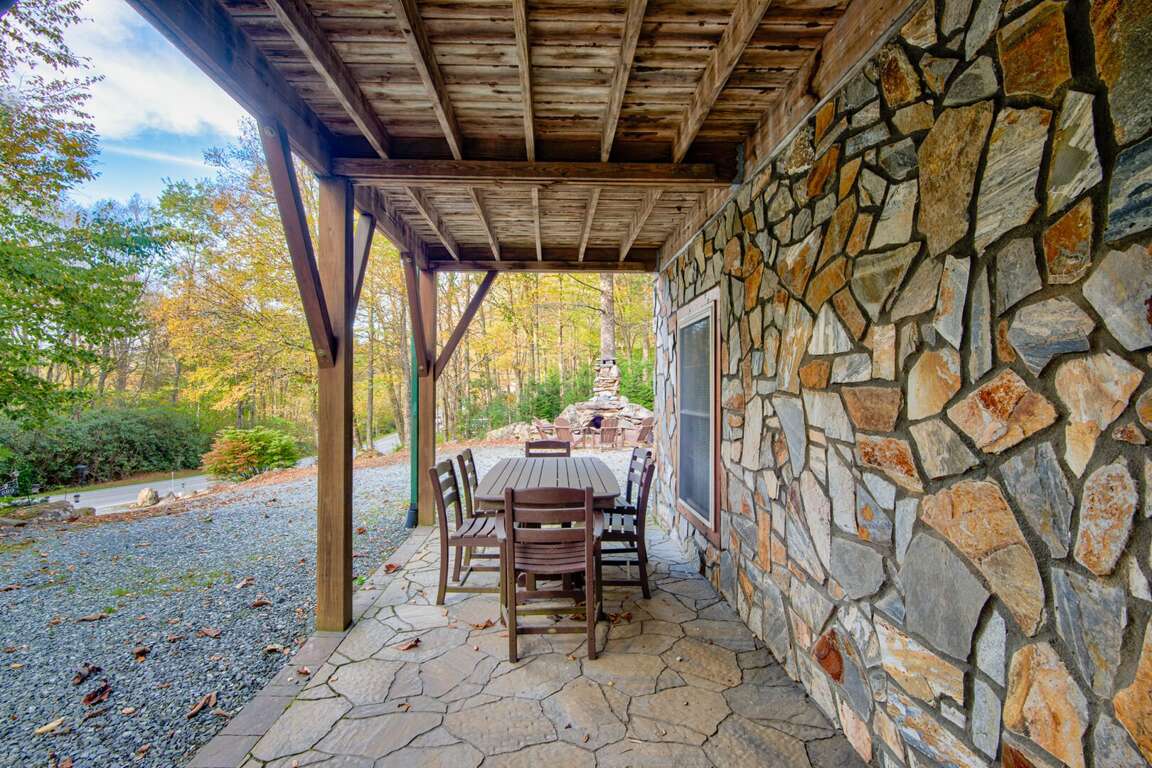 Outside, relaxation awaits! Soak in the hot tub, sit out on the lovely covered porch, or enjoy the custom-built outdoor wood burning stone fireplace.<br />