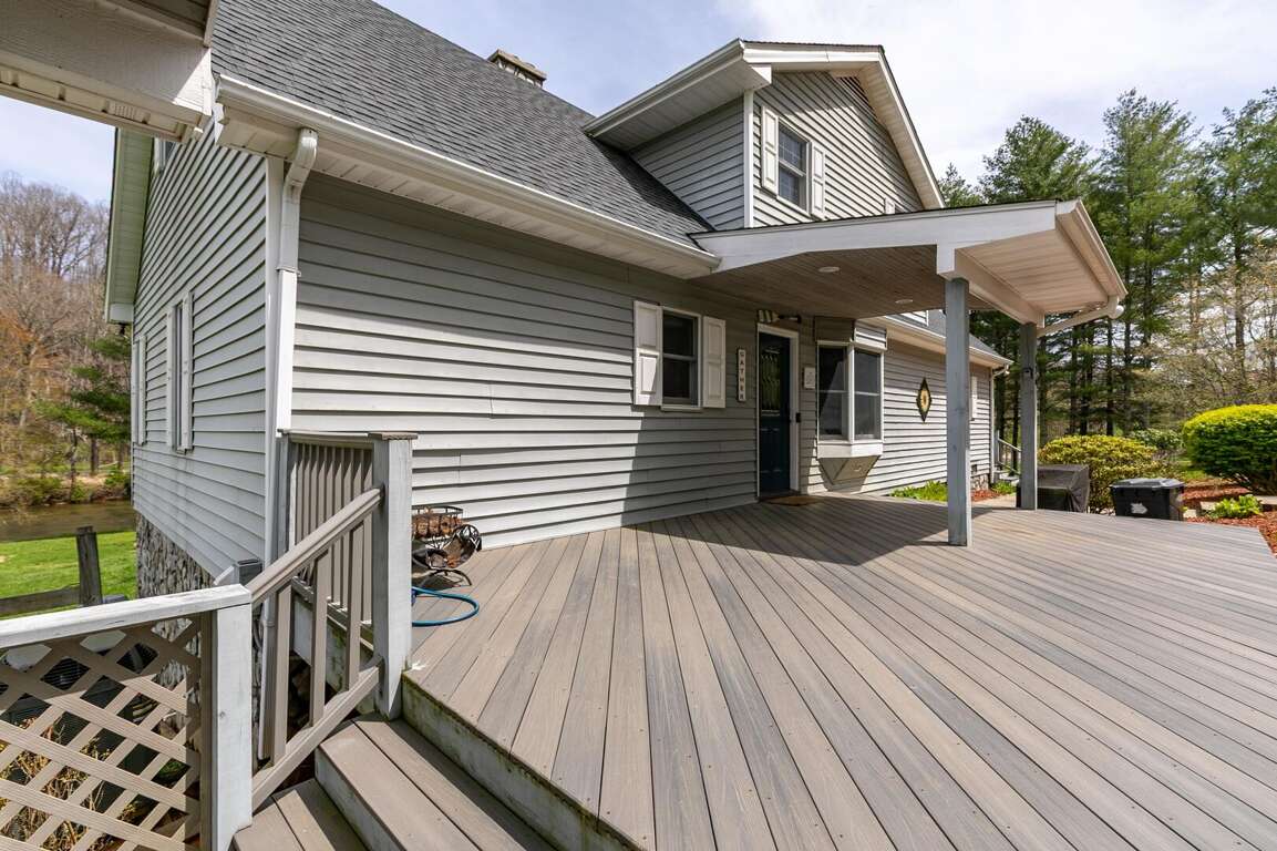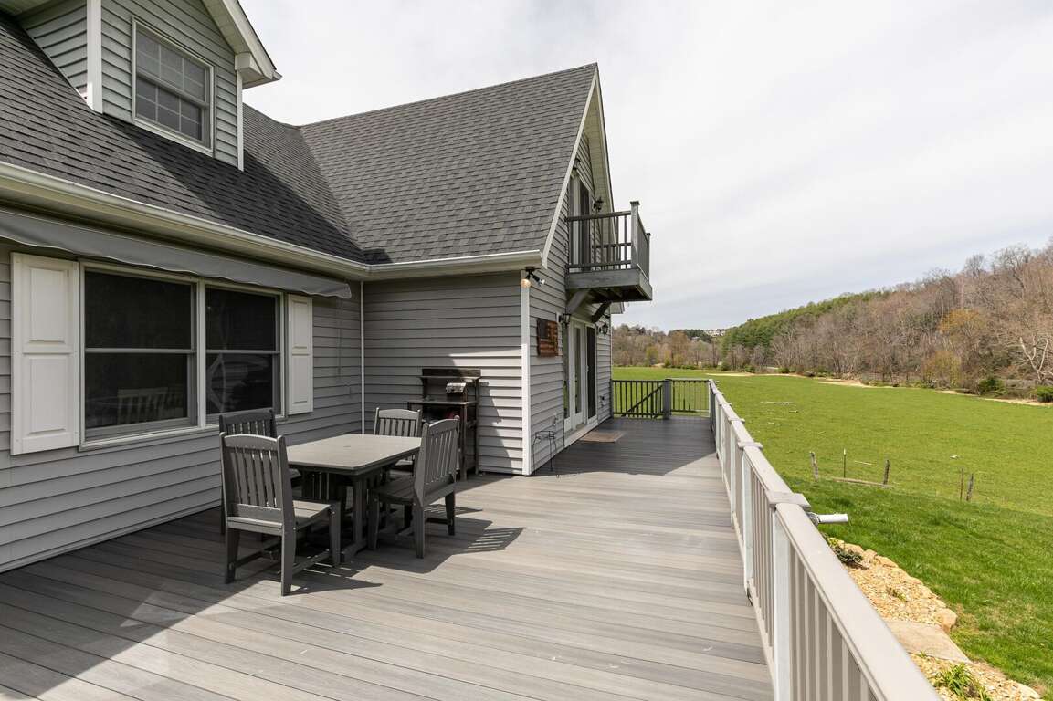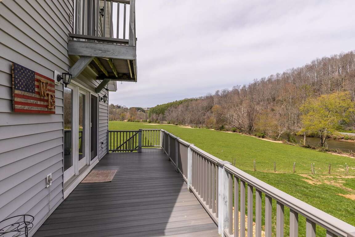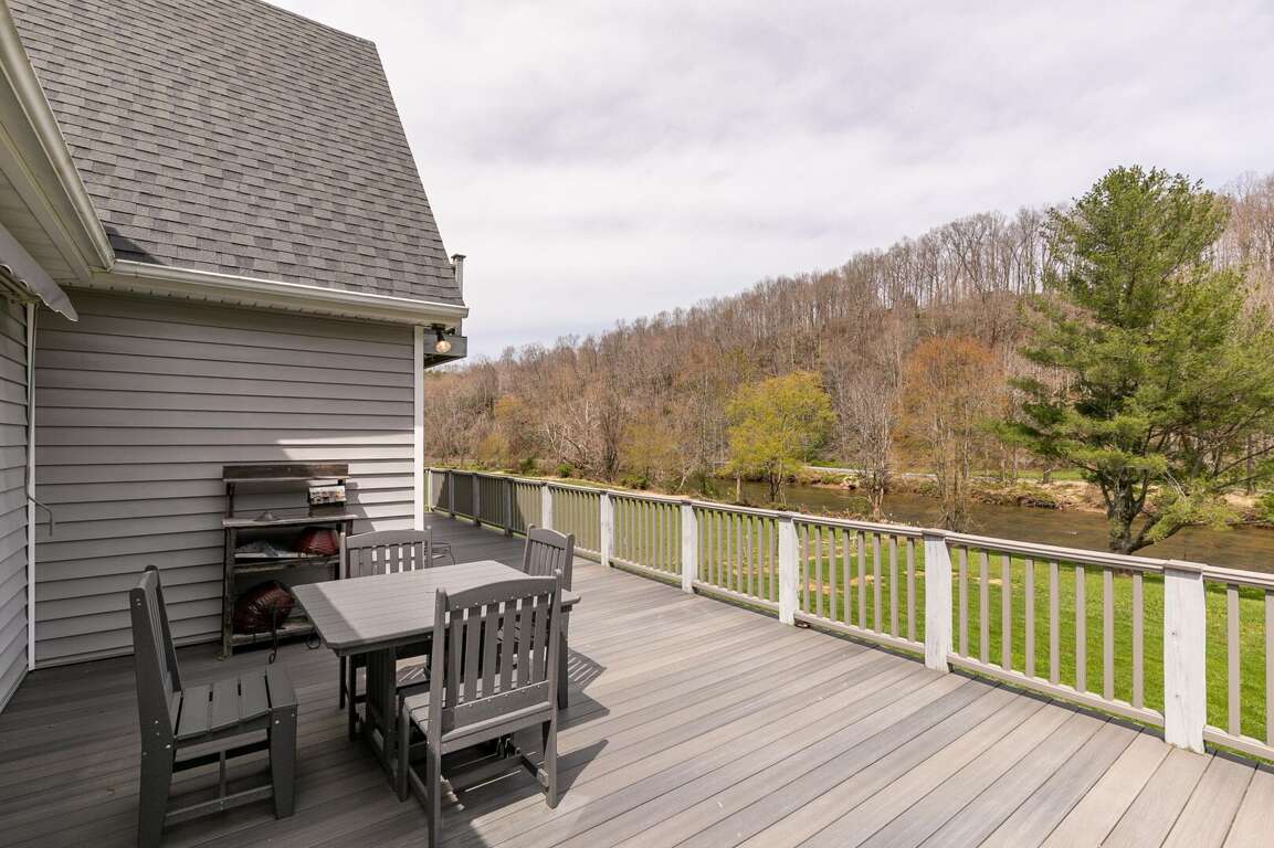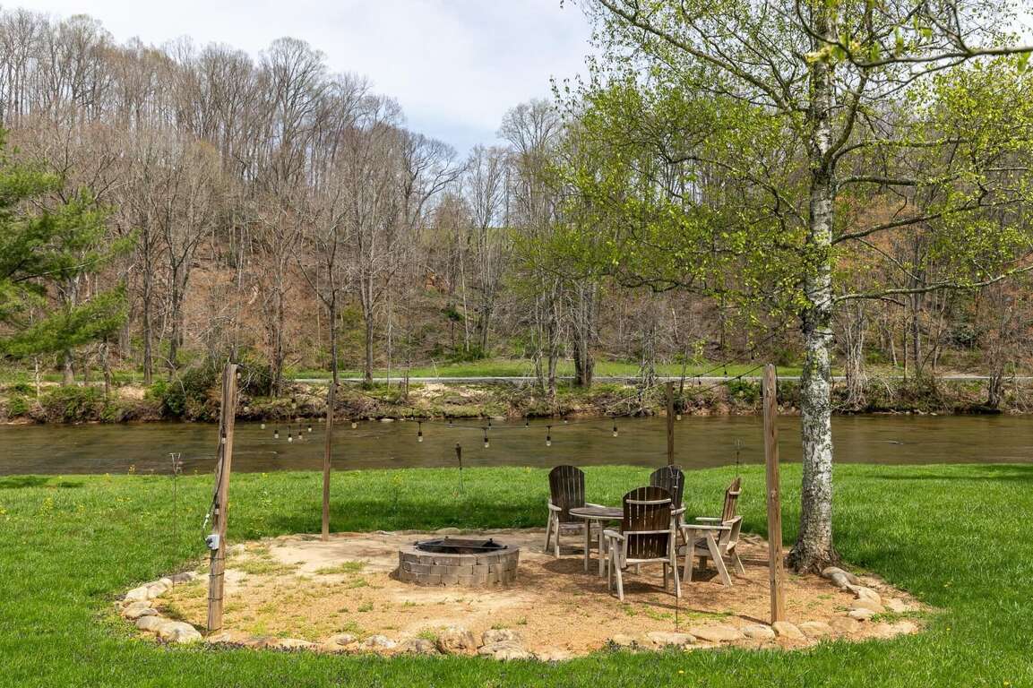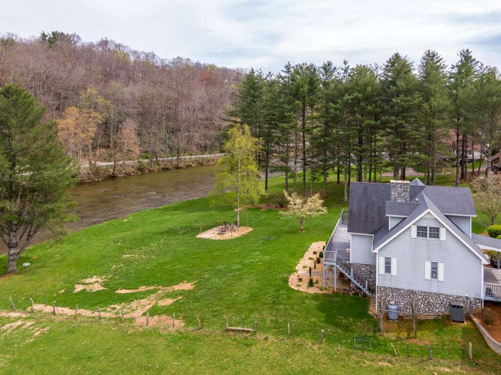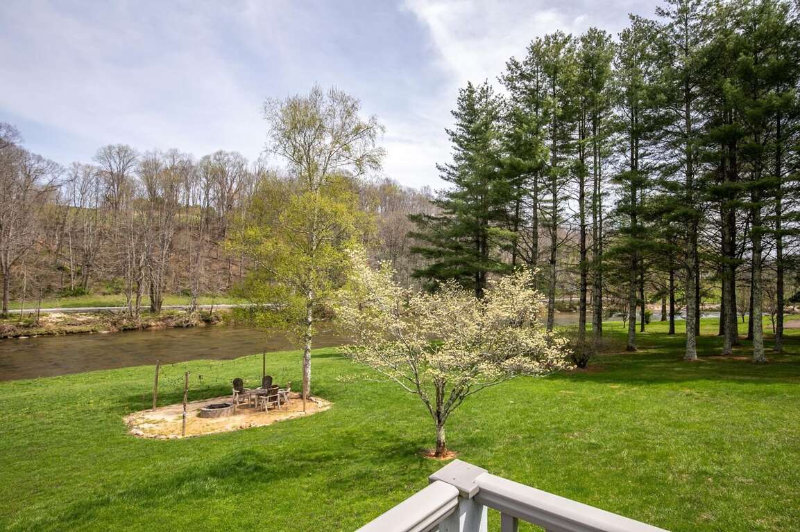 Step outside and immerse yourself in nature from the private balcony on the top level, the large wrap around deck on the main level, or the patio opening out to the back yard. Each of these overlook the lawn and the beautiful New River. The spacious, flat yard is perfect for outdoor games, while the beautifully designed firepit area offers a cozy spot to gather under the stars. When you're ready to relax, sit back on the patio swing and take in the serene river or head around to the covered hot tub. Best of all, the expansive river frontage allows guests to splash around on hot summer days making memories you and your loved ones will cherish long after you leave.<br />