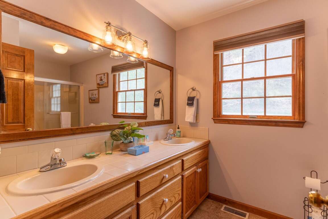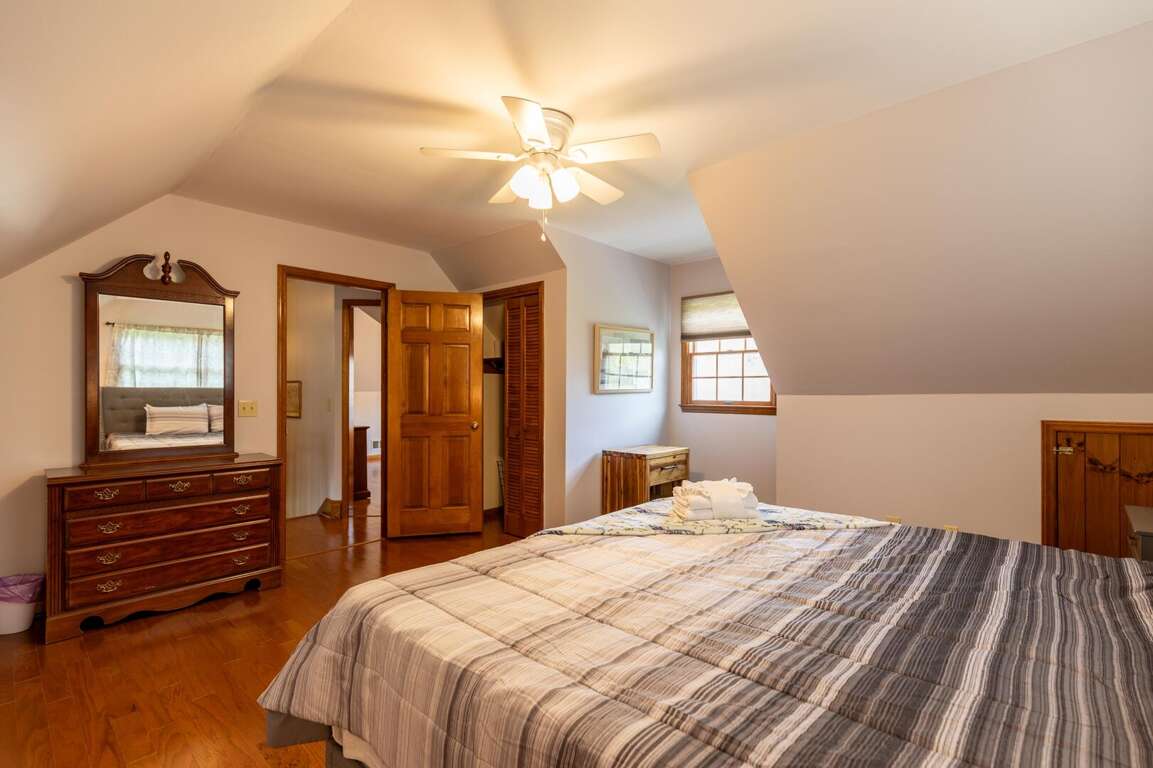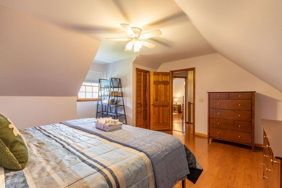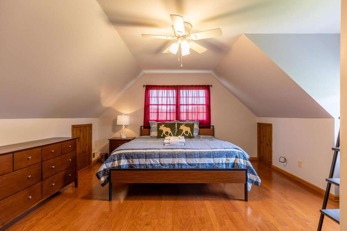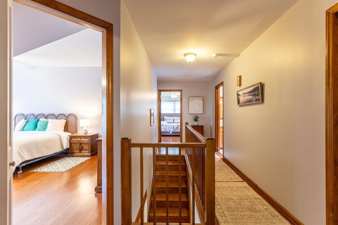 The upper level features three separate bedrooms, each with a comfortable and spacious king-sized bed and a ceiling fan to ensure your comfort. The centrally located bathroom on this floor offers double vanities for spacious morning preparations and a shower-tub combo.<br />