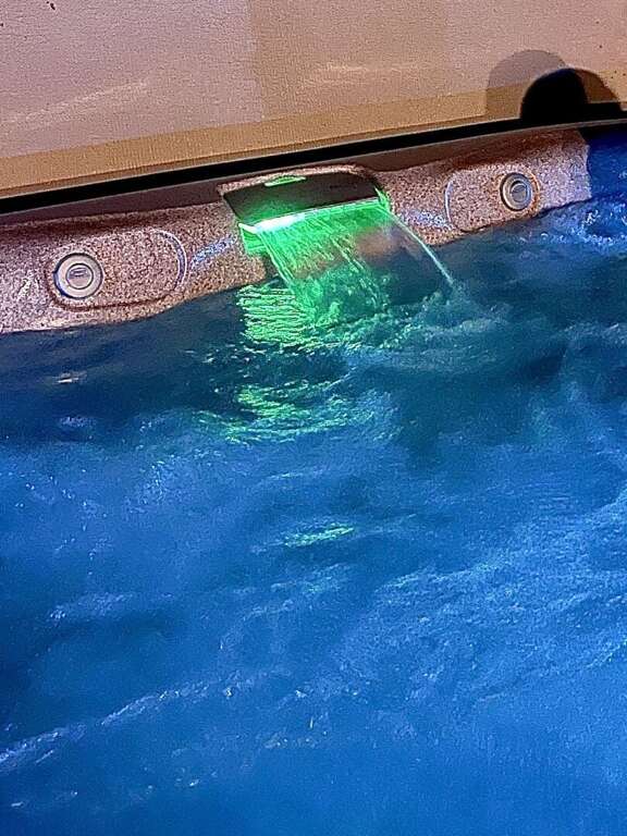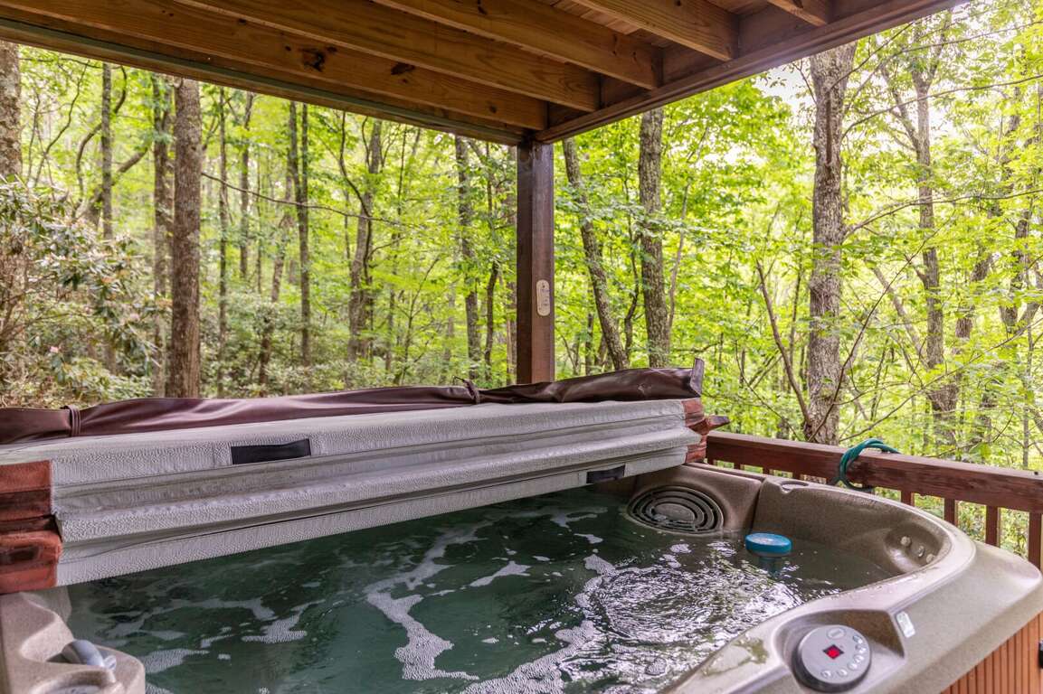 Hot Tub with towel warmer on outdoor covered deck<br />