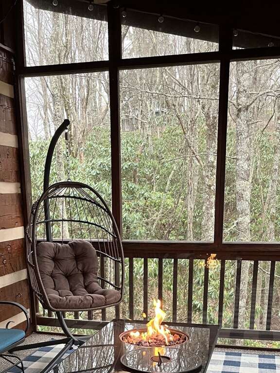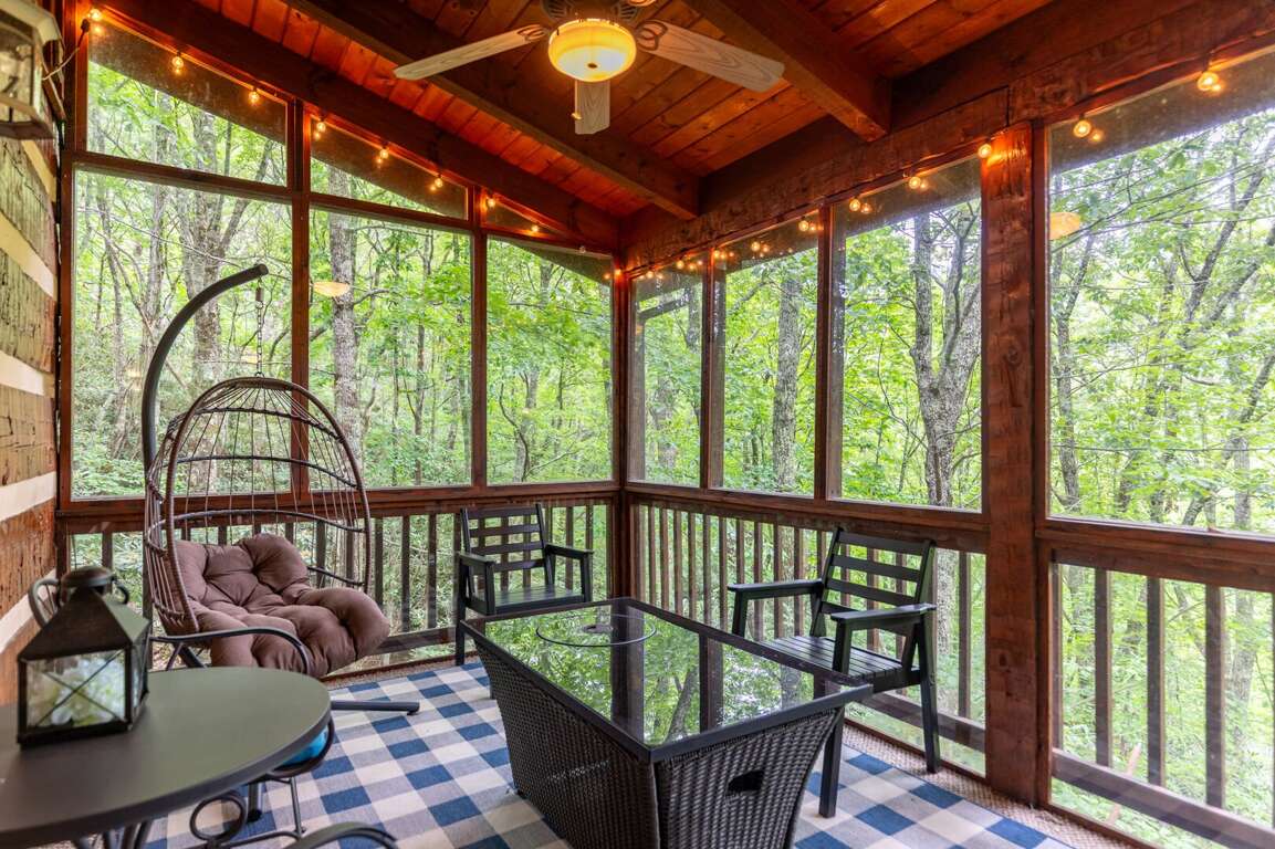 Glassed/Screened-in main level deck with Swing Egg Chair<br />