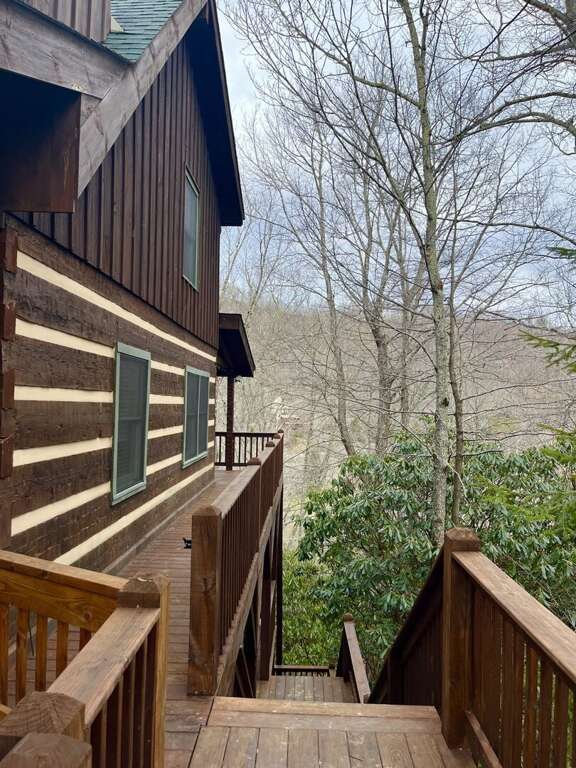 <strong>HawksNest View</strong>, is a gem of a find in the mountains with its almost unheard of <strong>no-stairs entry</strong>. It's an authentic log cabin with ~2400 square feet of unique spaces to spread out. It has 4 bedrooms, 3 baths and 5th sleeping space to sleep a total of 11 comfortably. It is a 3 story, 4 deck spaces home constructed of air dried Hemlock from Western NC. This beautifully crafted cabin blends rustic charm with modern comfort and is thoughtfully designed to accommodate small or large groups with ample seating across a variety of spaces. It is centrally located in 7Devils which is right smack dab in the middle of all the top summer and winter activities. It is under 15 miles to most of the top key city attractions including Boone, Sugar Mountain, Beech Mountain, App Mountain, Grandfather Mountain, Banner Elk and Blowing Rock. In fact, HawksNest Snow Tubing/Ziplining is only 2.5 miles across the ridge. This central location makes our HawksNest View cabin an ideal home base for both summer and winter fun. <br />