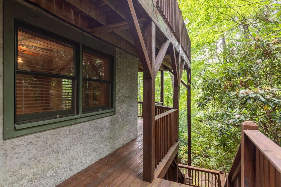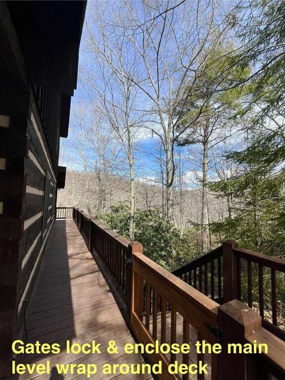 All of the Decks & Porches make this property a true gem. They deserve to be called rooms of their own. The 4 outdoor living spaces of this cabin really steals the show. They add so much more living space to the cabin itself. HawkNest View is truly <strong>“Indoor-Outdoor living”</strong> at its best. The wrap around decks are one of the best amenities it offers by far. The thoughtful deck furniture on every level will leave your family never wanting to go indoors. In fact, take a close look at the pictures of the main level decking. It has a unique gating system that when closed and locked it encloses the main level deck like a “fence”. It may offer some dogs a little indoor/outdoor flexibility themselves, depending on your dog's size & agility. Use your own judgment and be sure to keep a close eye. There are bear and coyote sightings regularly as well as other animals that are less dangerous but would still be tempting to chase. When you are ready to explore the grounds with family or leashed dogs, just step off the lowest level deck platform to the backyard or off the front porch to the wooded space to the left of the home. Our property borders a large area of common area greenspace. There is a lot of area to explore right in our own lush, wooded backyard. You can fully enjoy your surroundings! So go take a peaceful walk with your dog or discover one of the <strong>two stocked catch-and-release ponds</strong> in the “The Lakes” neighborhood. There's so much to do and explore when you stay at HawkNest View! Whether it’s a romantic getaway, a small family vacation or a mountain escape with a large group of friends, HawksNest View offers the perfect balance of space, accessibility, and mountain magic. It has everything you need for an unforgettable stay. <br />