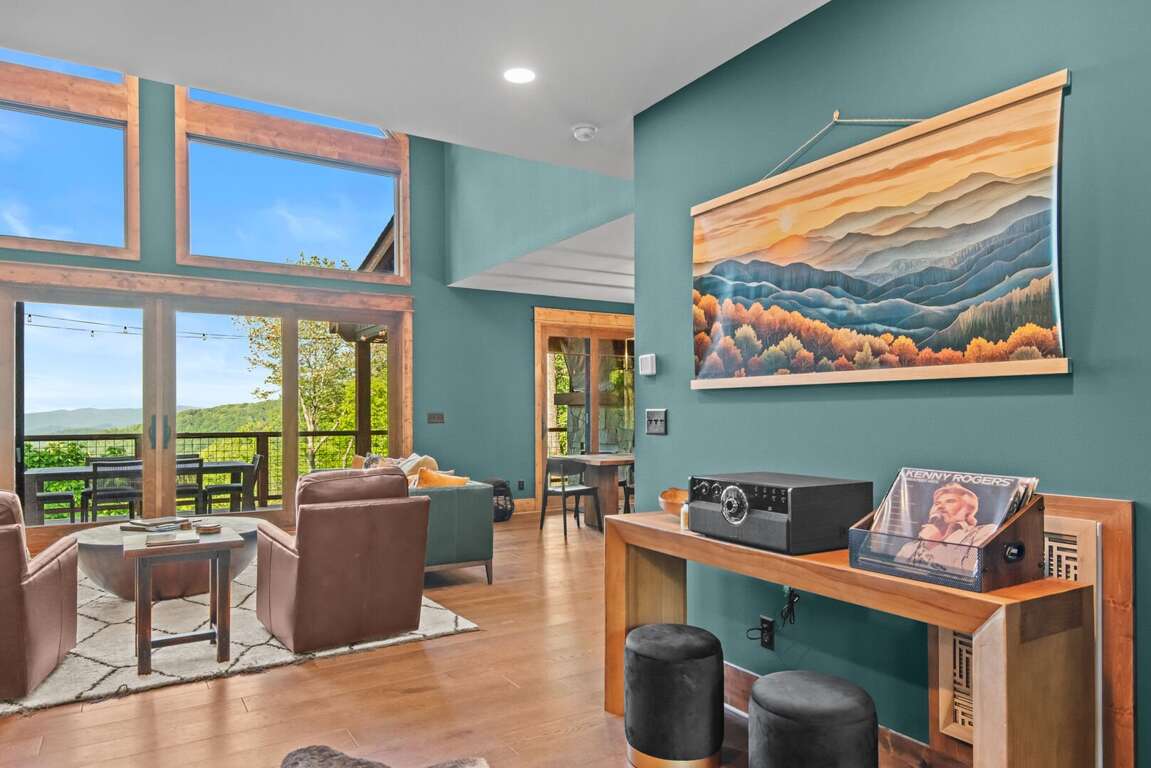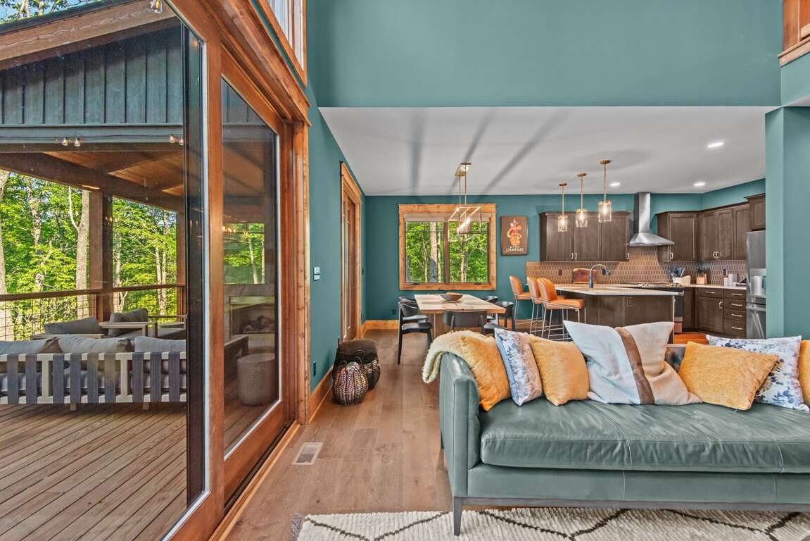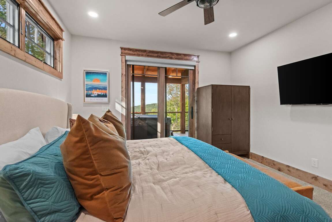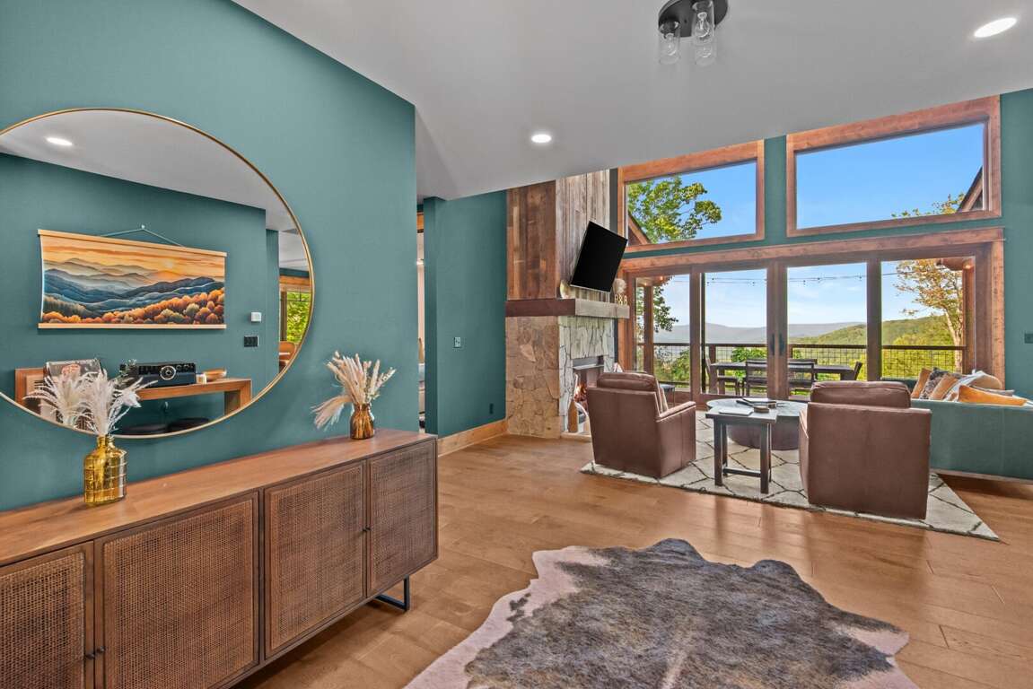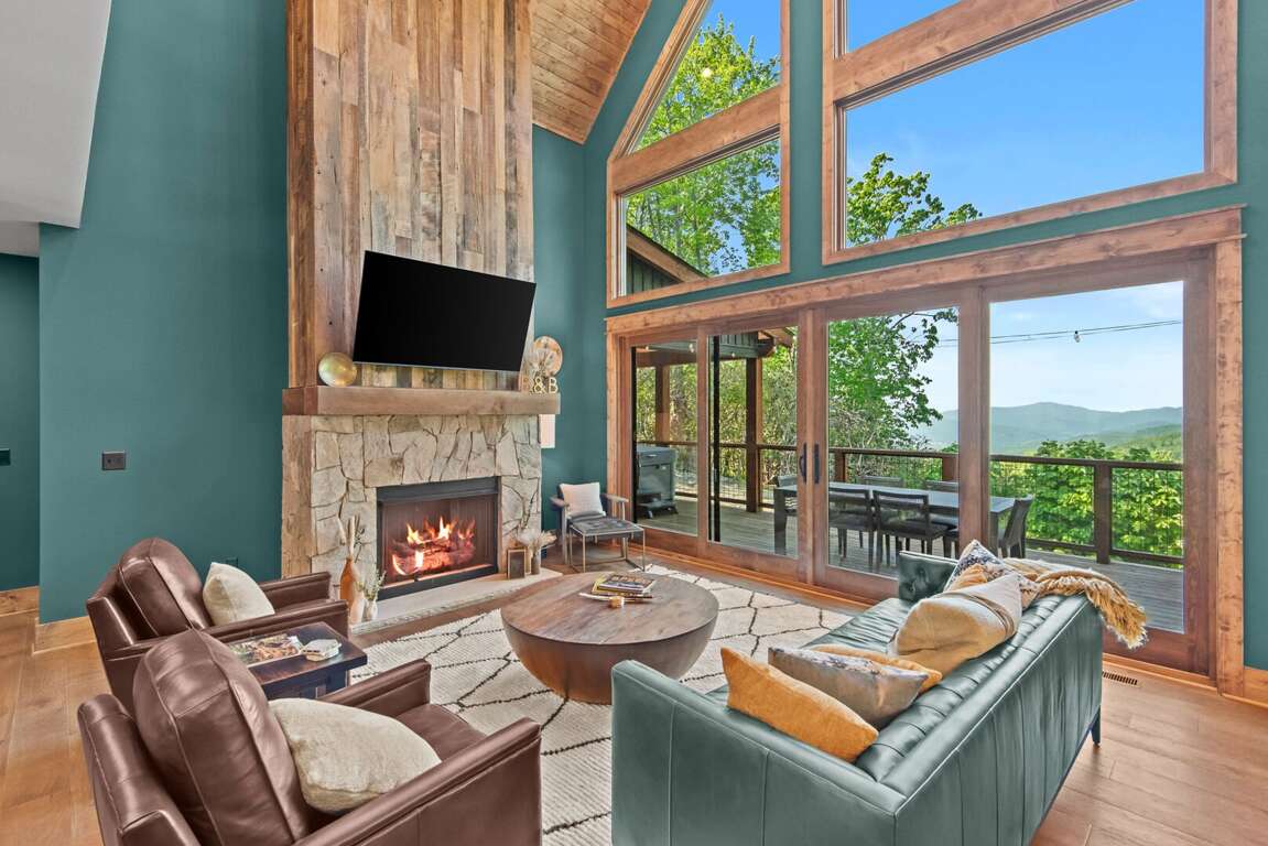 <strong>Hot-tub bliss + mountain magic:</strong> Spend evenings in your 6-person hot tub or lounge on the spacious, partially covered deck, soaking in sweeping mountain views, the soothing sound of nearby creeks, and fiery sunset hues. The deck also features a cozy gas fireplace with a large TV above. Perfect for family movie night! <br />