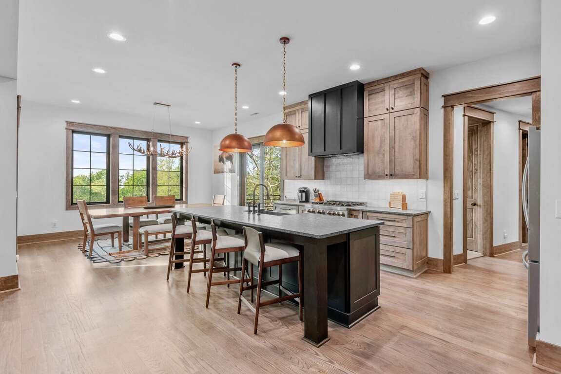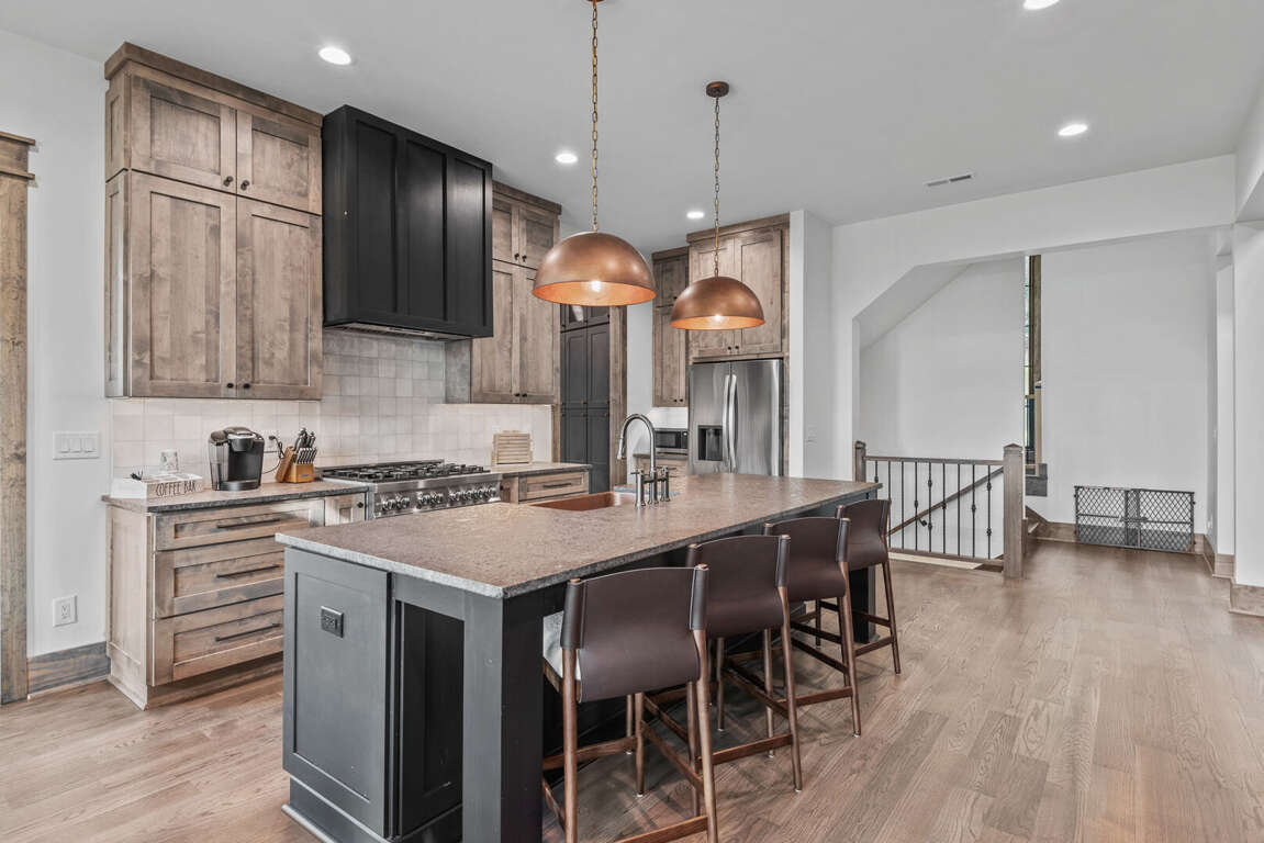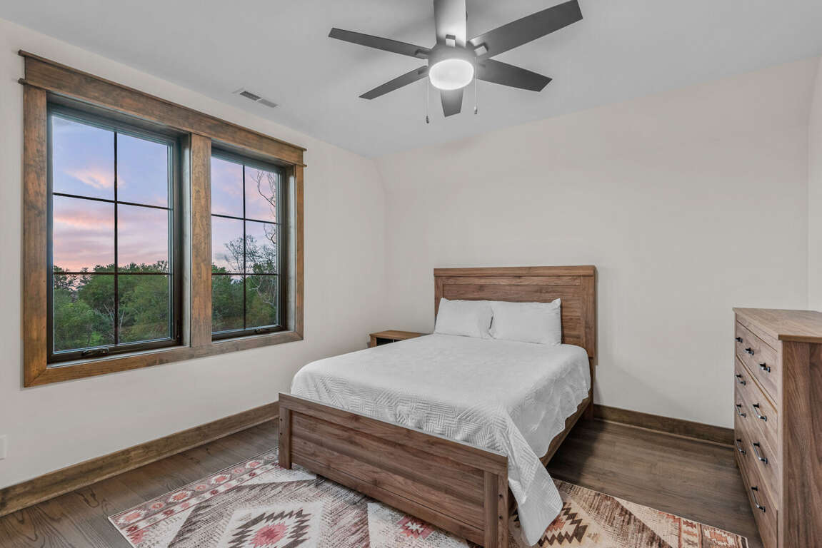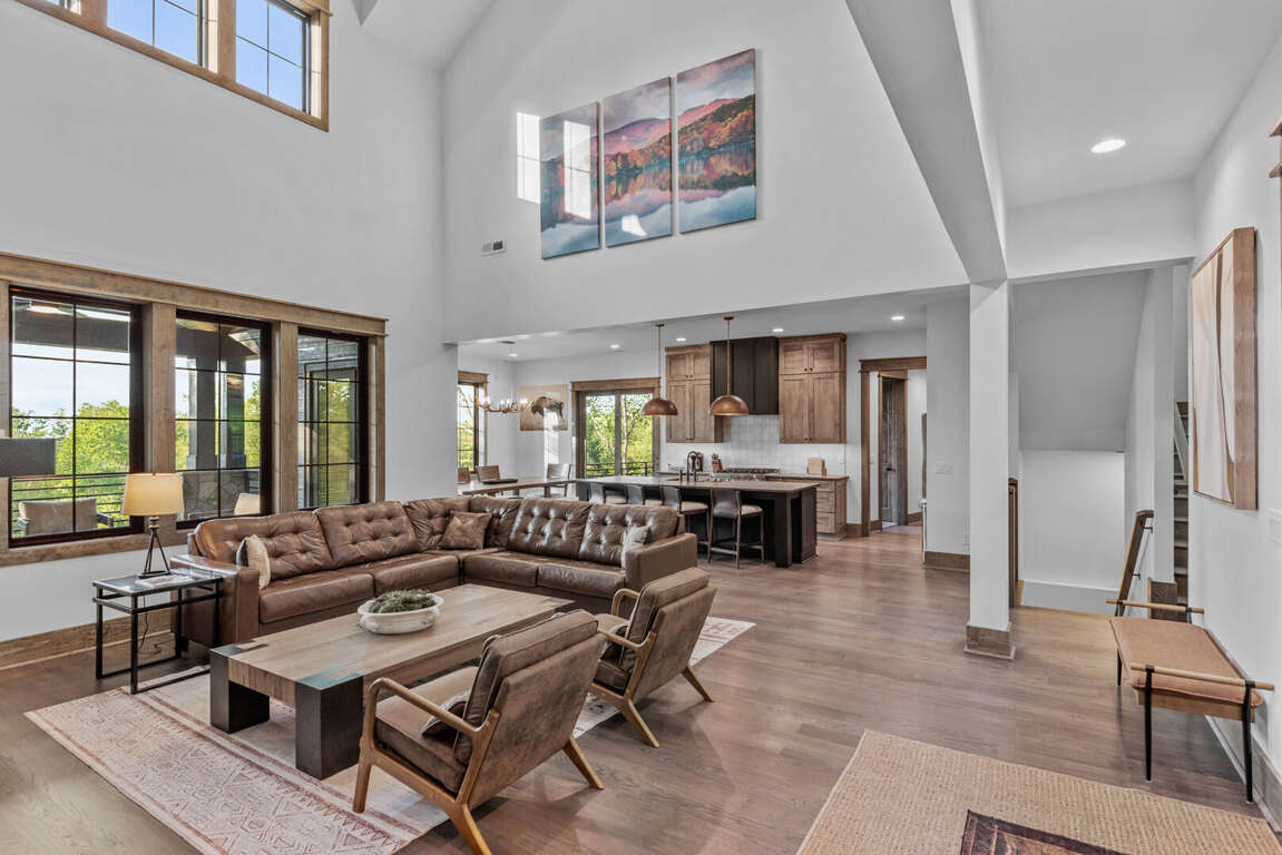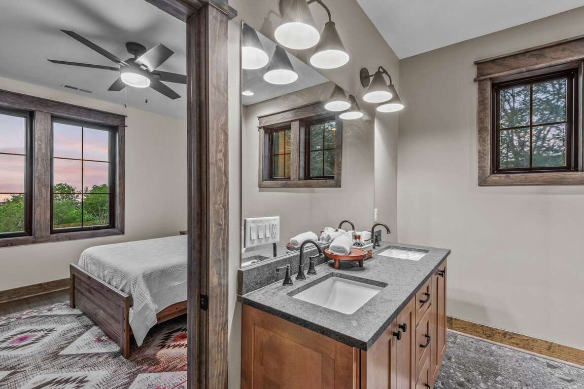 The home’s layout is designed for both comfort and privacy. On the main level, you'll find a luxurious king en suite, offering high-end finishes and convenient access to the main living areas. Upstairs, a queen en suite provides a private retreat, while a second queen bedroom and a bunkroom with two sets of twin-over-twin beds share a spacious full bathroom—perfect for accommodating family or guests. On the lower level, a cozy queen bedroom is located next to a full bath in the hallway, offering easy access and privacy. Each bedroom is carefully appointed to ensure every guest enjoys a restful and relaxing stay.<br />