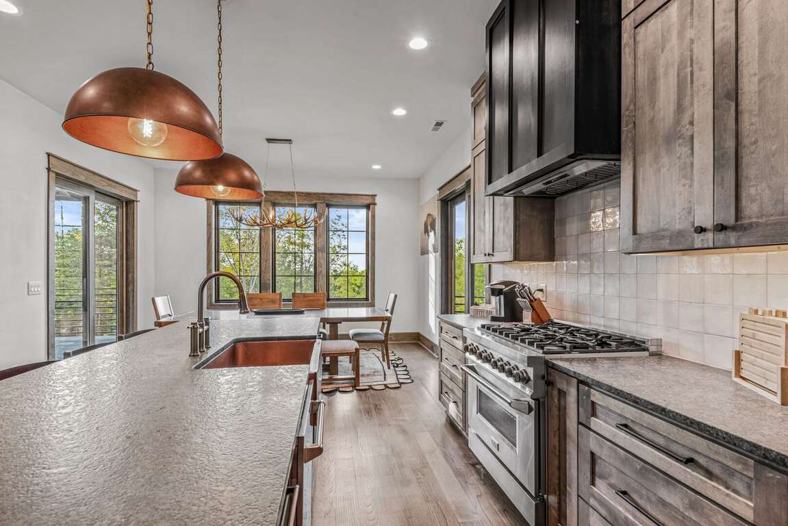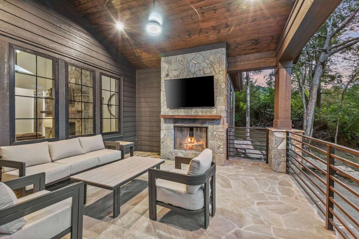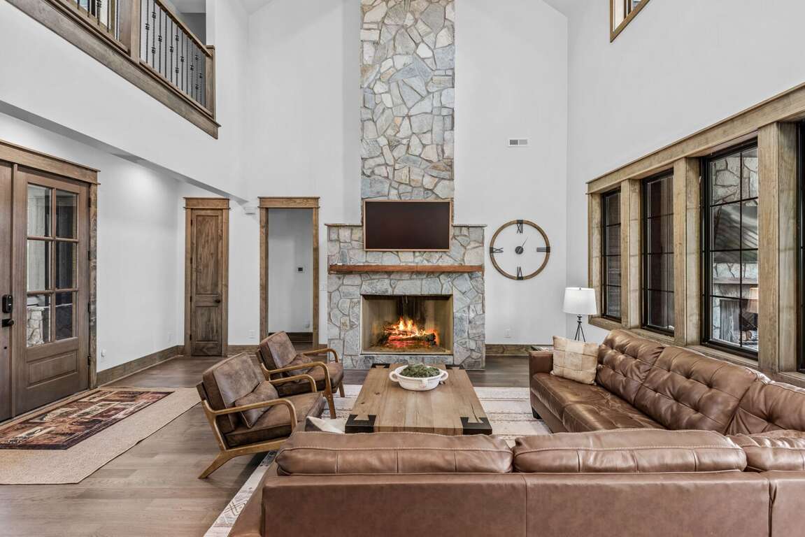 From the moment you arrive, you’ll be struck by the home’s imposing presence and sharp modern lines—mirroring the mysterious elegance of Gotham’s Dark Knight. Inside, soaring ceilings and sleek finishes create an atmosphere both moody and majestic. At the heart of the living space is a 72-inch wide wood-burning fireplace, designed to evoke the feeling of an indoor bonfire—perfect for gathering around with friends and family on chilly mountain evenings.<br />