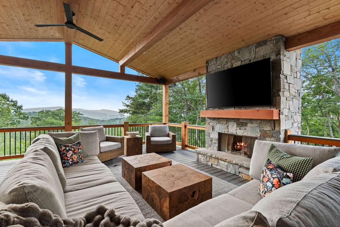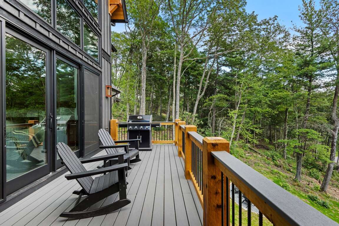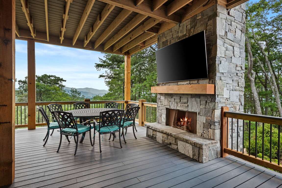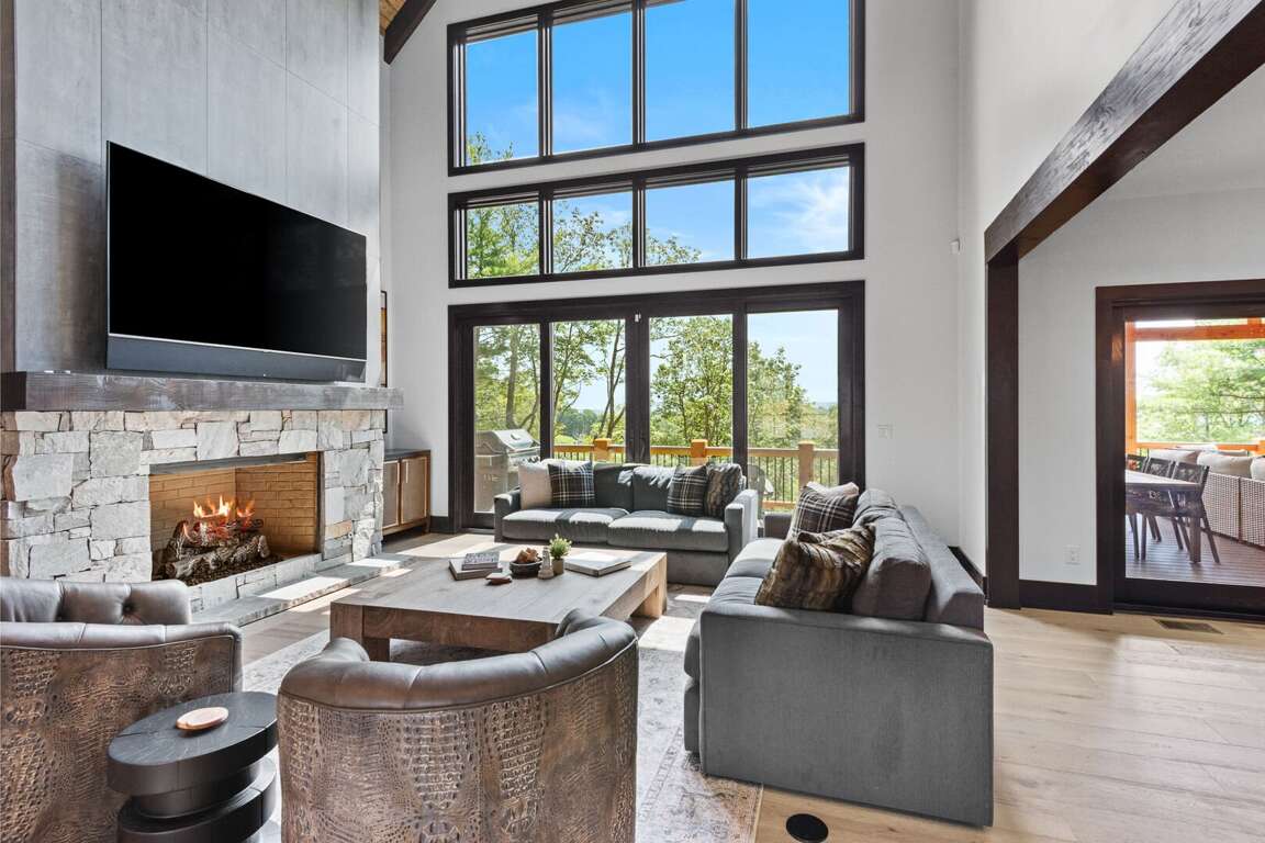 Outdoor living at One More Day is nothing short of exceptional, with two oversized decks designed for every season. The main-level deck includes a gas fireplace, TV, dining table for 12, and a gas grill, perfect for entertaining while soaking in the views. The lower deck features another fireplace, a TV, and a hot tub, creating a serene retreat under the stars. From there, steps lead down to a stone firepit surrounded by Adirondack chairs, where evenings are best spent sharing stories and s’mores.<br />