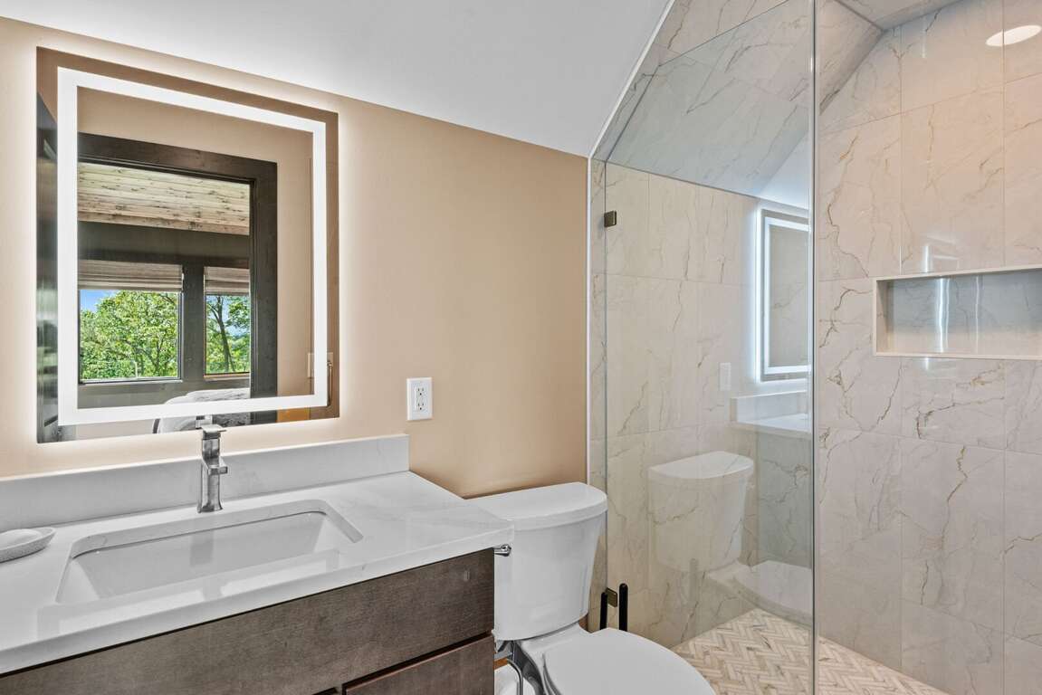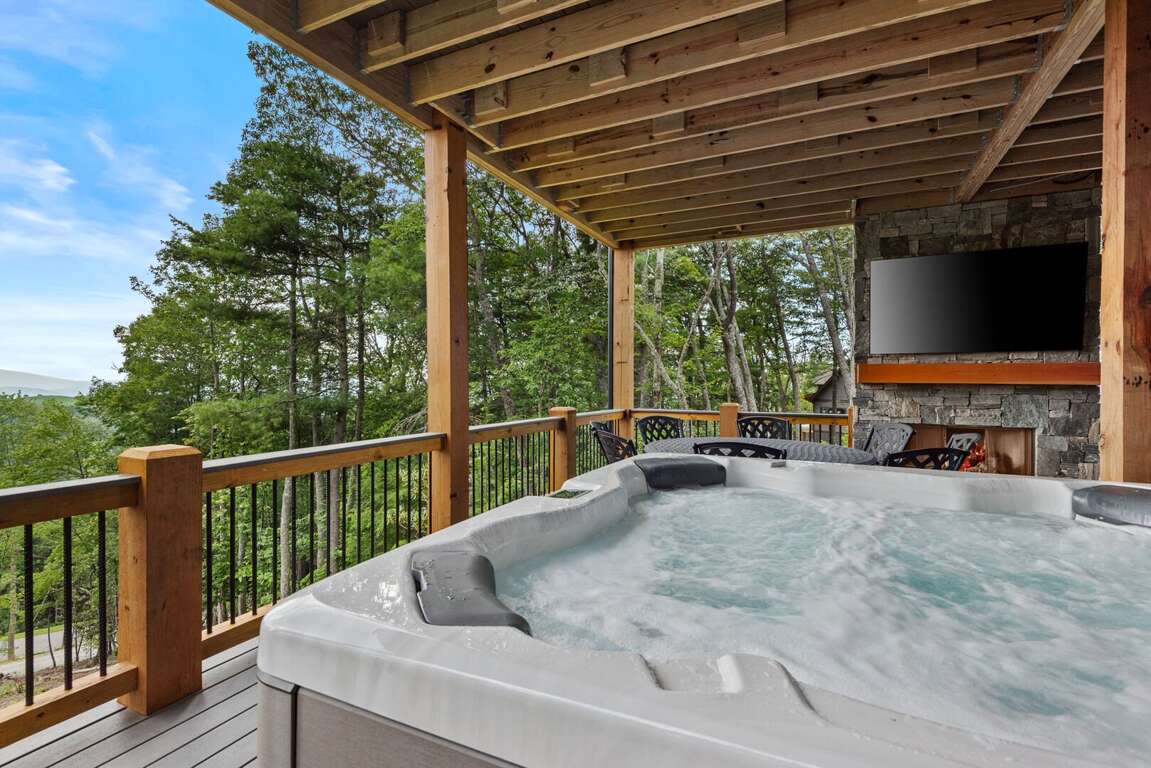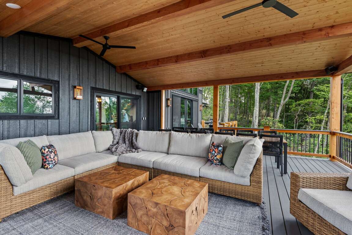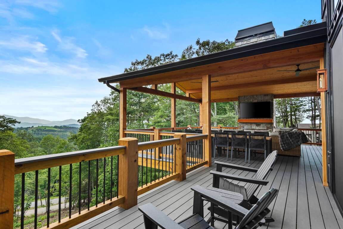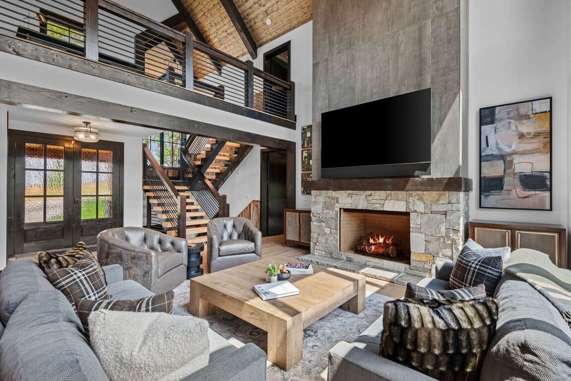 Outdoor living at One More Day is nothing short of exceptional, with two oversized decks designed for every season. The main-level deck includes a gas fireplace, TV, dining table for 12, and a gas grill, perfect for entertaining while soaking in the views. The lower deck features another fireplace, a TV, and a hot tub, creating a serene retreat under the stars. From there, steps lead down to a stone firepit surrounded by Adirondack chairs, where evenings are best spent sharing stories and s’mores.<br />