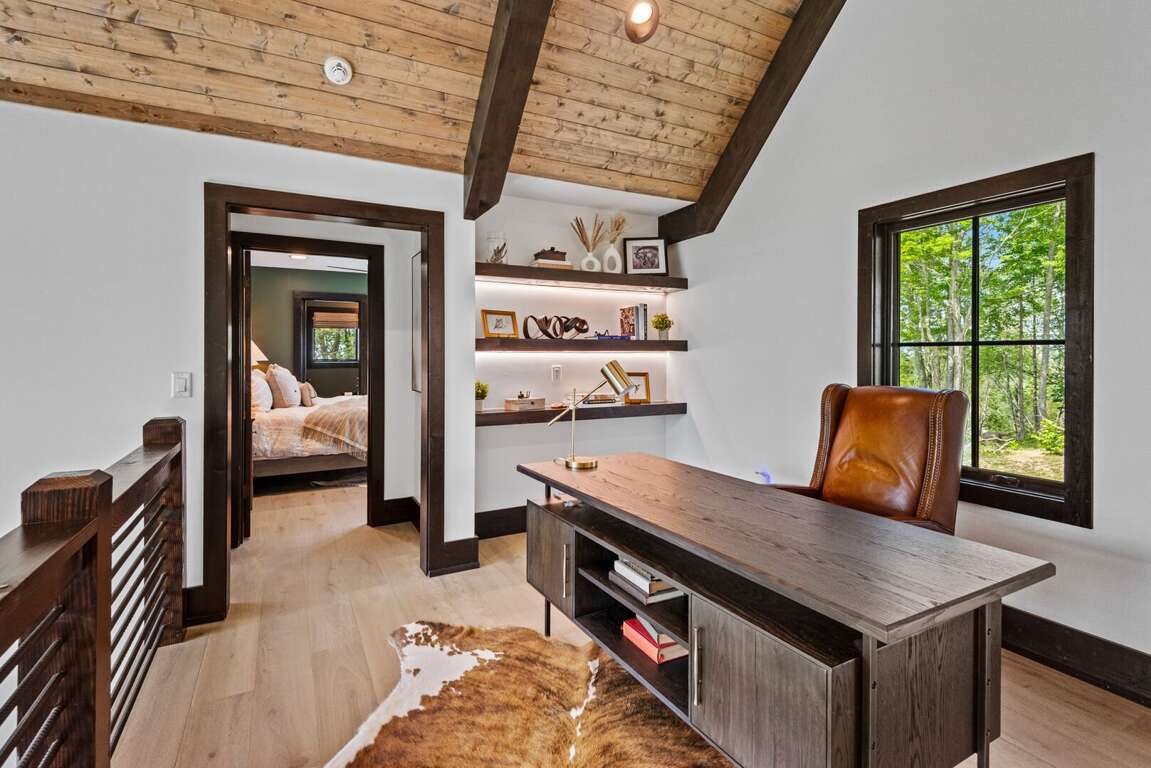 The loft features a dedicated workstation complete with dual monitors to easily connect your laptop, making it ideal for guests who need to balance relaxation with remote work.<br />