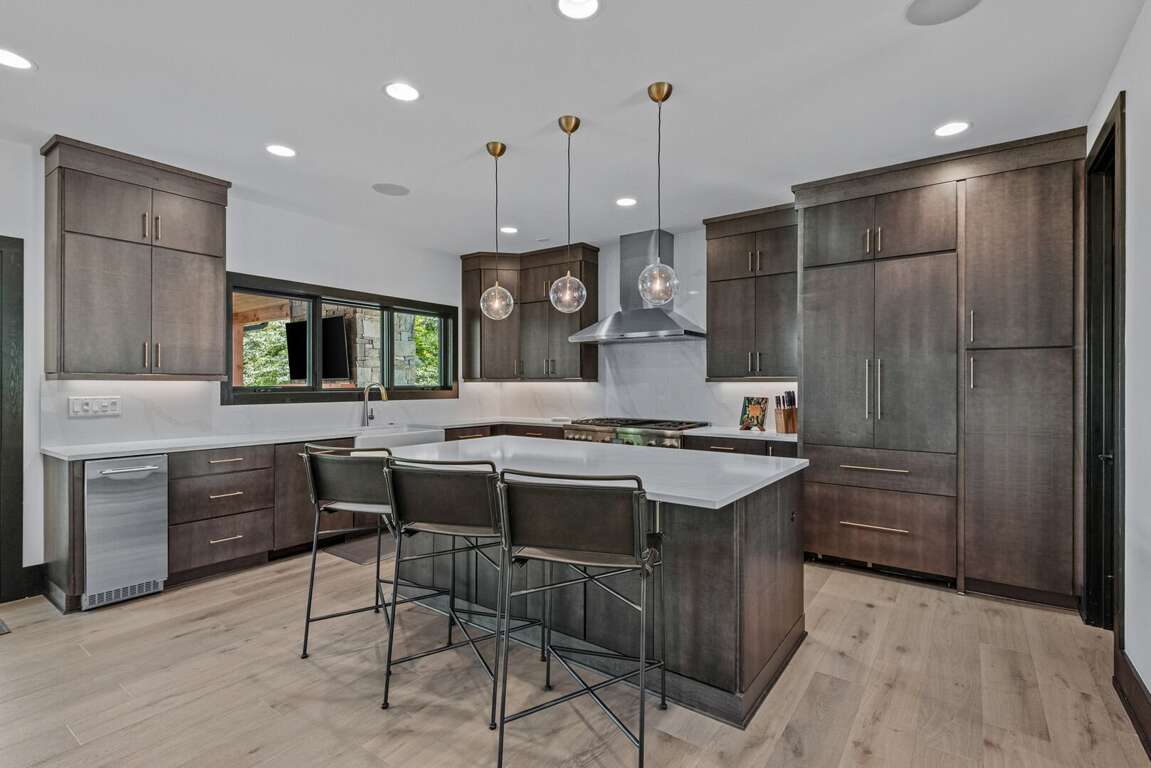 This spacious home offers five luxurious king ensuites, with one on the main level, two upstairs, and two on the lower level, each with its own private, spa-like bathroom. A bunk room off the second living space provides extra sleeping accommodations and is perfect for kids or teens. The lower-level den includes a massive sectional, large flat-screen TV, and direct access to the deck, offering a comfortable space for movie nights or game days.<br />