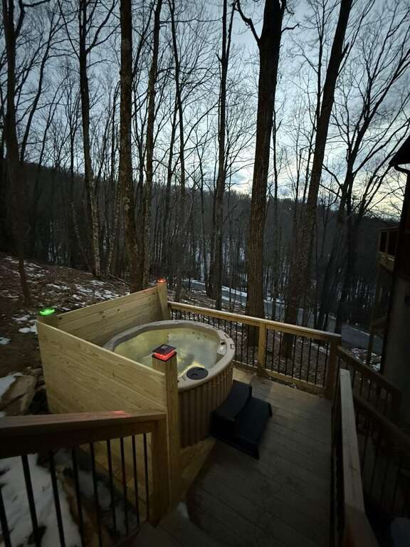 Step outside and let the magic of the mountains surround you. The deck is your front-row seat to nature—complete with an outdoor dining table, gas grill, and a cozy fire table for crisp mountain evenings. As you sip your morning coffee or share stories under the stars, the gentle sound of a nearby creek and its cascading waterfall on the neighboring property adds an enchanting soundtrack to your stay. Tucked away on the side deck, the private hot tub is the perfect place to relax and soak tired muscles after a day of skiing or hiking.<br />