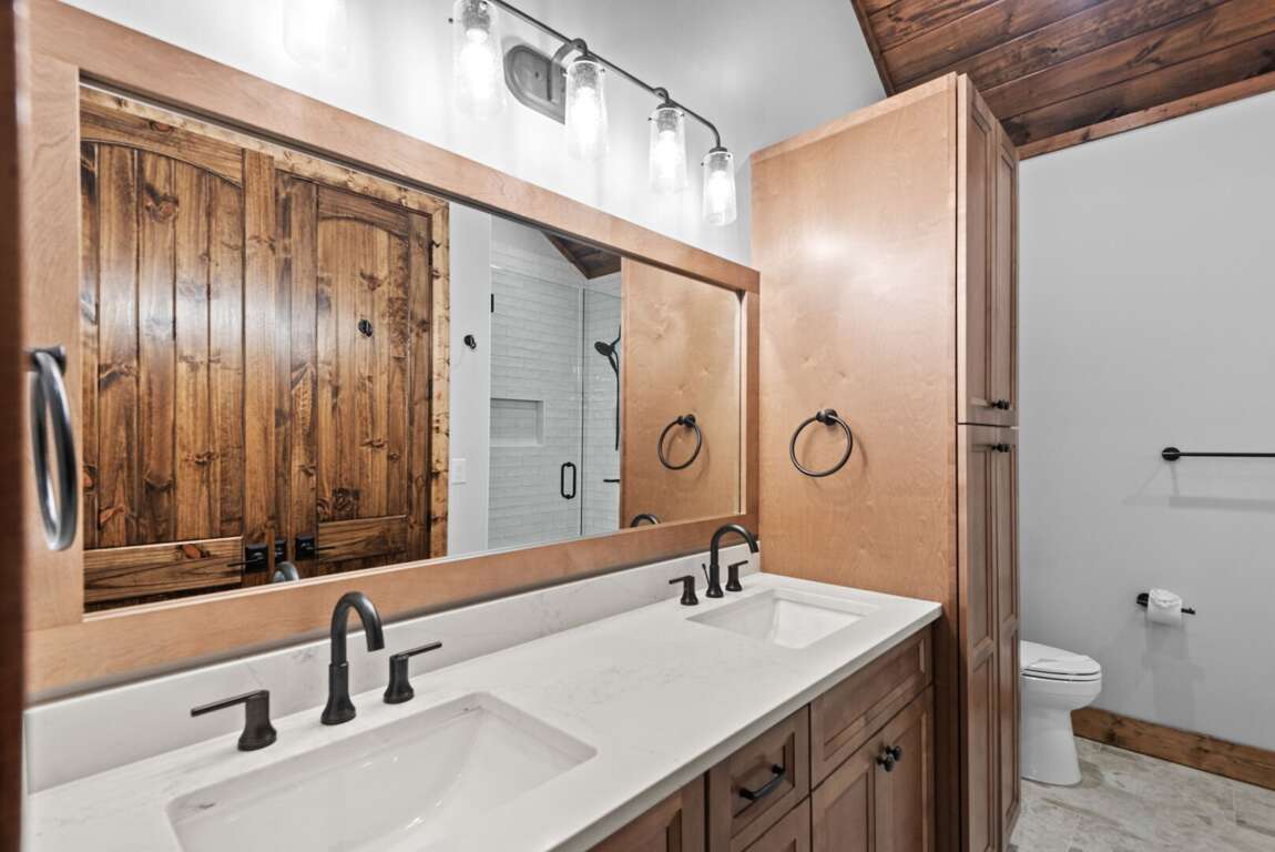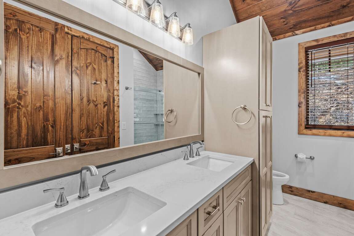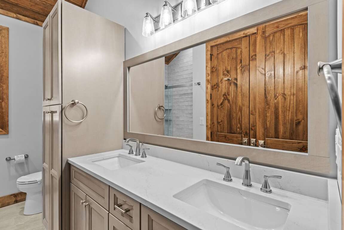 Welcome to The Cabins on Buckeye Creek at Eagles Nest, a rare and remarkable retreat designed for large groups seeking both connection and privacy. With eight ensuite bedrooms across four fully equipped cabins, this unique property sleeps up to 24 guests and blends the independence of individual homes with the convenience of a shared mountain compound. Arranged as two townhome-style buildings, each cabin offers a complete home of its own—yet the layout naturally brings guests together when they want to gather.<br />