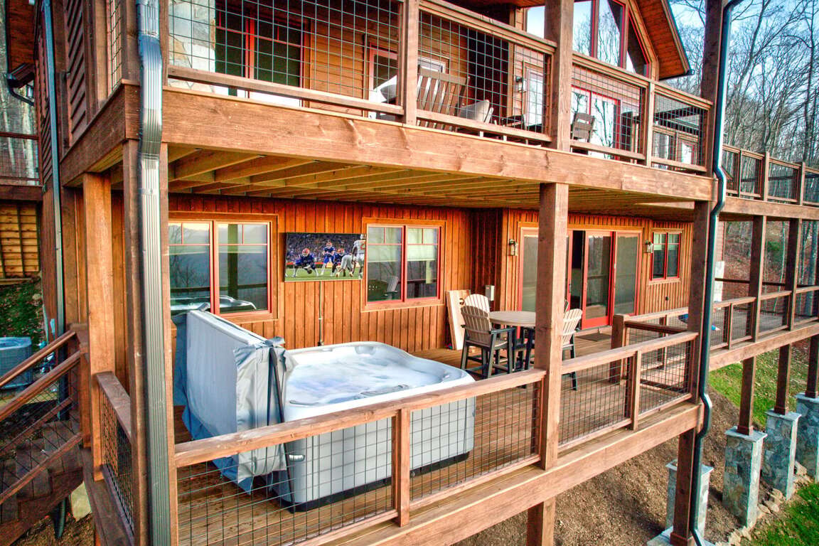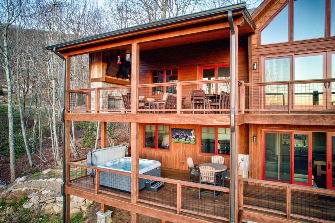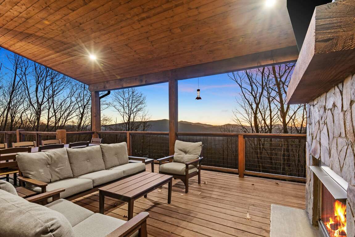 Step onto the upper deck and unwind in pure mountain luxury—curl up by the outdoor fireplace, indulge in a barbecue beneath a blanket of stars, escape into a good book, or enjoy a movie surrounded by the quiet of the Blue Ridge air.<br />