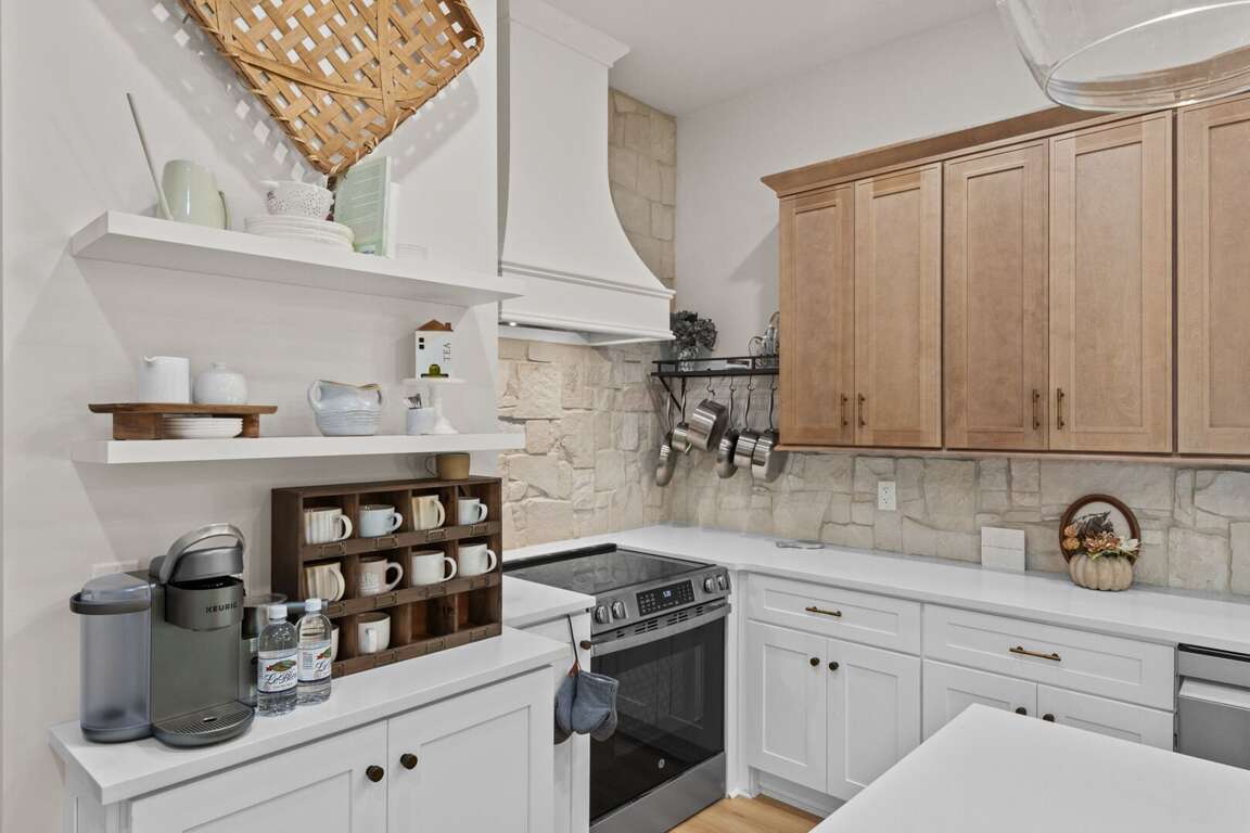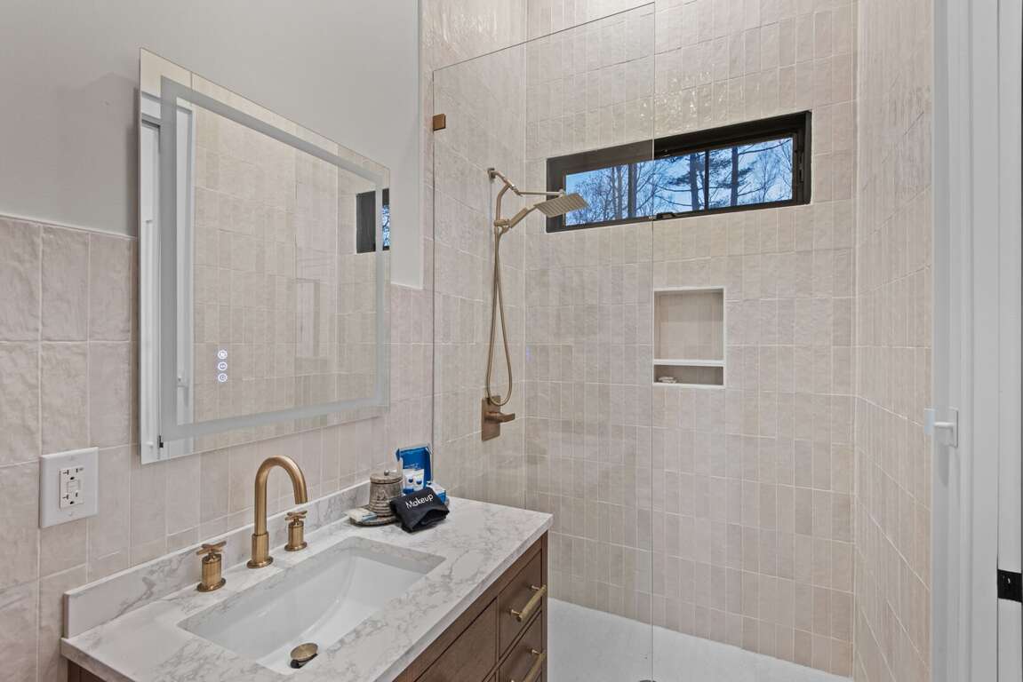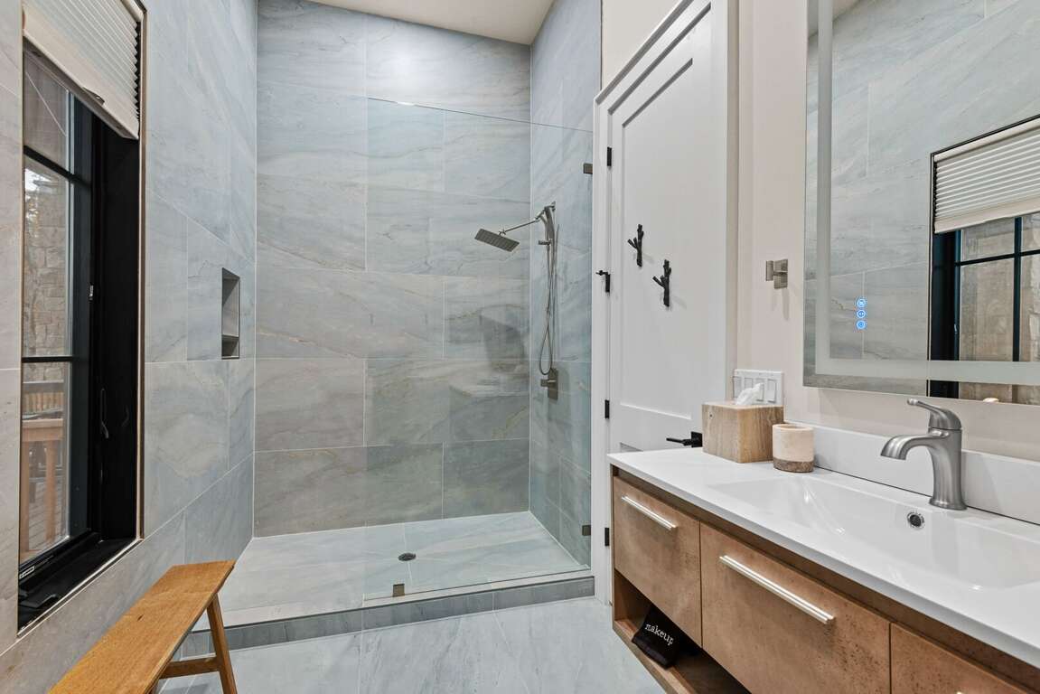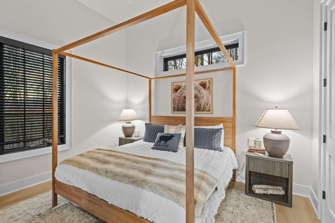 The heart of the home is the bright, open-concept living area with a cozy fireplace and ample seating for the whole group. The adjoining chef’s kitchen is fully stocked with everything you need—high-end appliances, a large island for gathering, and all the cookware and essentials for home-cooked meals.<br />