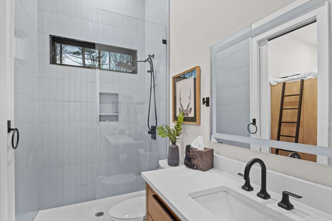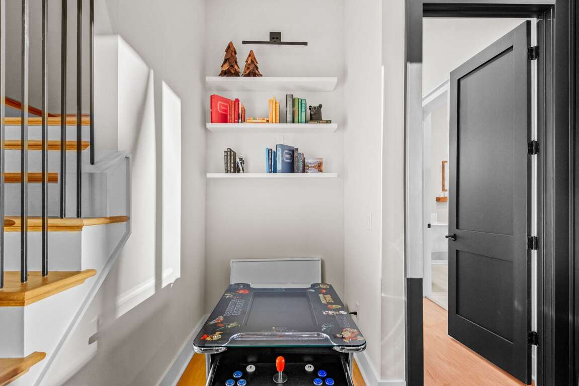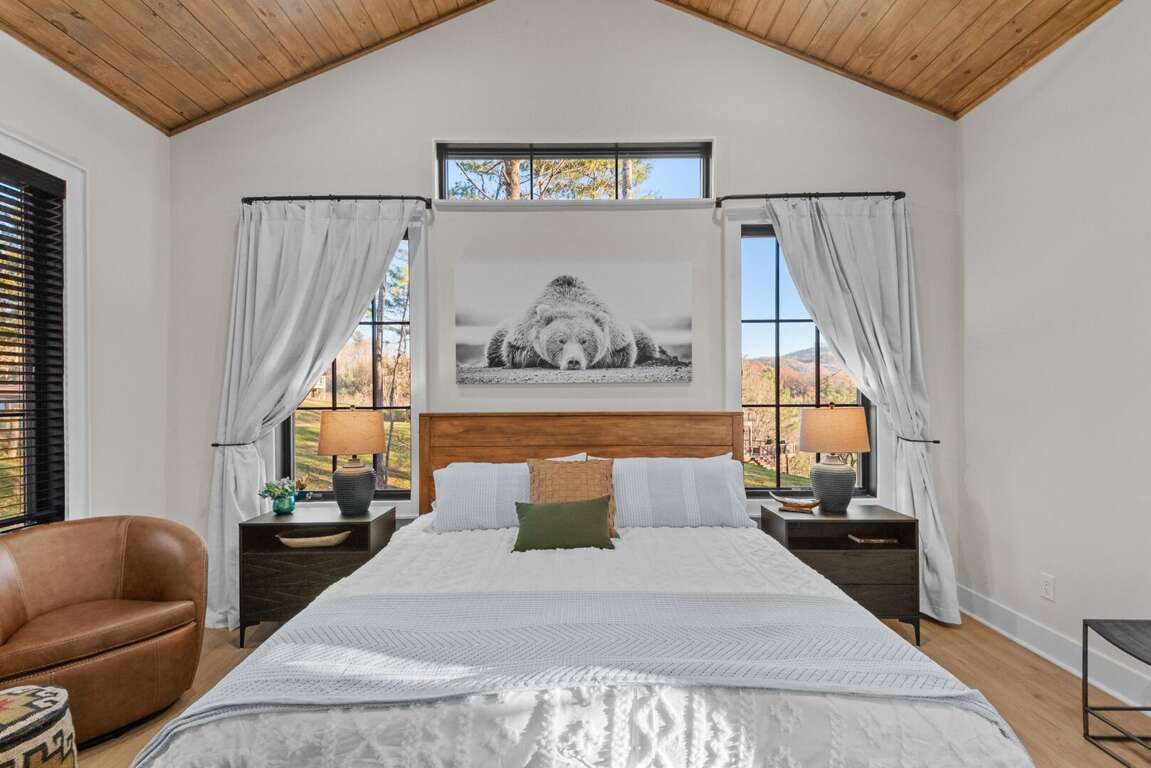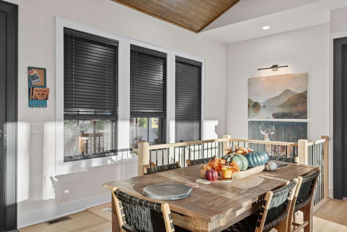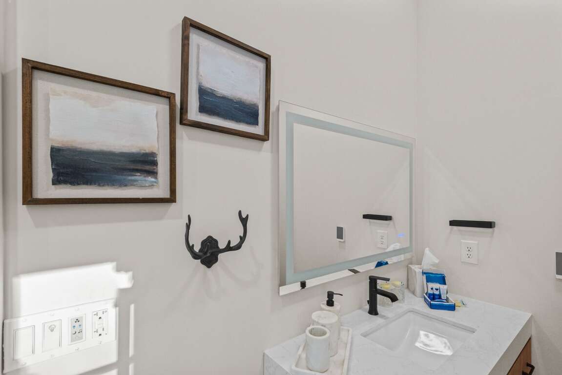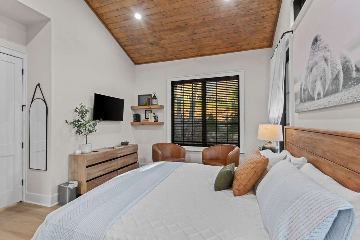 Inside, you’ll find two spacious king suites on the main level (located on the opposite ends of the house for total privacy), each with its own private ensuite bathroom. Also on the main level, guests can work remote in the office which doubles as an additional sleeping space with a pull out queen bed. Downstairs are two additional king suites with ensuite baths, plus a fun bunk room featuring two sets of XL twin bunks and a full bathroom—perfect for kids or extra guests. Each king bedroom is furnished with a flat screen TV. Also downstairs is an additional living area complete with a beautiful wet bar and video game console for kids! Perfect place to cheer on your favorite team or enjoy a family game night. <br />