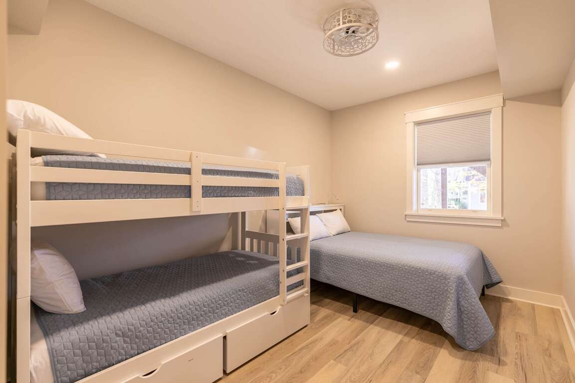 The master bedroom is located on the main level and offers a king size bed, TV, and ensuite bathroom with a beautiful tiled shower. Upstairs find two queen bedrooms on each end of the hall, along with a full bathroom to share. On the lower level of the home are two more bedrooms. One king bedroom with an ensuite bathroom, and a bunk room with a full bathroom in the hall. <br />