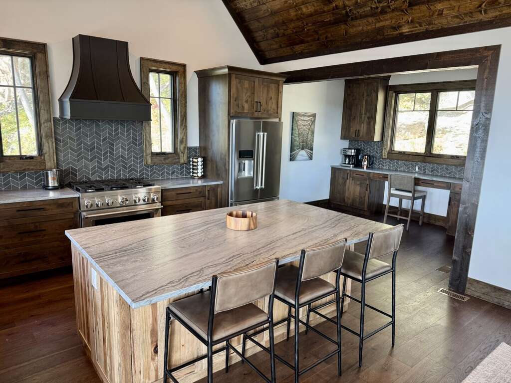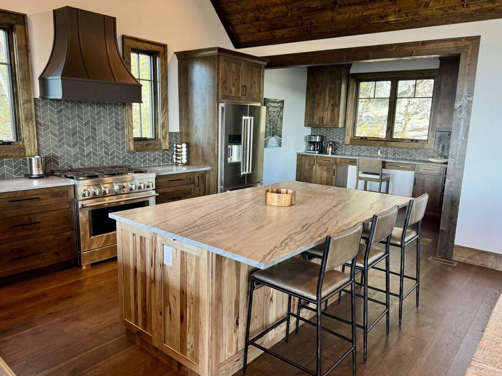 Seamlessly flowing from the living area is the spacious chef’s kitchen that features stunning platinum quartzite countertops, an oversized island perfect for hosting, a breakfast and coffee bar, and premium appliances including a 36” professional range and dual dishwashers so dishes never need to wait on the counter for space. Indoor/outdoor living is natural at Skyrise, with direct access from the kitchen to the expansive deck's covered living area, alongside a full-sized outdoor dining table and a Weber Genesis gas grill. <br />