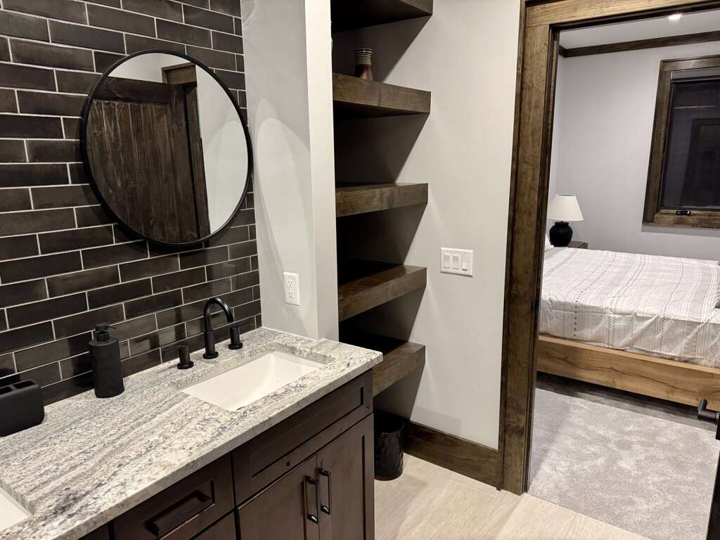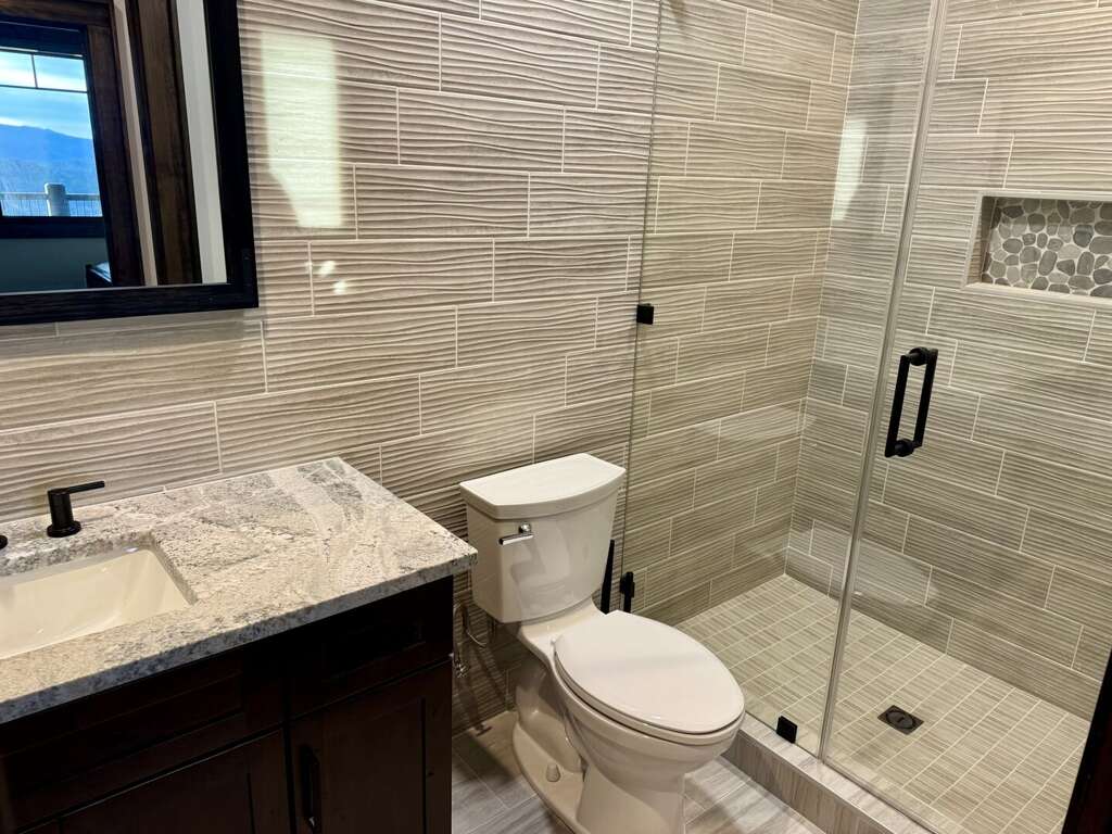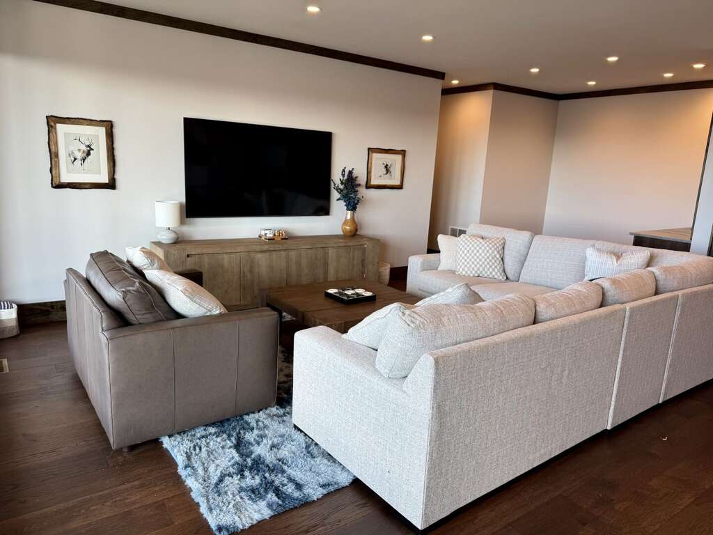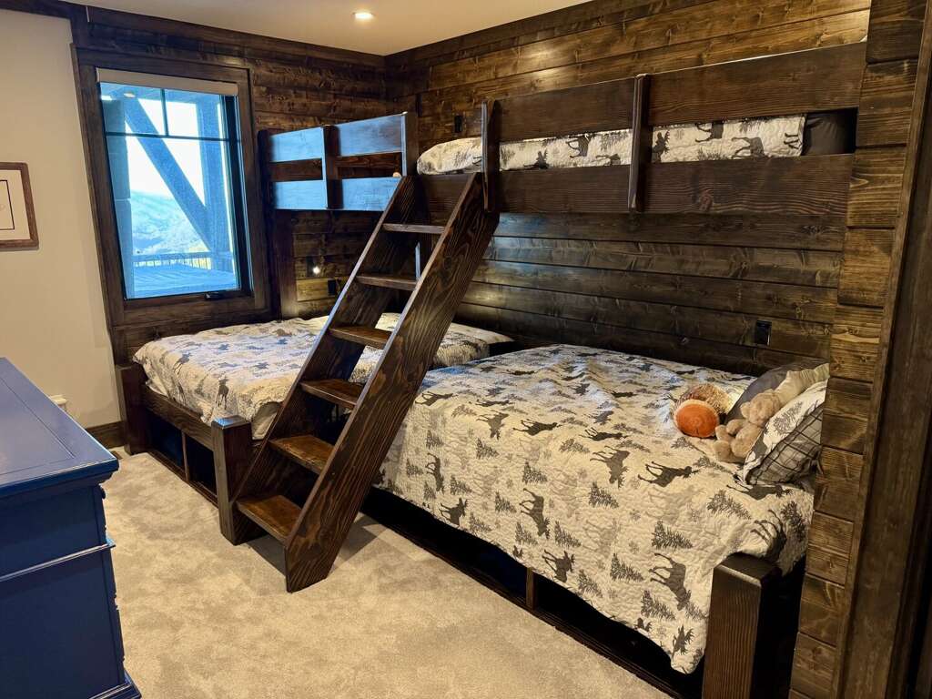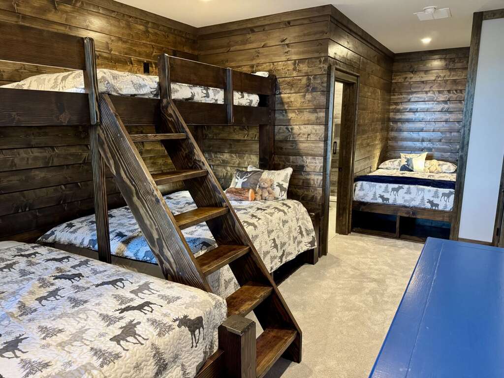 On the lower level, enjoy the sophisticated den with a bar area, a deep-seating sectional, and a sleeper loveseat for relaxing lounging in front of the well-stocked games cabinet and a 75” TV perfect for movie night. Downstairs also has a second primary suite with an en-suite defined by its bold design and oversized tile shower. The third king bedroom has full bath access right across the hallway. Finally, the custom bunk room, perfect for the younger (and younger at heart) guests, features five total beds: two sturdy and stylish twin-over-queen built-in bunk sets as well as a separate full bed in a niche, with each bed having its own power outlet, reading light, and storage cubby. All bedrooms have their own smart TVs.<br />