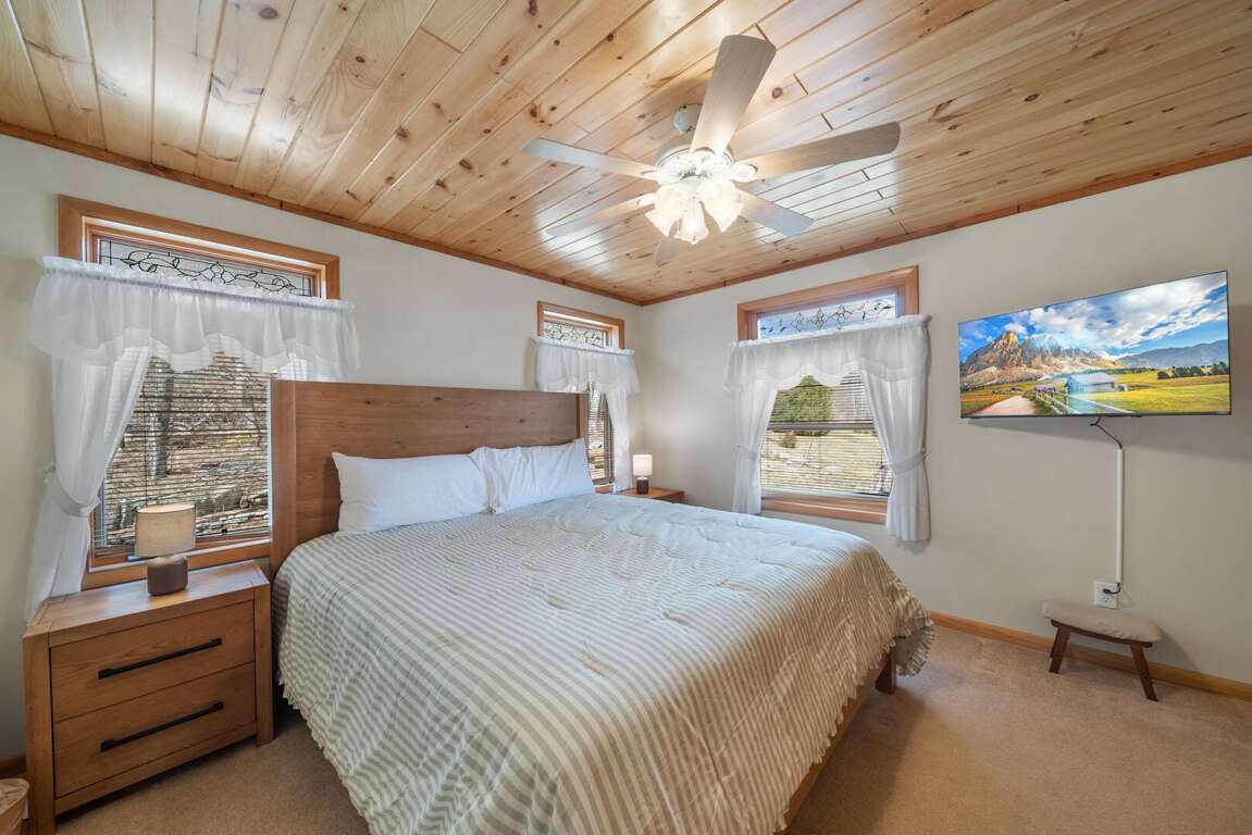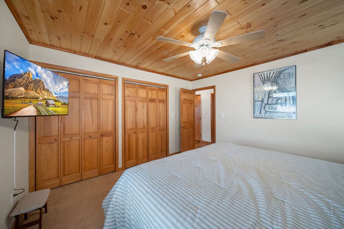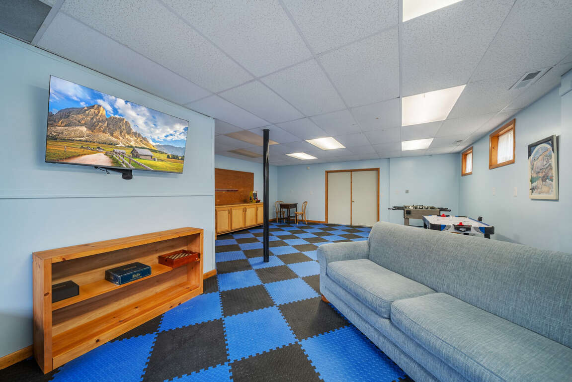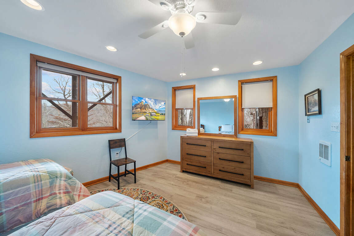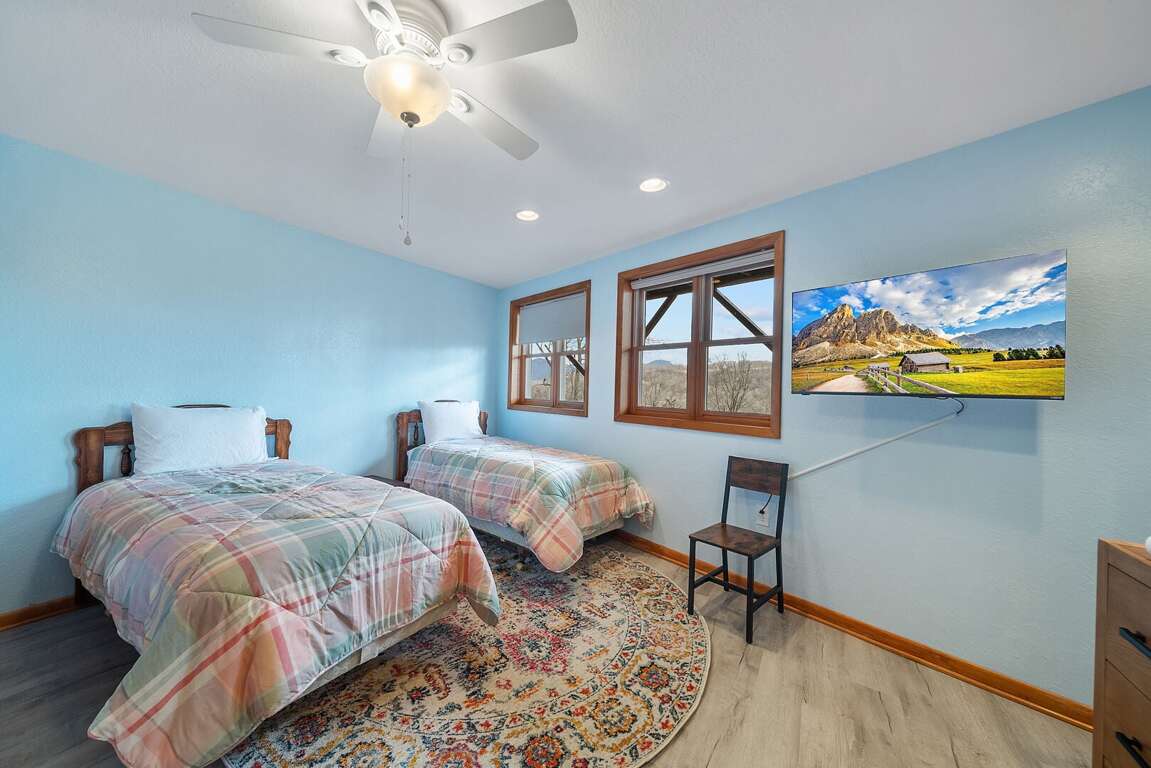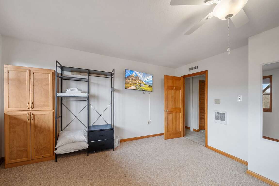 The lower level also offers two additional bedrooms that are ideal for younger guests. One room features two twin beds, while the other includes a twin-over-full bunk bed—perfect family, friends, and late-night storytelling sessions. Each bedroom has a private TV, and a shared bathroom is conveniently located between them.<br />