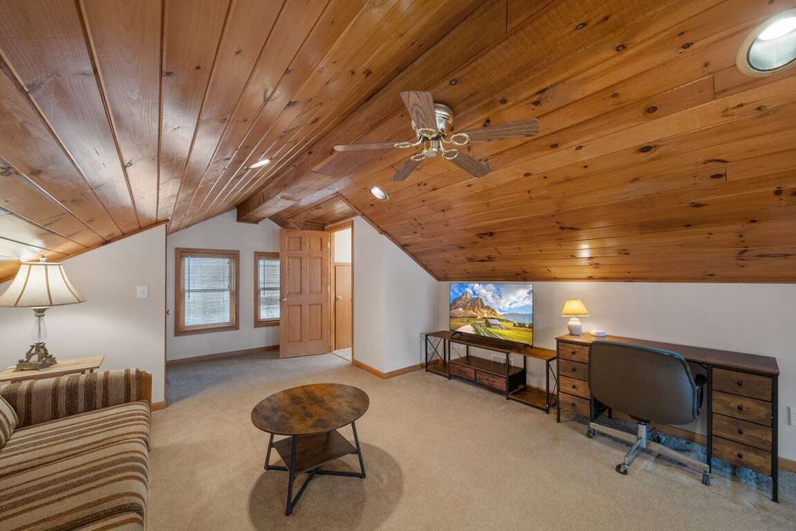 Need even more room to spread out? The upper-level loft provides a seperated multi-use space with yet another TV. Whether you’re catching up on work at the desk, curling up on the queen sleeper sofa with a good book, or simply enjoying a little downtime, this flexible area also includes a convenient half bath.<br />