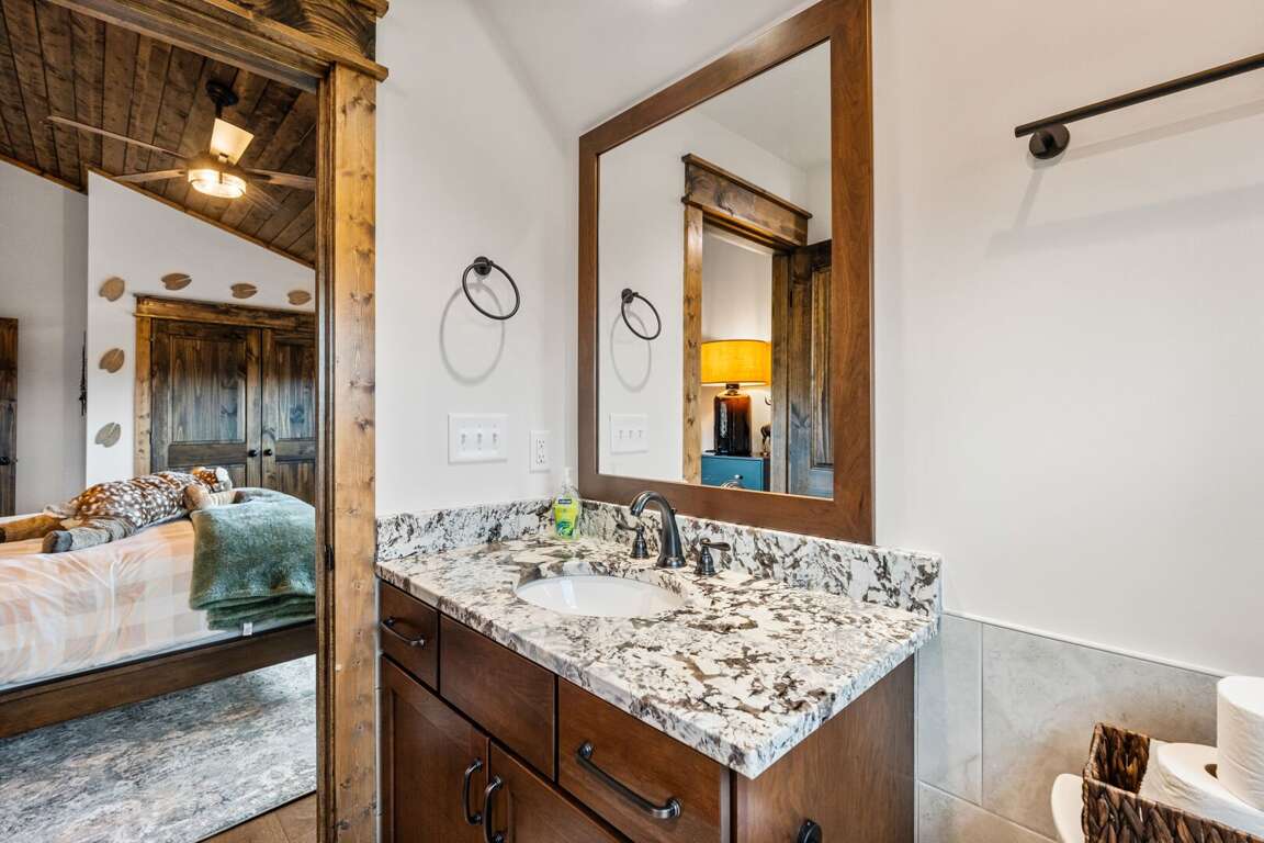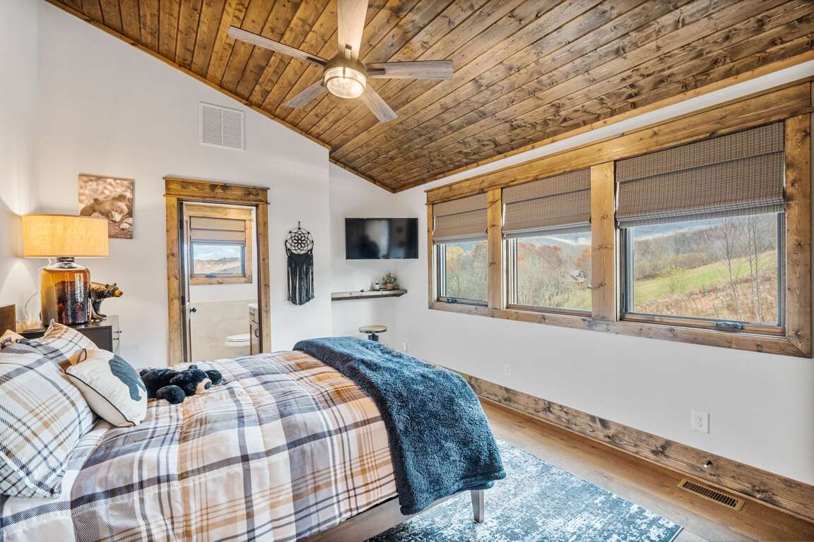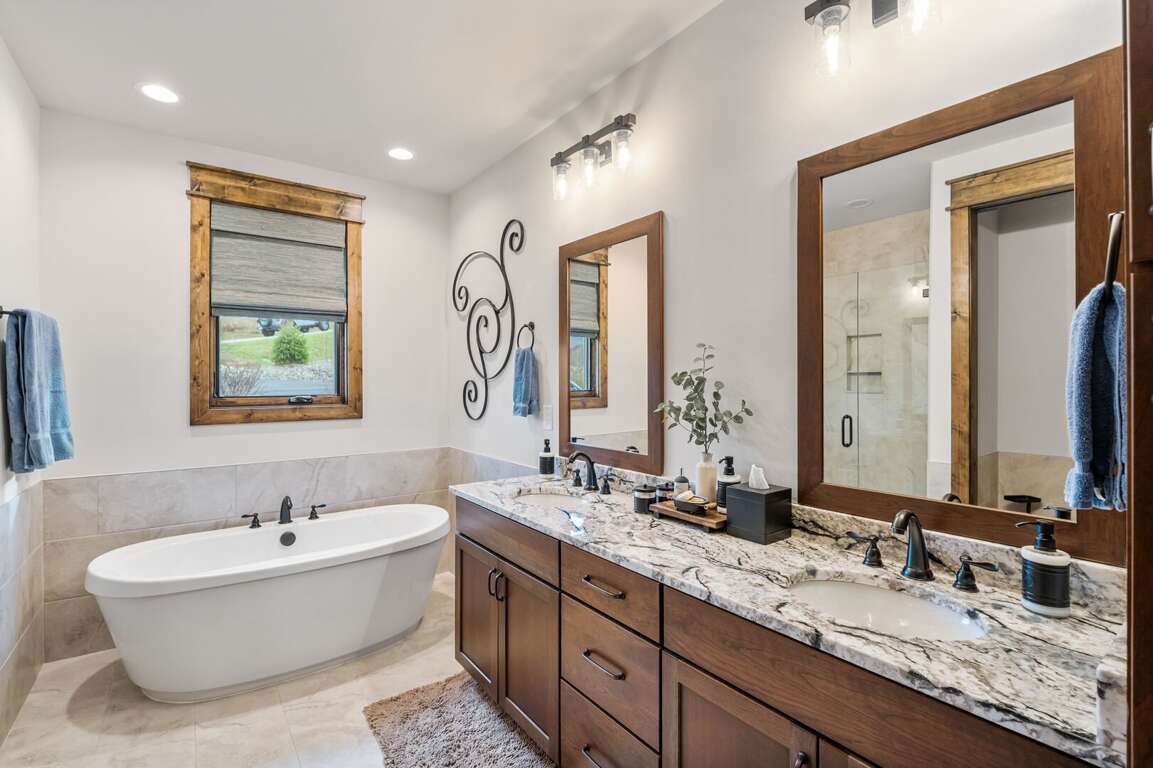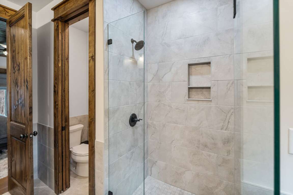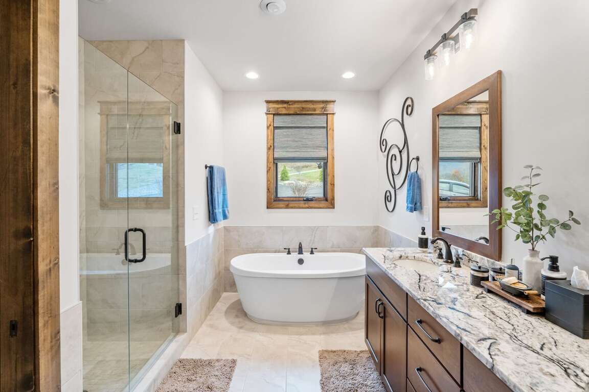 The main-level primary suite includes a king bed, TV, and a spacious bathroom with a soaking tub, double vanity, and a walk-in tiled shower. Upstairs, you’ll find two queen ensuite bedrooms, each with a TV and tiled walk-in showers.<br />
