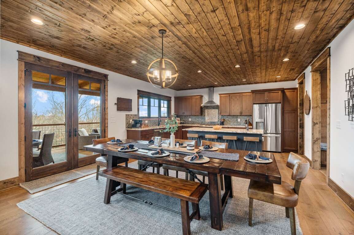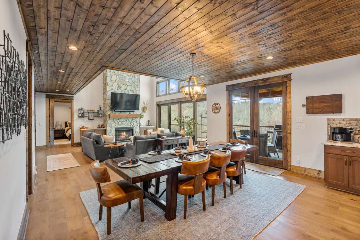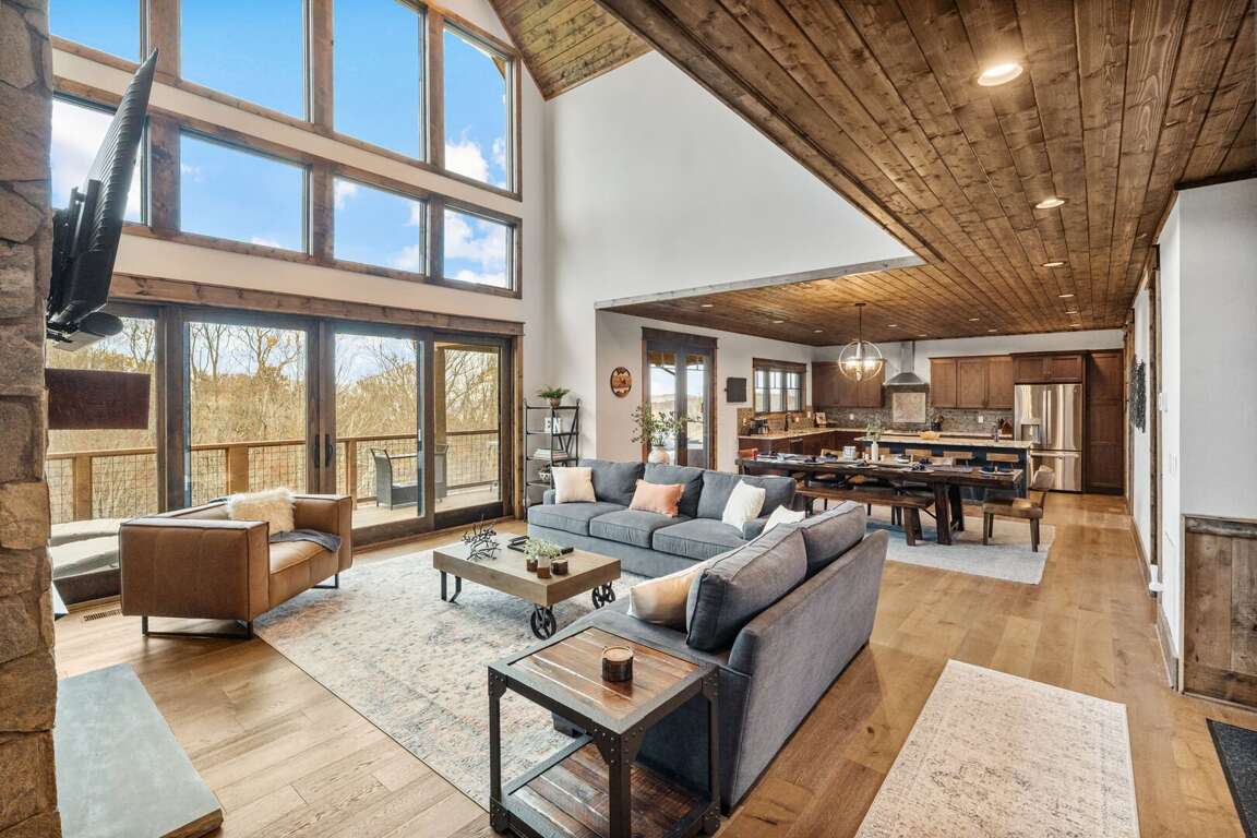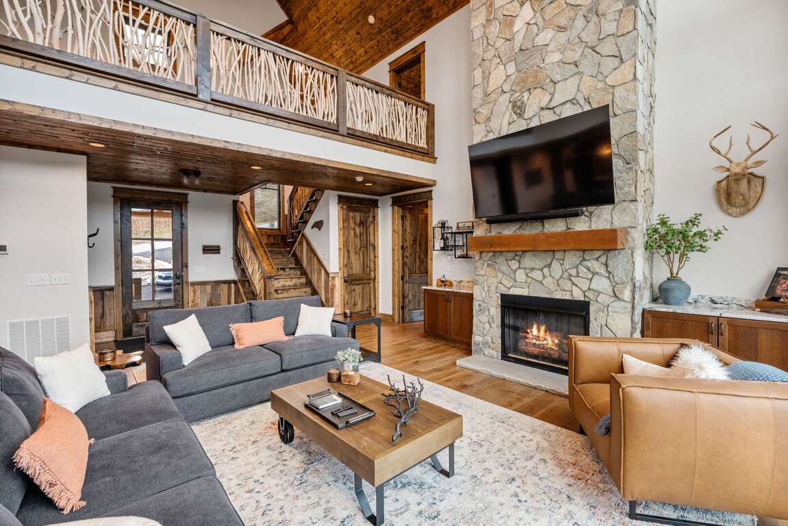 Step inside to a bright, open living area featuring vaulted ceilings and a beautiful floor-to-ceiling stone fireplace with cozy gas logs — the perfect spot to unwind after a day of exploring. The fully stocked kitchen offers everything you need to cook your favorite meals, complete with a large pantry, island seating for four, and a dining table for eight. There is also a gas grill for Barbequing. <br />