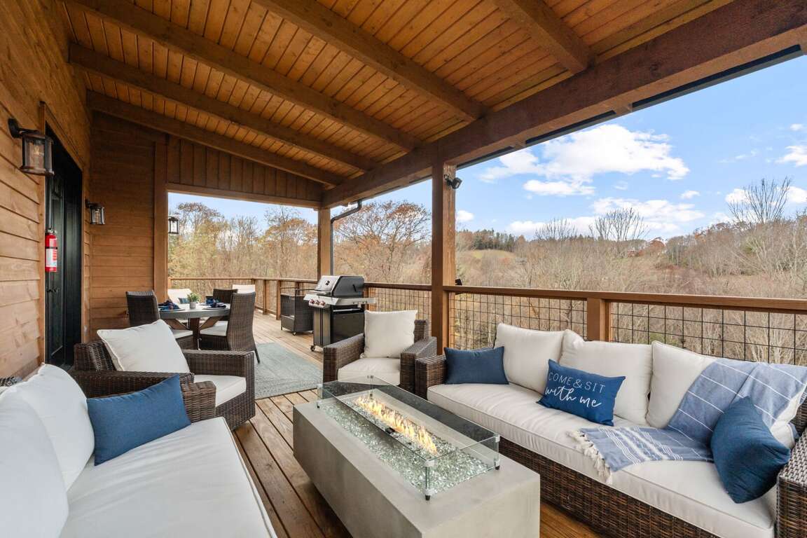 Take some time to unwind in the relaxing hot tub or roast some s'mores in the backyard fire pit! Enjoy the fresh mountain air on two covered porches. The back porch offers generous seating, a 4-person outdoor dining table, and a gas fire table — perfect for morning coffee. <br />