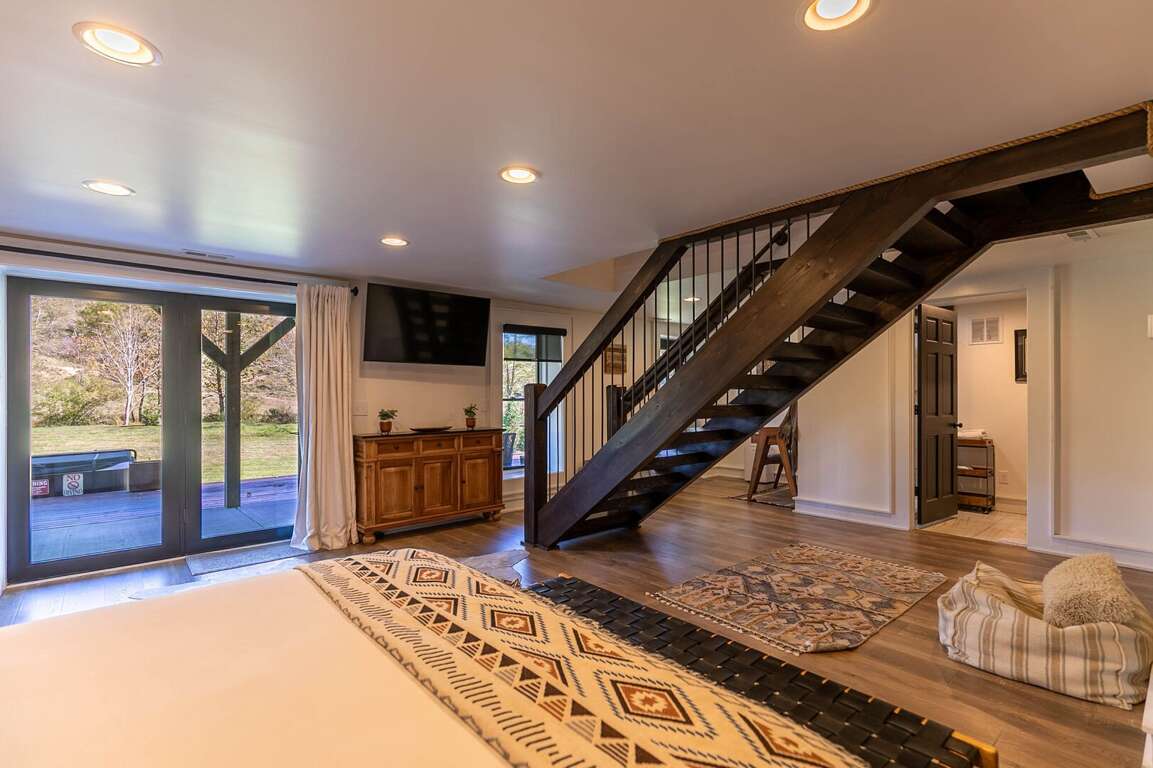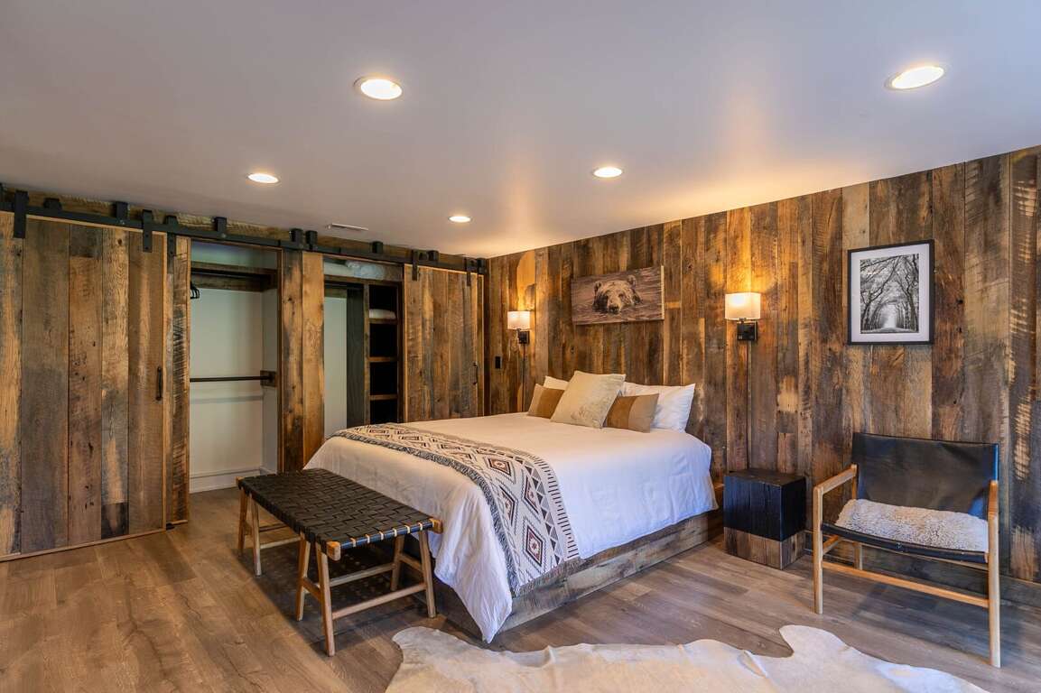 On the main level, the primary king suite offers direct deck access along with a private entrance to the spacious bathroom, complete with a tiled shower featuring a waterfall showerhead and handheld wand. Upstairs in the loft, you’ll find a second king bedroom tucked beneath soaring ceilings, a serene spot for rest after a day of mountain adventures. The lower-level king suite adds even more room to spread out, with a large TV, desk workstation for remote work, and a laundry center. This level also provides direct access to the hot tub and firepit—perfect for ending the day under the stars.<br />