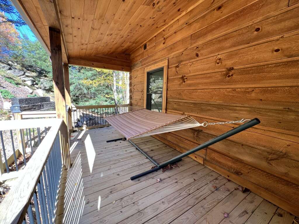 Arrive to flat parking level with the road, making access simple in any season. A short 11-step walk down leads to the entrance and a welcoming front porch hammock, ideal for relaxing among the mountain trees.<br />