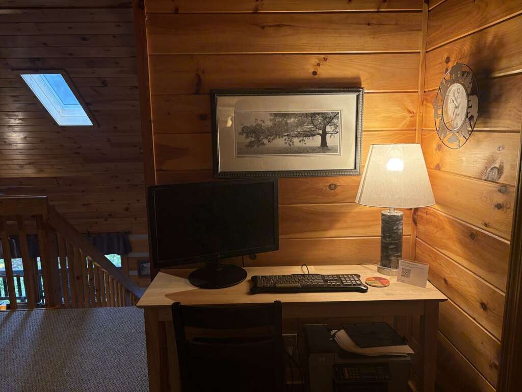 Classic mountain charm awaits you inside with wood floors, vaulted ceilings, and a cozy gas fireplace. The living room, kitchen, and dining area offer plenty of open space for the family to spread out comfortably. The master bedroom on the main level bedroom is complete with a king size bed, TV, deck access, and private bathroom with a shower and jetted tub. Two additional bedrooms are located upstairs, one with a queen bed and the other with two twins. These bedrooms will share a full bathroom in the hallway. Also upstairs is a central sitting area which includes a desk, printer, monitor, and keyboard. <br />