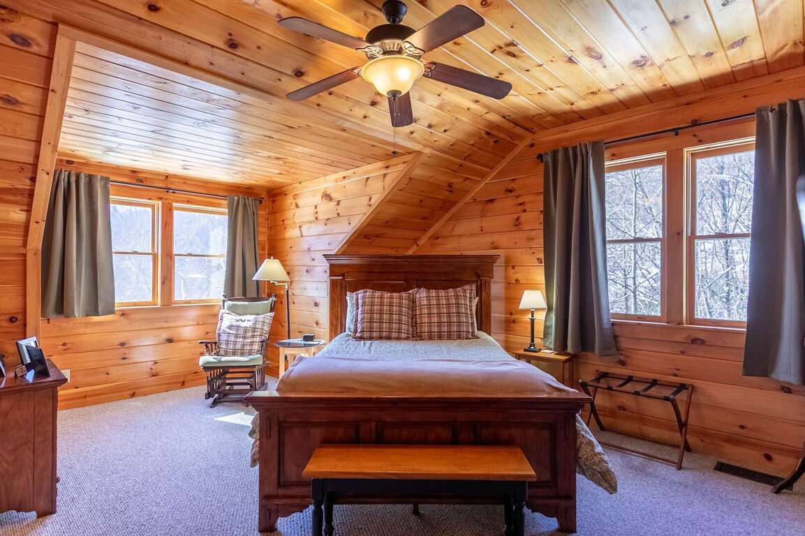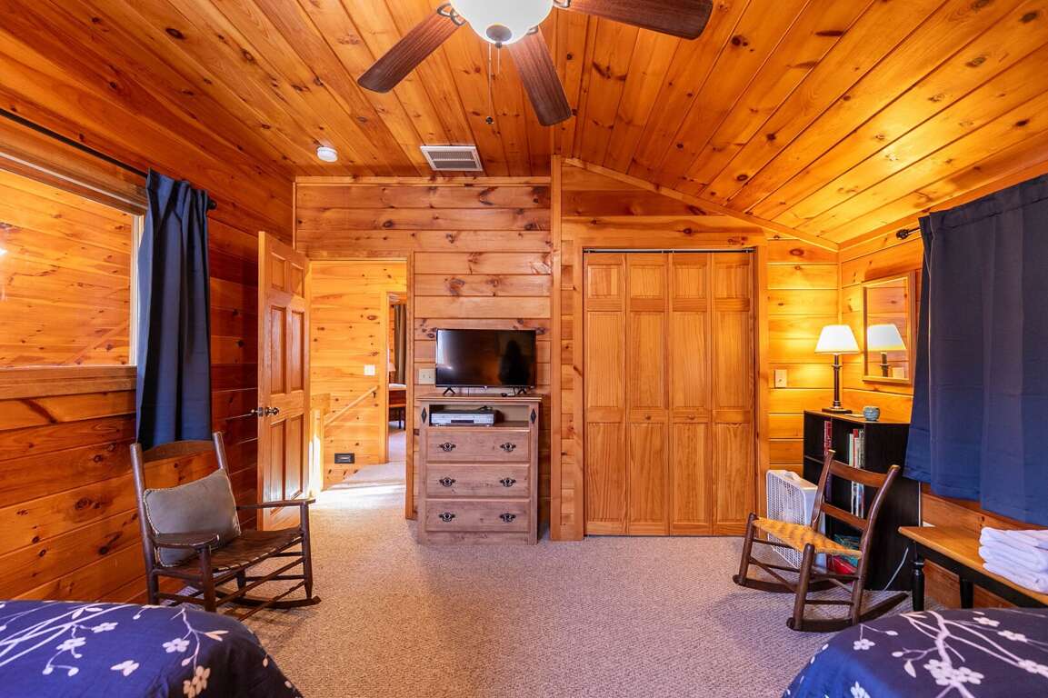 Classic mountain charm awaits you inside with wood floors, vaulted ceilings, and a cozy gas fireplace. The living room, kitchen, and dining area offer plenty of open space for the family to spread out comfortably. The master bedroom on the main level bedroom is complete with a king size bed, TV, deck access, and private bathroom with a shower and tub. Two additional bedrooms are located upstairs, one with a queen bed and the other with two twins. These bedrooms will share a full bathroom in the hallway. Also upstairs is a central sitting area which includes a desk, printer, monitor, and keyboard. <br />