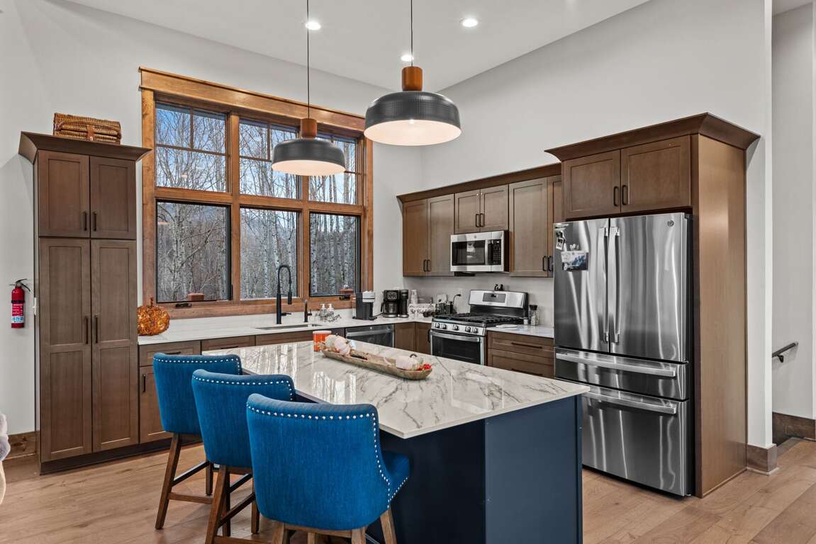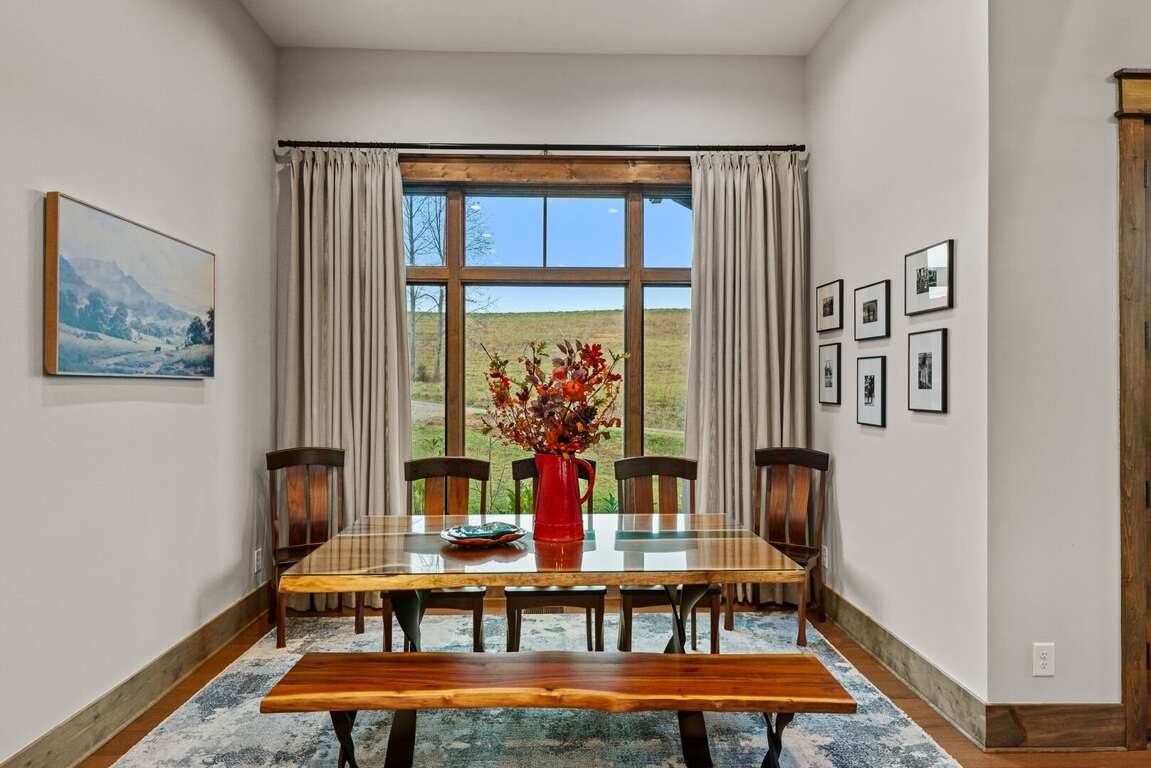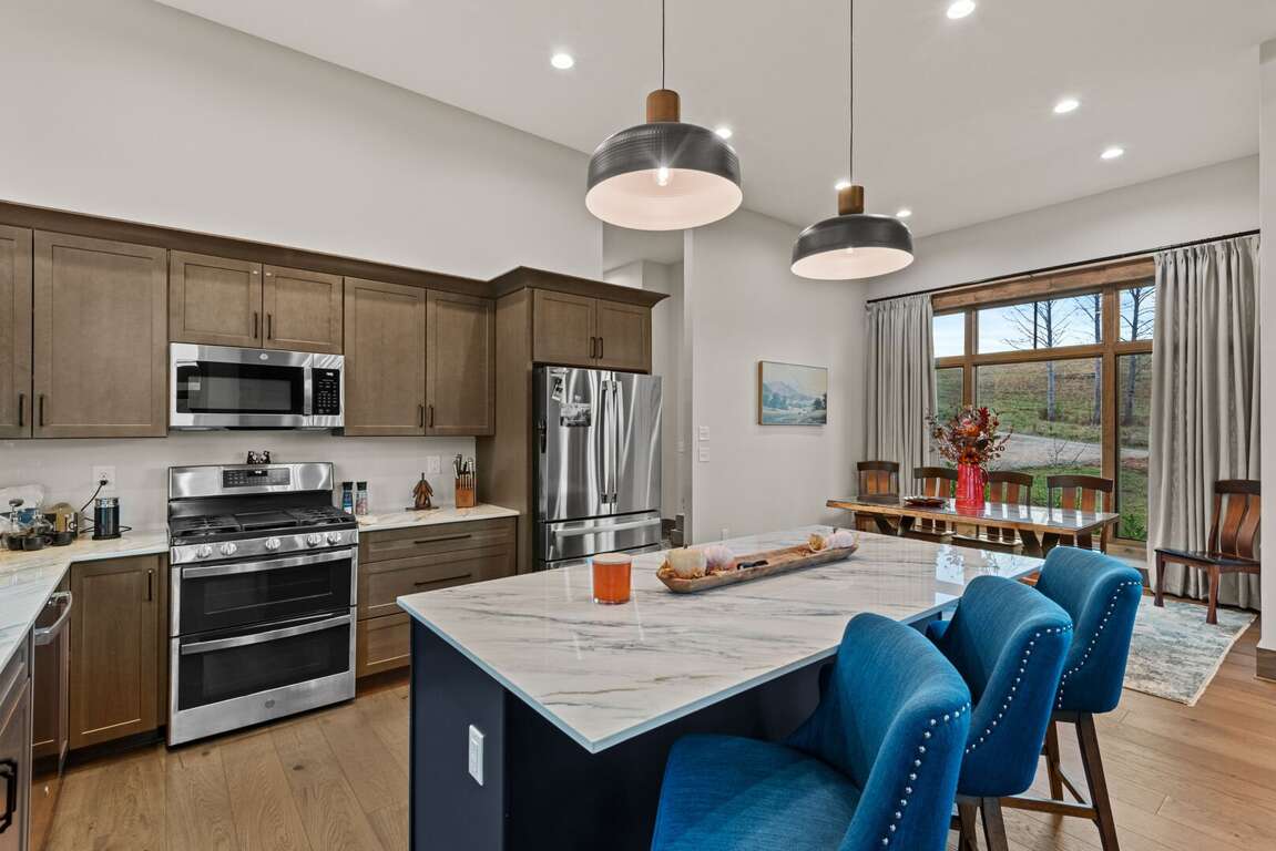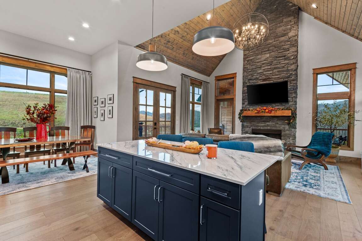 The main level opens to a bright, open-concept living space designed for both relaxation and entertaining. The kitchen is a culinary enthusiast’s dream, centered around a gorgeous granite island with seating for three and plenty of workspace for meal prep. Fully equipped with modern appliances, serving dishes, and small appliances, it has everything needed to host memorable meals. Just off the kitchen, the dining area features a table that seats eight, allowing everyone to gather and connect while enjoying the open flow of the home.<br />