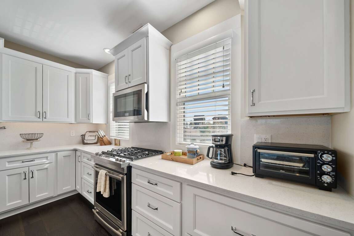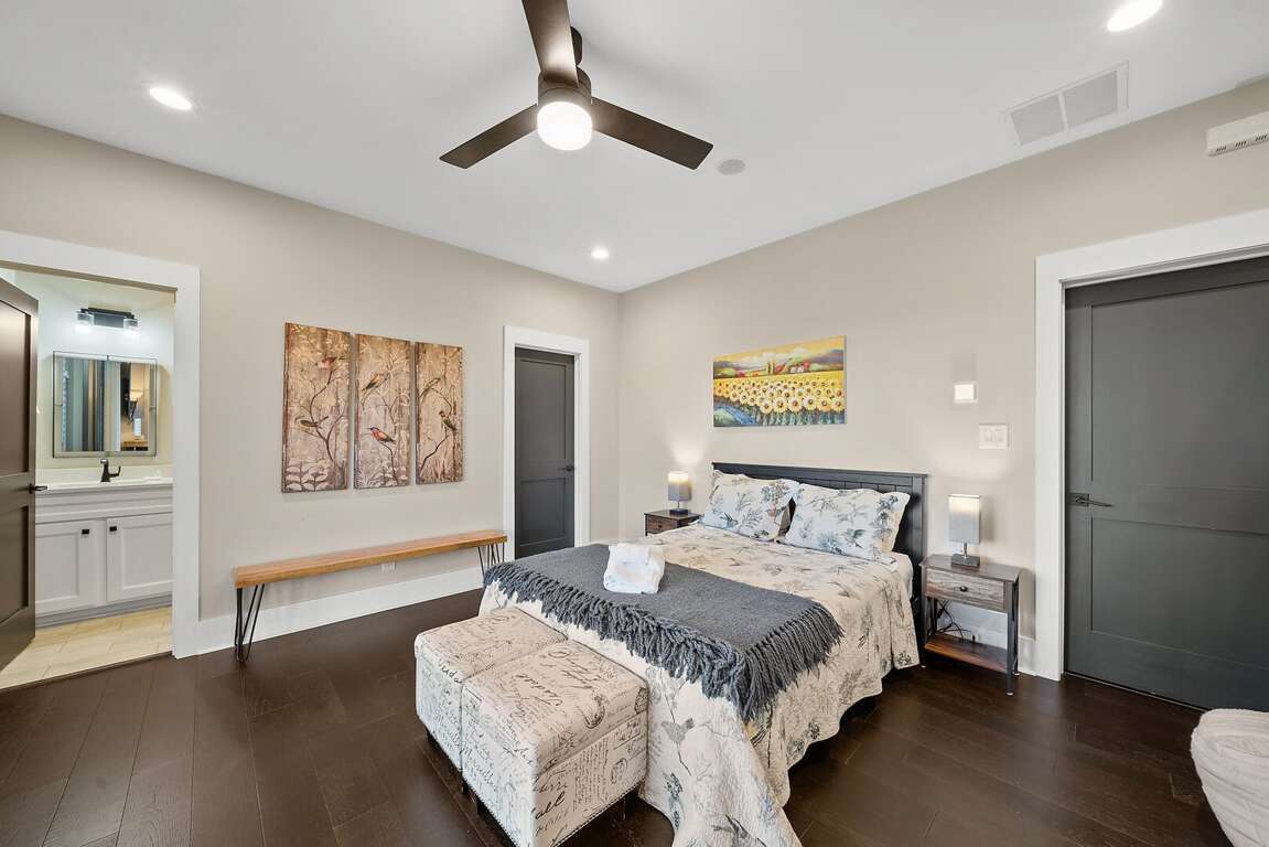 Entering into the main level of the property, you will find a queen bedroom and ensuite bathroom. This bedroom offers its own private deck access, which includes the 5 seater hot tub! The garage is also on the main level which has been converted to a game area with a ping-pong table. Head downstairs to find another queen bedroom, complete with its own bathroom, as well as access to the lower deck! Head upstairs to the "main level" where you'll find the kitchen, dining area, living room, and more great deck space. The kitchen is fully equipped, making preparing a meal for the family a breeze. The living room offers cozy furniture, a gas fireplace, and a large TV. Step outside onto the deck to enjoy an evening overlooking the stunning long-range views. A perfect place to watch the sunset! The main level also features a coffee bar and a half bathroom. Lastly, head upstairs to find two more bedrooms - one with a twin-over-full bunk bed and the luxurious master suite, each with their own private bathroom. <br />