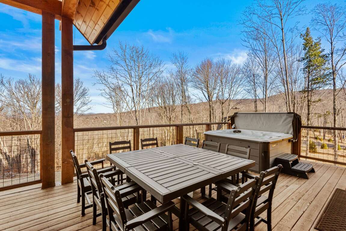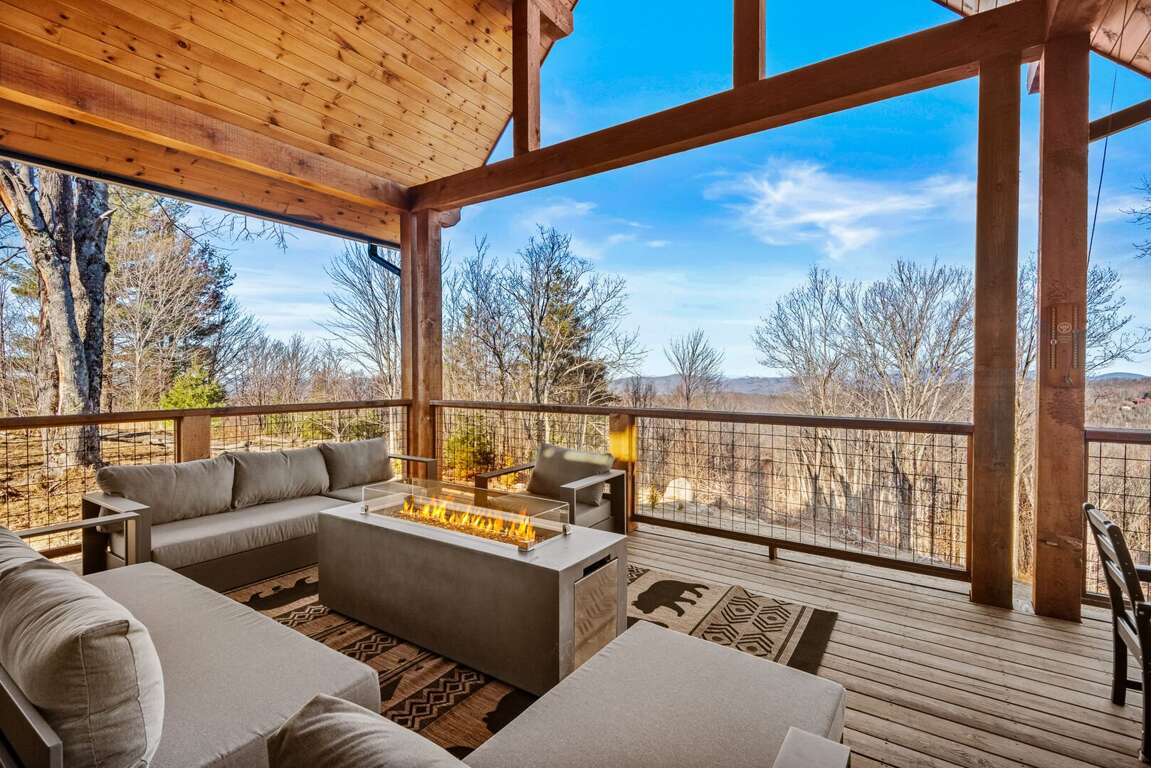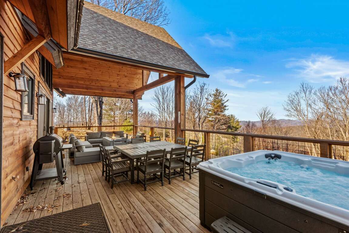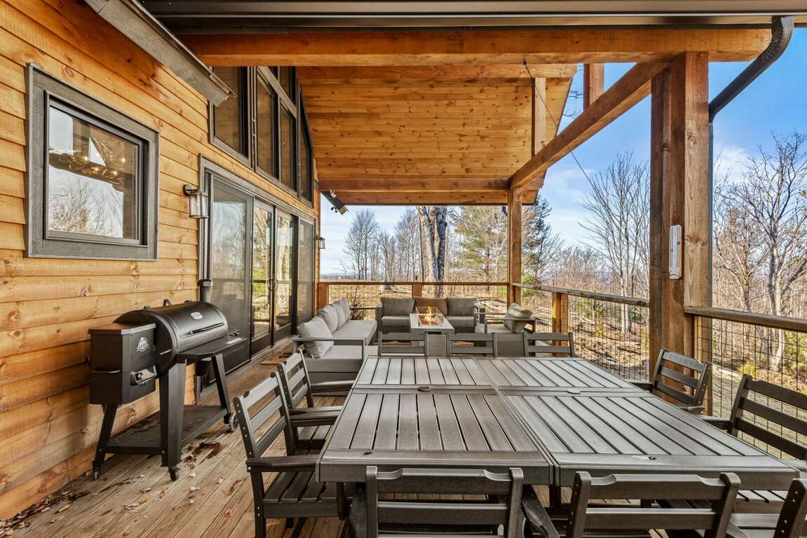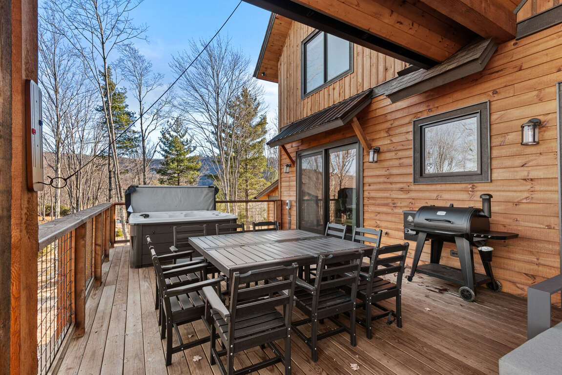 Outdoor living takes center stage on the main-level deck, where you’ll find a Viking hot tub, sofa and fire table, outdoor dining for ten, and a gas grill for cookouts under the stars. Wander down to the fire pit for s’mores and storytelling as the day winds down.<br />