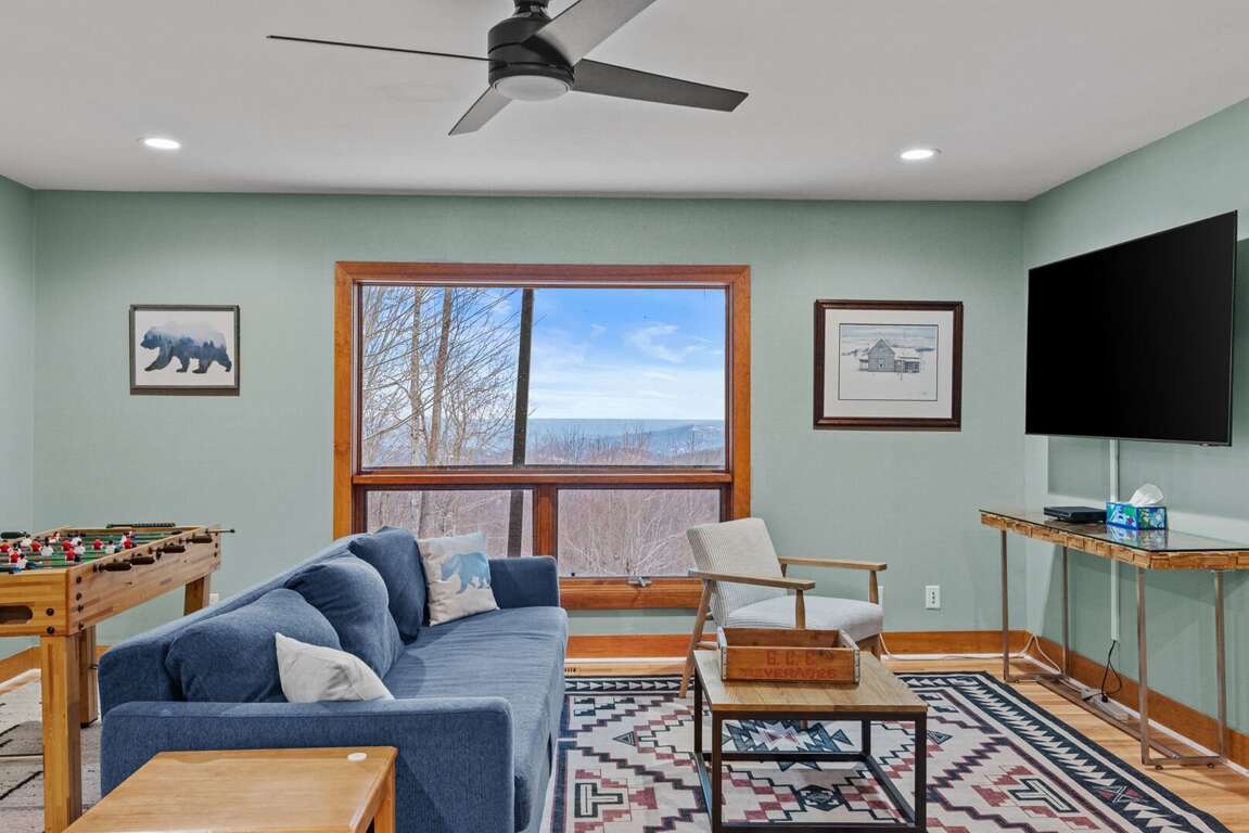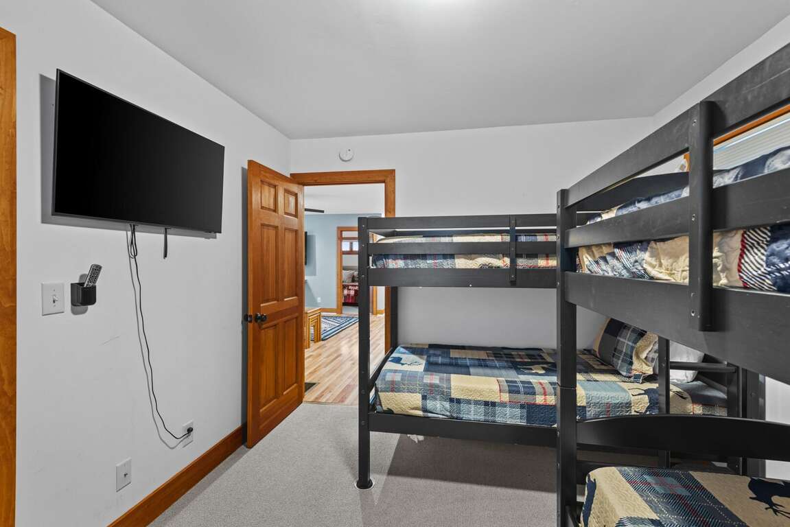 The fully finished lower level provides versatile space for entertaining and extended stays. It features a game room with arcade and foosball, cozy seating and TV, laundry area, and three additional bedrooms: a king ensuite, a queen bedroom, and a bunk room, along with an additional full bath, all updated with new tile, bathtubs, and fixtures.<br />