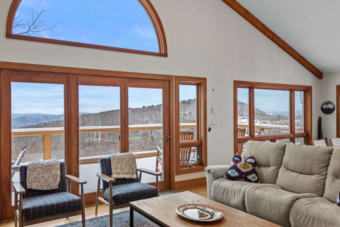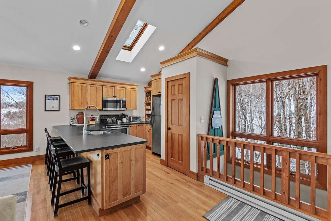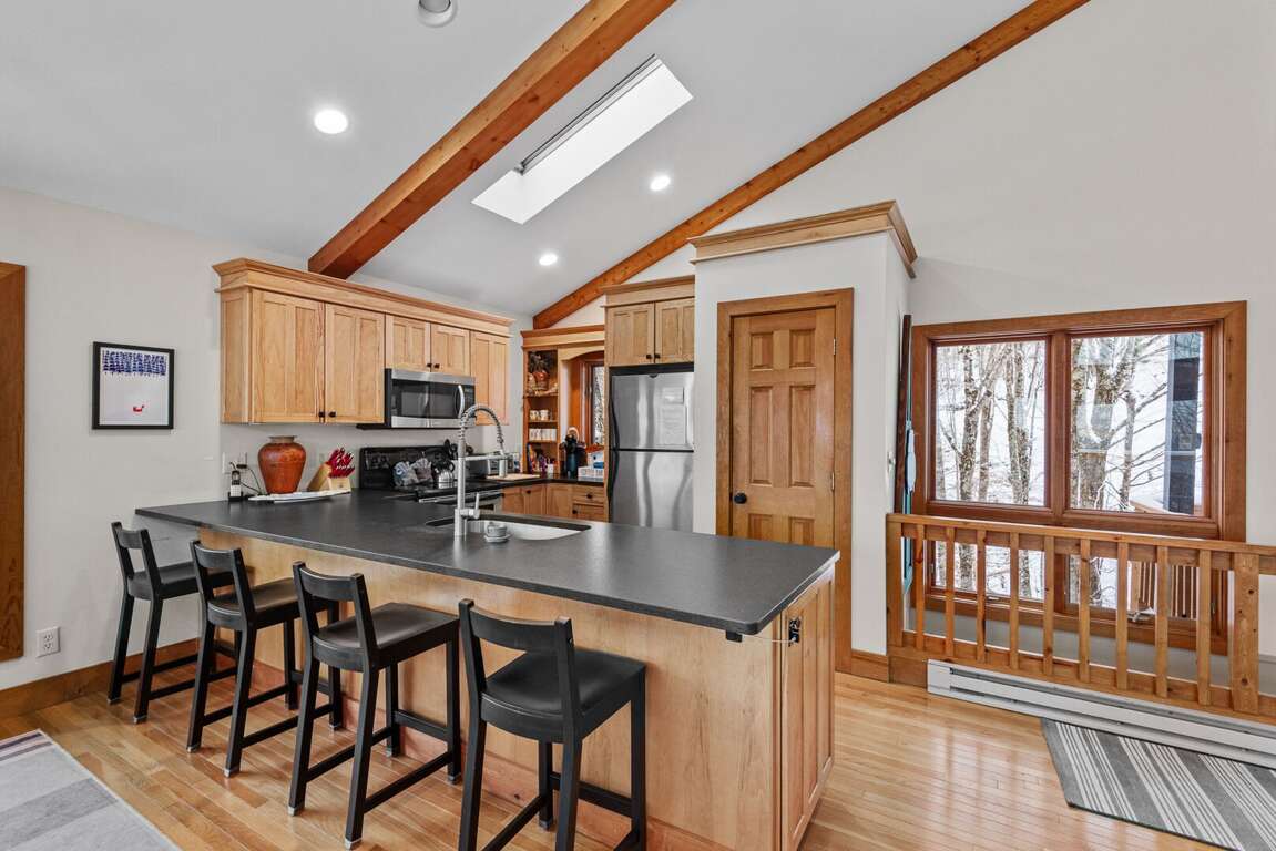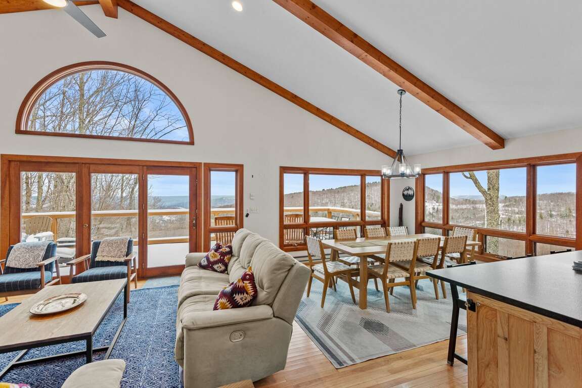 The recently renovated kitchen combines style and functionality with stainless steel appliances, leathered granite countertops, ample cabinetry, a pantry, and a dining area designed for large gatherings. Sliding doors open to an oversized rear deck, offering an ideal space for outdoor dining, morning coffee, or quiet reflection while soaking in the mountain panorama.<br />