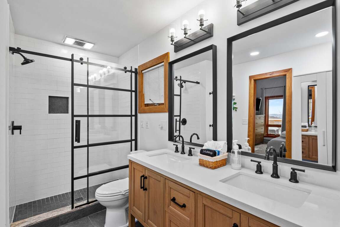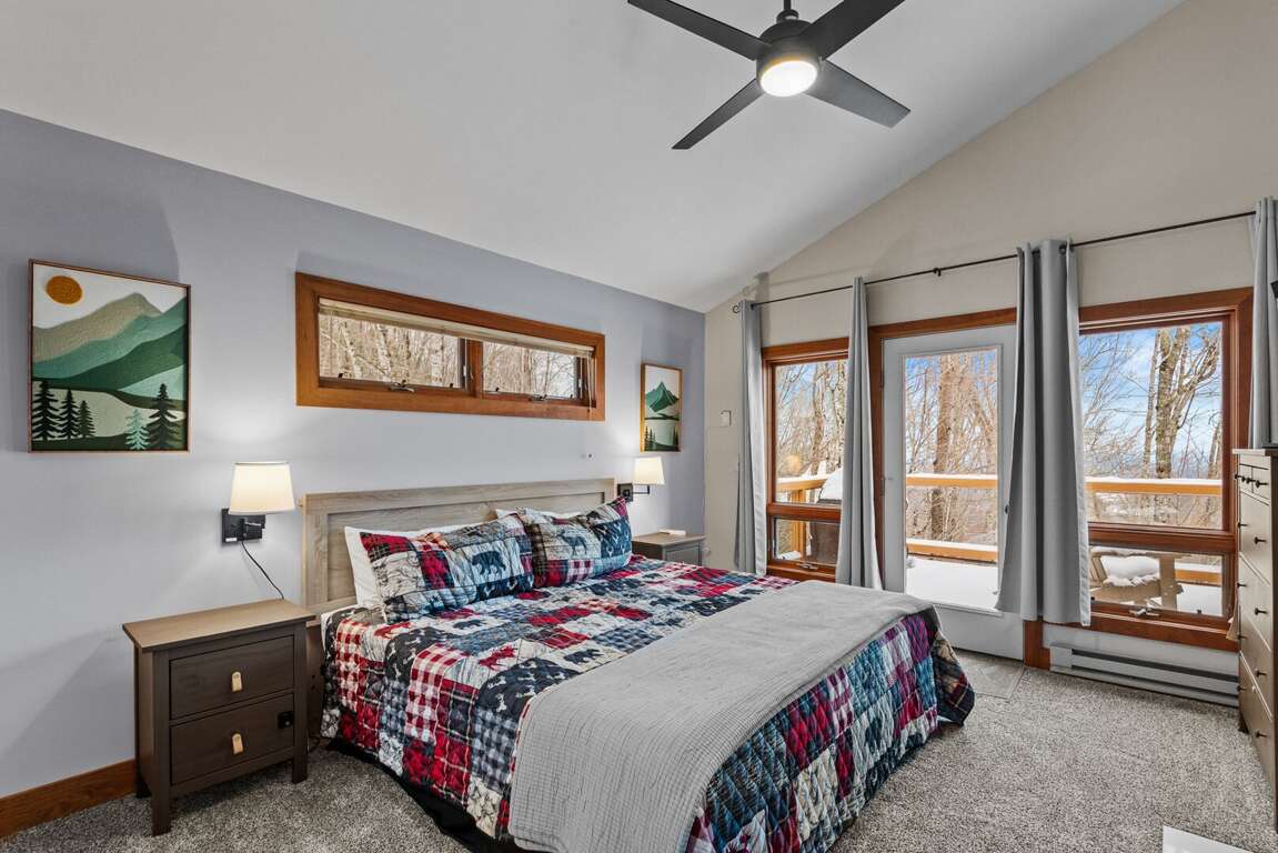 The main-level king ensuite boasts vaulted ceilings, direct access to the back deck, the double-sided fireplace (with a screen for privacy) and a spa-style ensuite bath with modern finishes. A convenient half bath off the great room ensures comfort for all guests.<br />