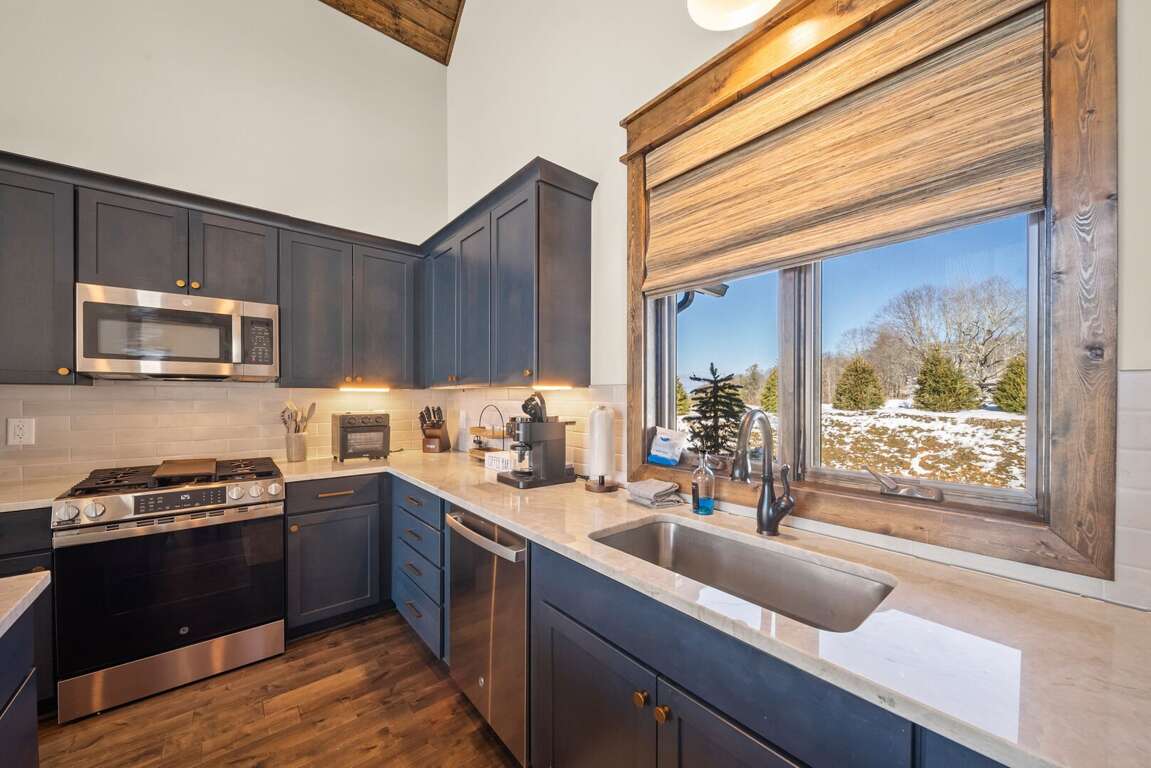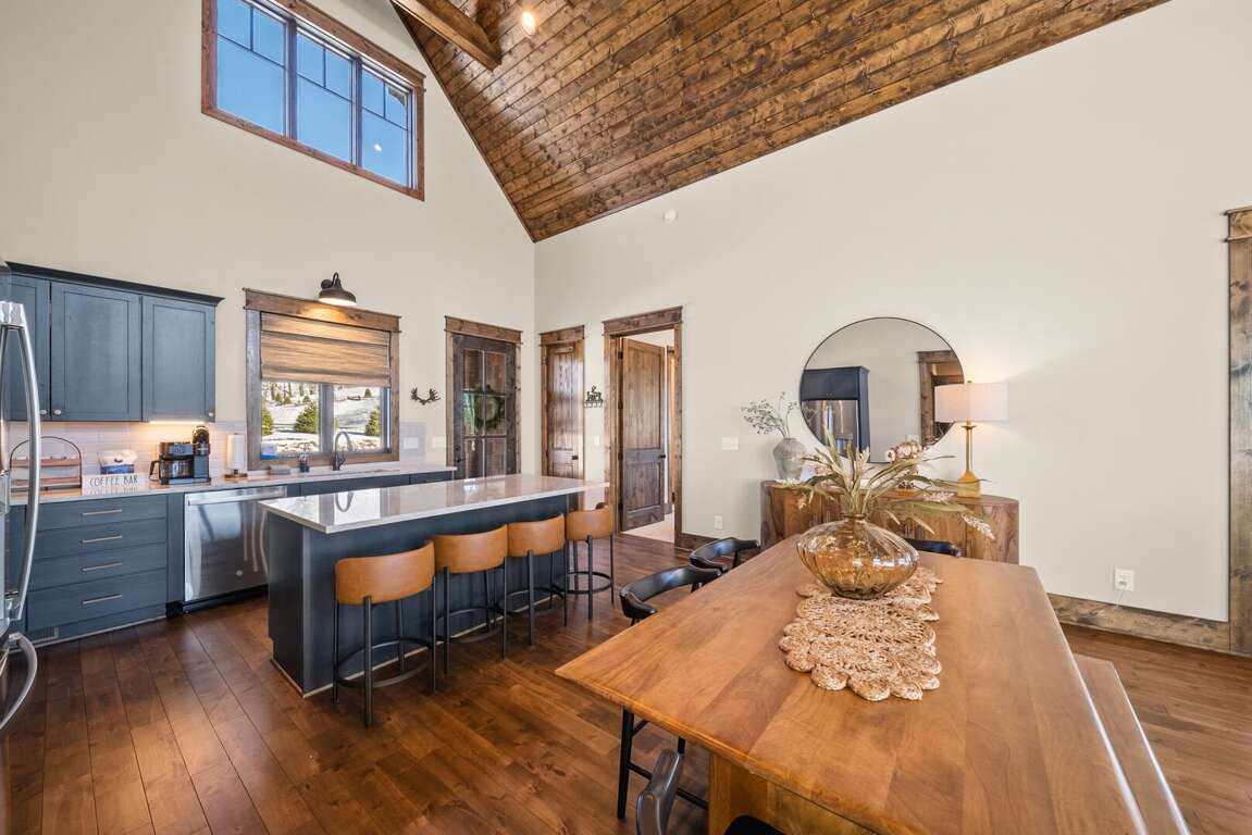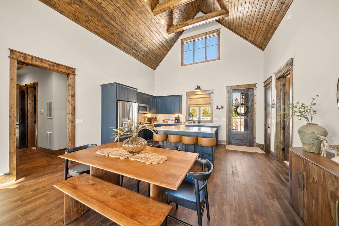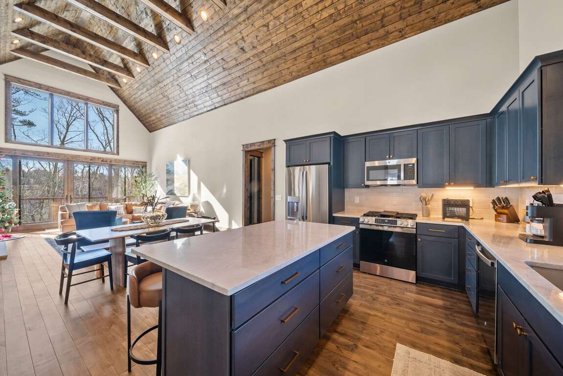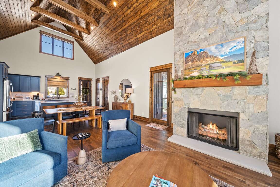 Welcome to Selah Vie at Eagles Nest, a peaceful single-level mountain retreat tucked away with convenient access to the Eagles Nest Winery. As you enter the main level, you are welcomed into a spacious kitchen and great room designed for comfort and connection. The kitchen features quartz counters and a large island with bar seating, stainless steel appliances, and ample space for preparing meals with ease. The dining table seats eight comfortably, making it ideal for shared meals and memorable gatherings. The living room is anchored by a striking floor-to-ceiling stone gas-log fireplace and modern leather seating, creating a warm and inviting space to relax after a day of mountain adventures.<br />