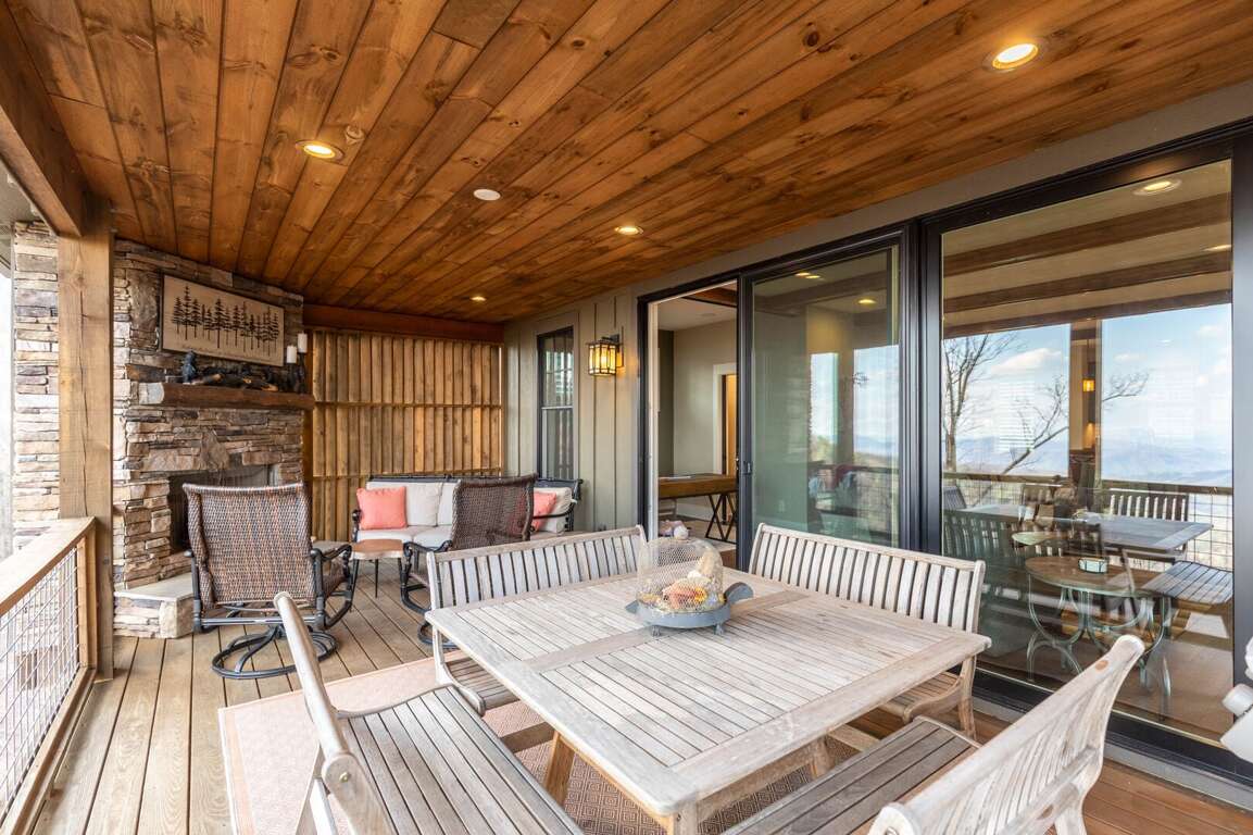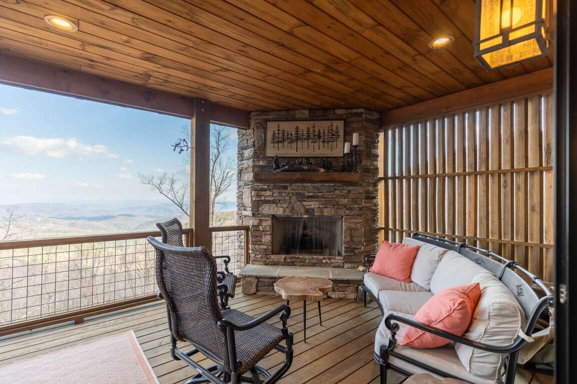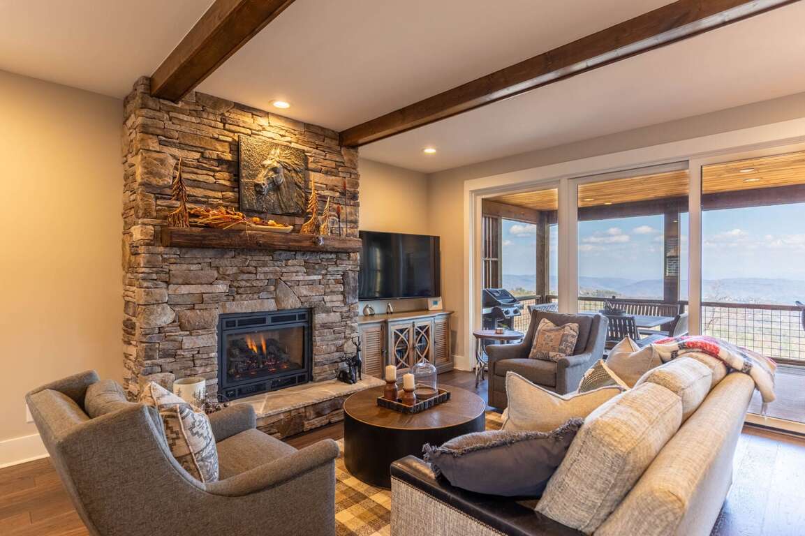 Experience the mountain views inside and out at this home. Designed to offer multiple decks of outdoor relaxation and entertainment options that face the mountain landscape. Cozy up outside by the stone gas fireplace, dine al fresco style at the ample outdoor dining table, or have a cup of coffee on the oversized deck seating just outside of your king suite on the main level. If you have some work to finish up, The Lookout as a home office setup with wi-fi for added convenience. <br />
