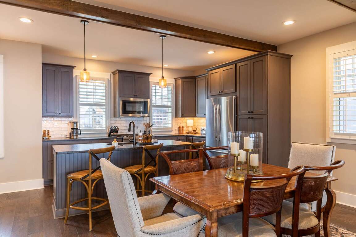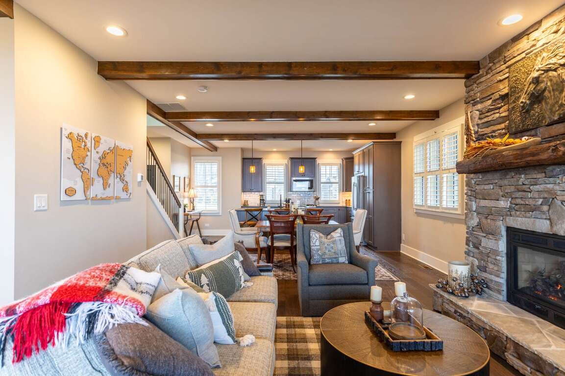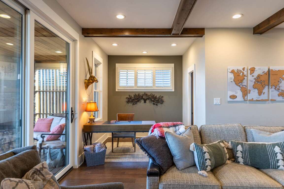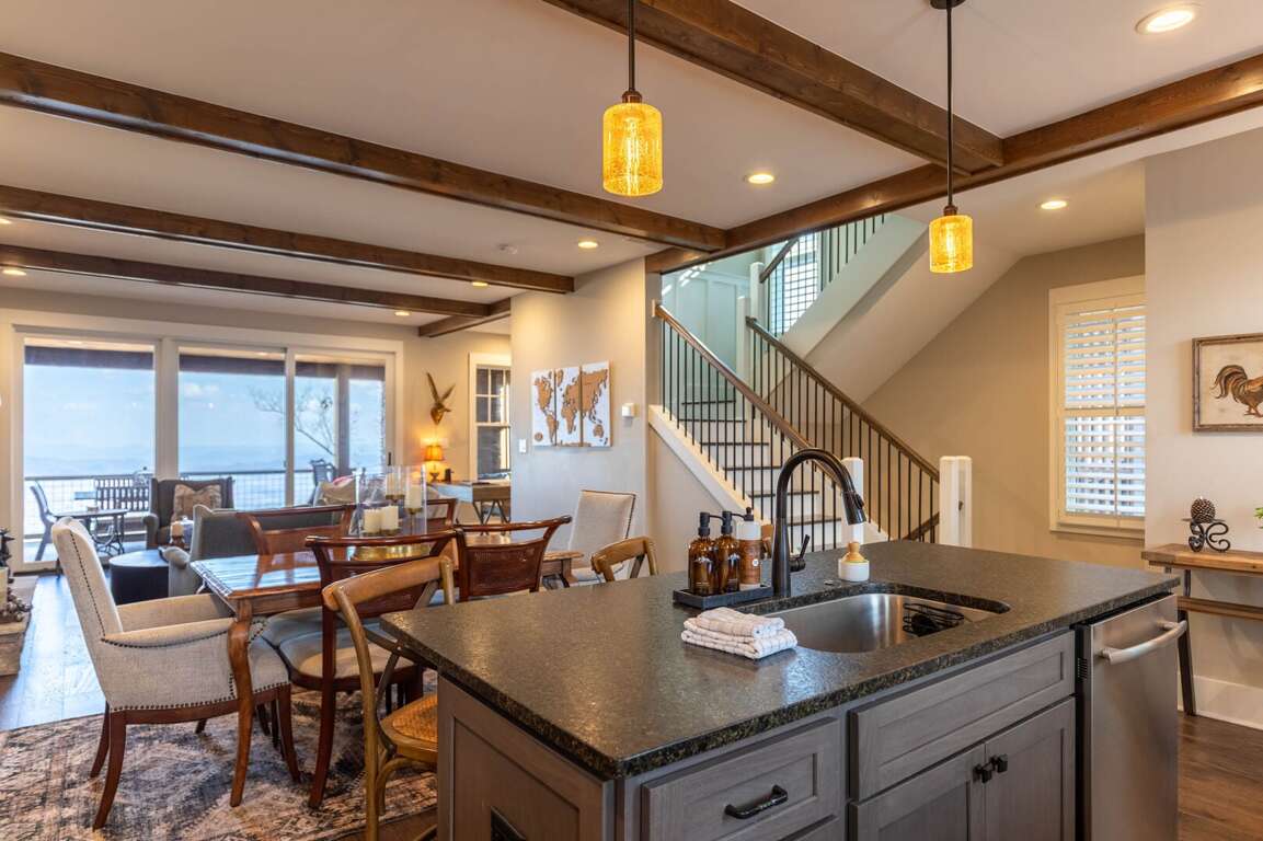 Experience the mountain views inside and out at this home. Designed to offer multiple decks of outdoor relaxation and entertainment options that face the mountain landscape. Cozy up outside by the stone gas fireplace, dine al fresco style at the ample outdoor dining table, or have a cup of coffee on the oversized deck seating just outside of your king suite on the main level. If you have some work to finish up, The Lookout as a home office setup with wi-fi for added convenience. <br />