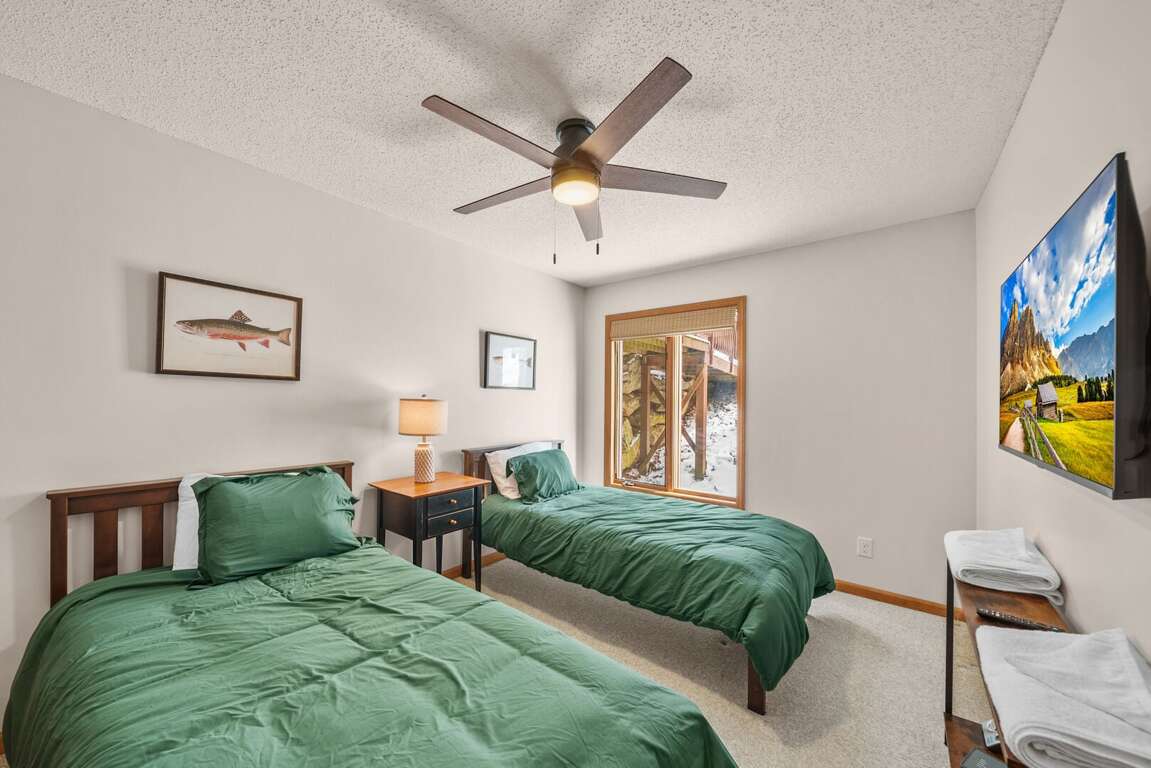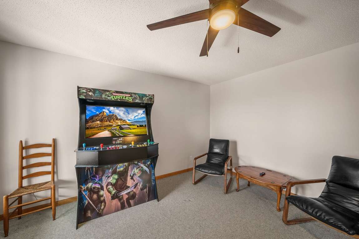 The lower level provides additional sleeping and entertainment space. Bedroom 5 is a king bedroom with a TV and ceiling fan, and Bedroom 6 offers two twin beds, also with a TV and ceiling fan. These two rooms share a full bathroom with a tub and shower combination. Downstairs, guests will also enjoy the game room, complete with shuffleboard, a large TV, and a multi-player arcade system that accommodates up to four players, creating the perfect space to unwind after a day of exploring.<br />