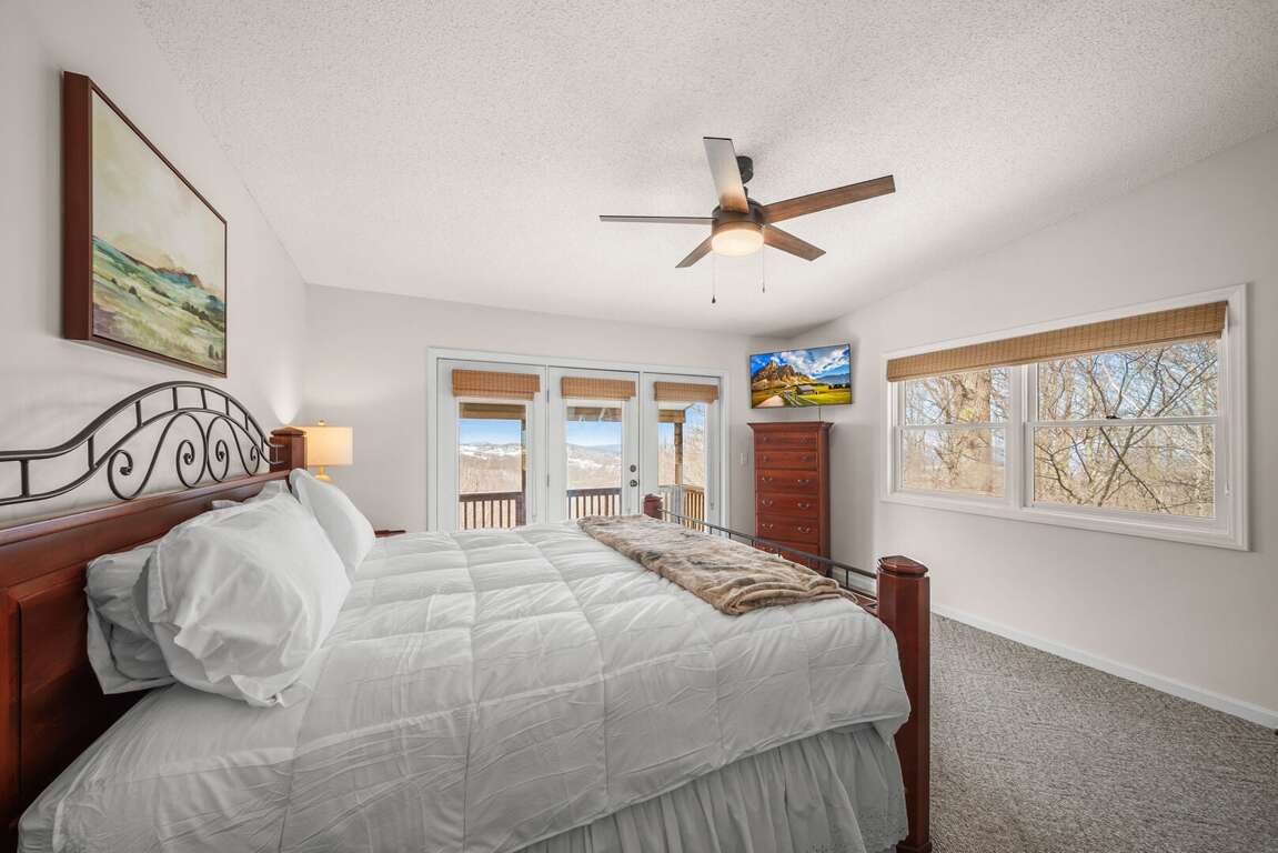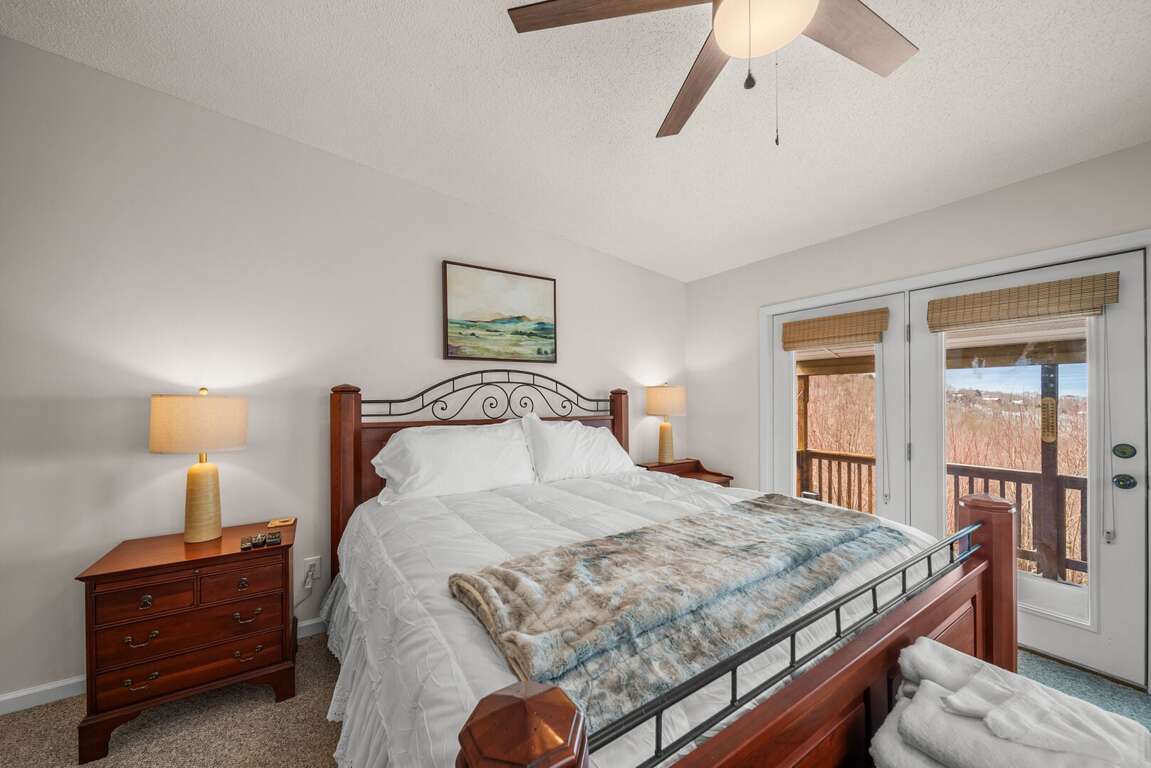 The main level features four bedrooms, including three king ensuites. The family suite includes a king ensuite (Bedroom 1) with a TV, ceiling fan, private deck access, and a bathroom with a tub and shower combination. Connected via a private hallway is Bedroom 2, a queen room with a TV and ceiling fan. This suite can be closed off from the rest of the home and includes access to a hallway bathroom with a shower. Bedroom 3 is a king ensuite located near the front entrance, offering a TV, ceiling fan, and a bathroom with a tub and shower combination. Bedroom 4 is another king ensuite on the main level, conveniently located near the living room. It includes a TV, ceiling fan, and a bathroom with a tub and shower combination that can either remain private or be accessed from the hallway.<br />