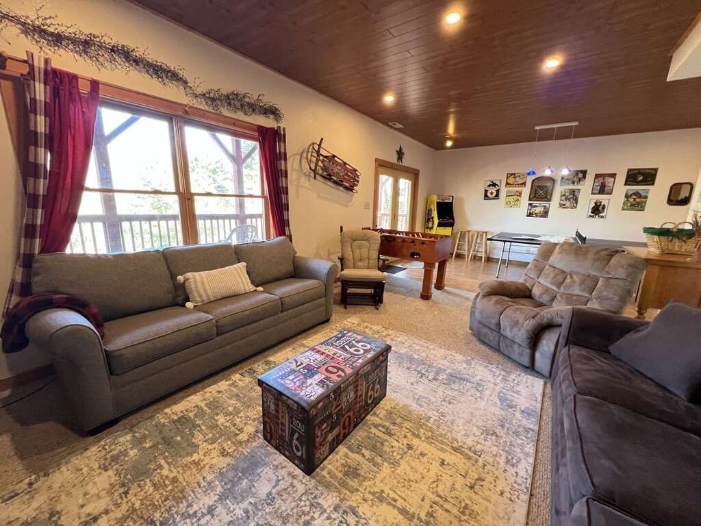 Head downstairs to the lower level entertainment room. We offer ping pong, foosball and the iconic Pac Man arcade game. The nearby second living room is setup with comfort in mind! The plush recliner and family couches with TV are perfect for a movie together or just great conversation. <br />