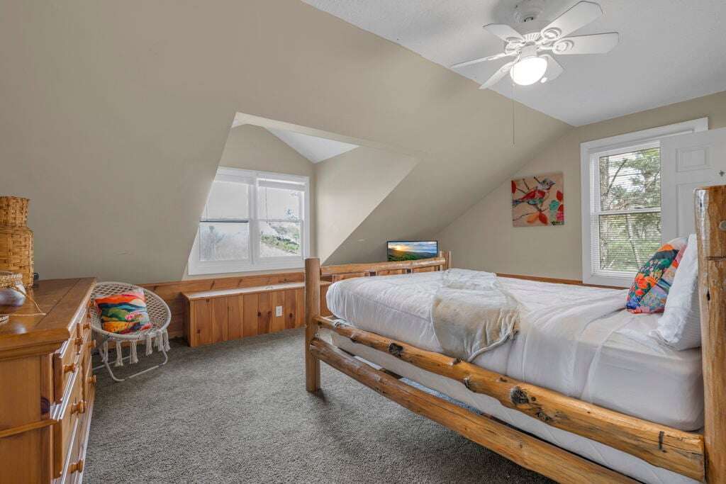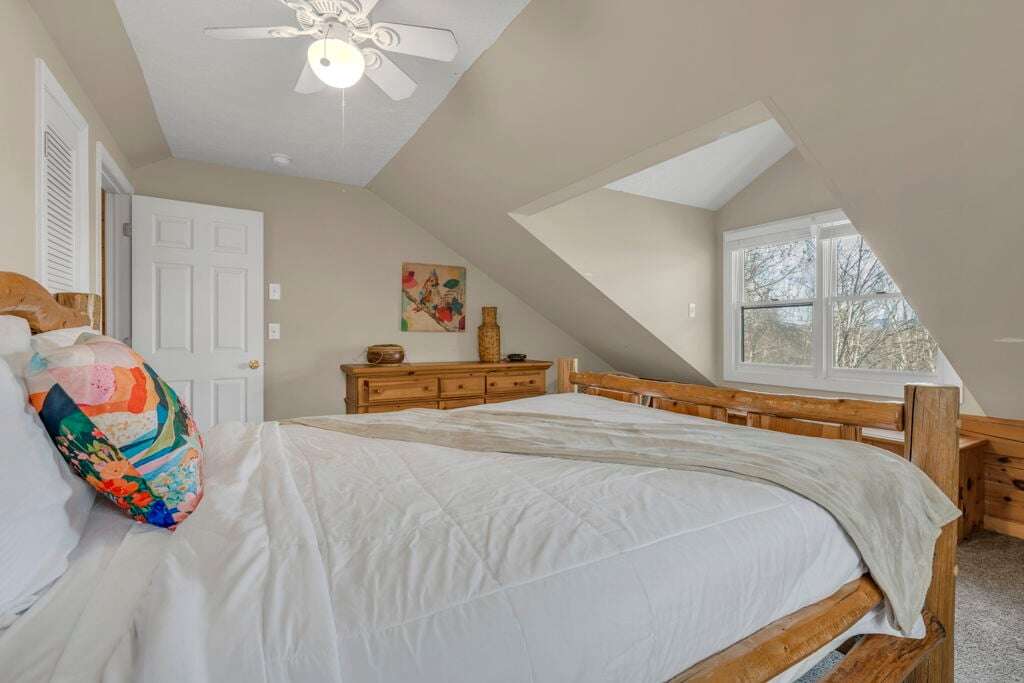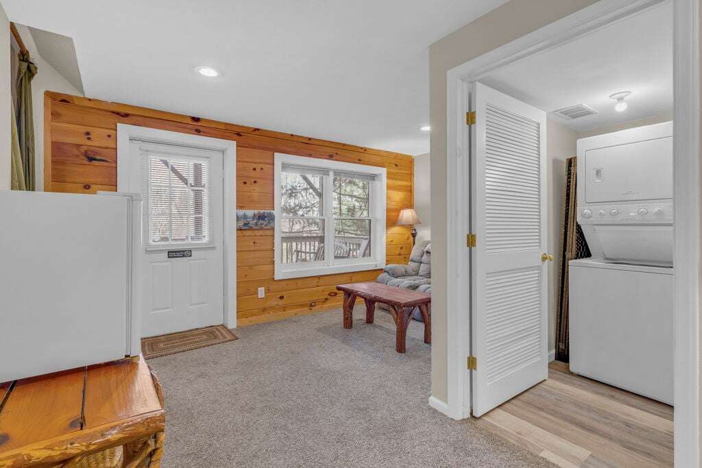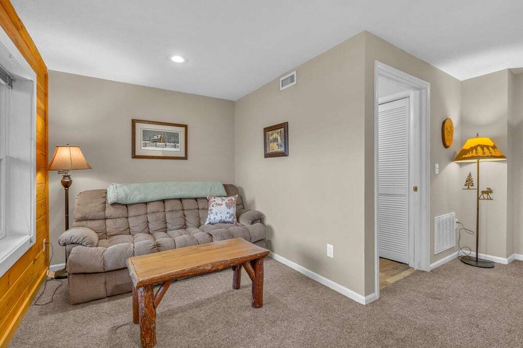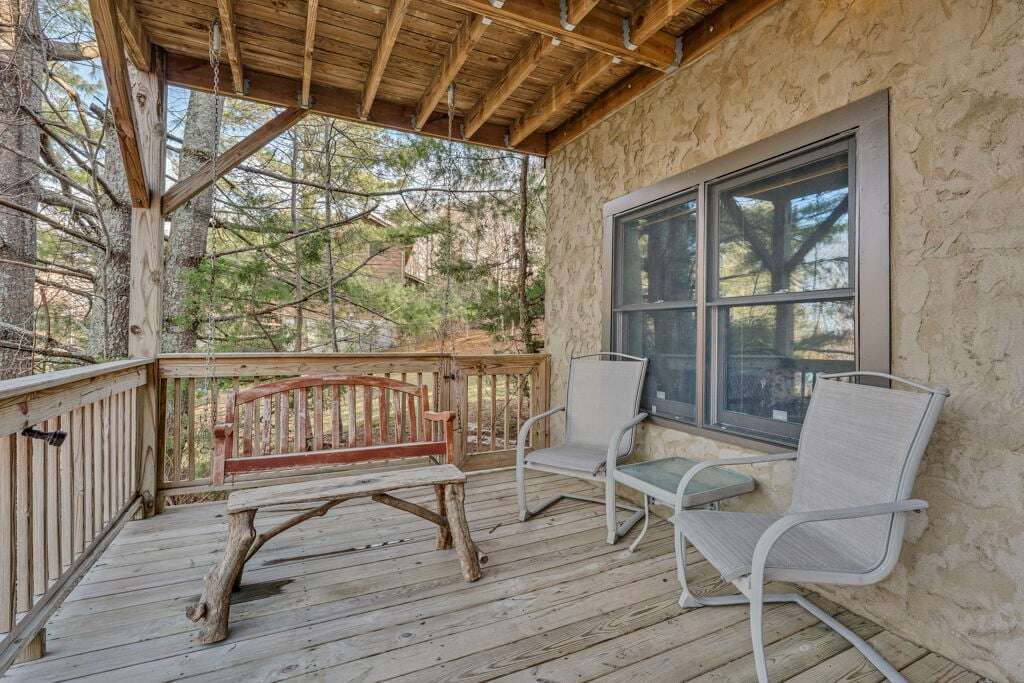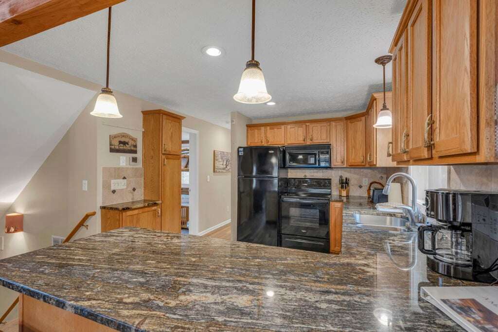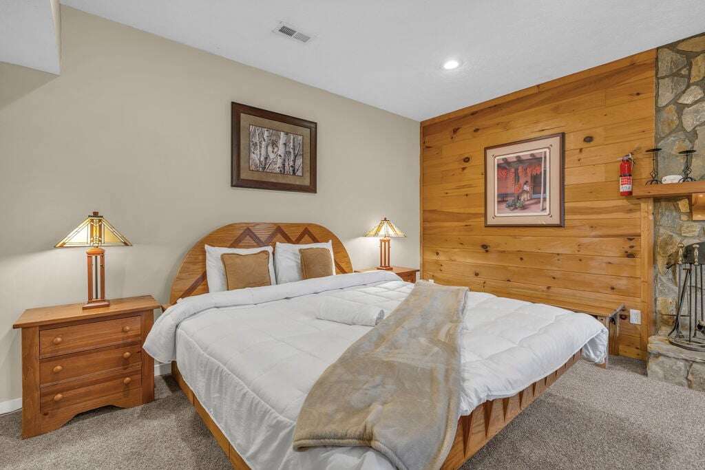 The Mountain Hideaway Getaway boasts a range of cabin features designed to provide a comfortable and memorable retreat for guests seeking a rustic mountain experience. The cozy living room is equipped with a 70 LCD Smart HDTV with Roku and surround sound, perfect for unwinding after a day of outdoor adventures. The stone wood-burning fireplace adds to the ambiance, creating a warm and inviting atmosphere. The fully equipped upgraded kitchen and dining area make meal times a joy, while the bedrooms offer unique touches such as stunning handcrafted log bunk beds and beautifully designed log beds. For outdoor cooking enthusiasts, an outdoor grill is provided, allowing guests to savor delicious meals against the backdrop of the picturesque surroundings. These thoughtful touches ensure that every aspect of your stay is filled with comfort and enjoyment.