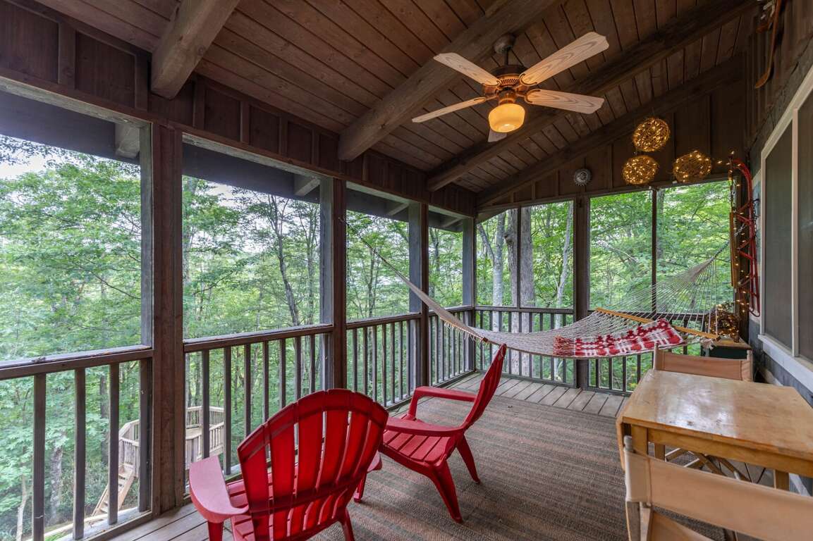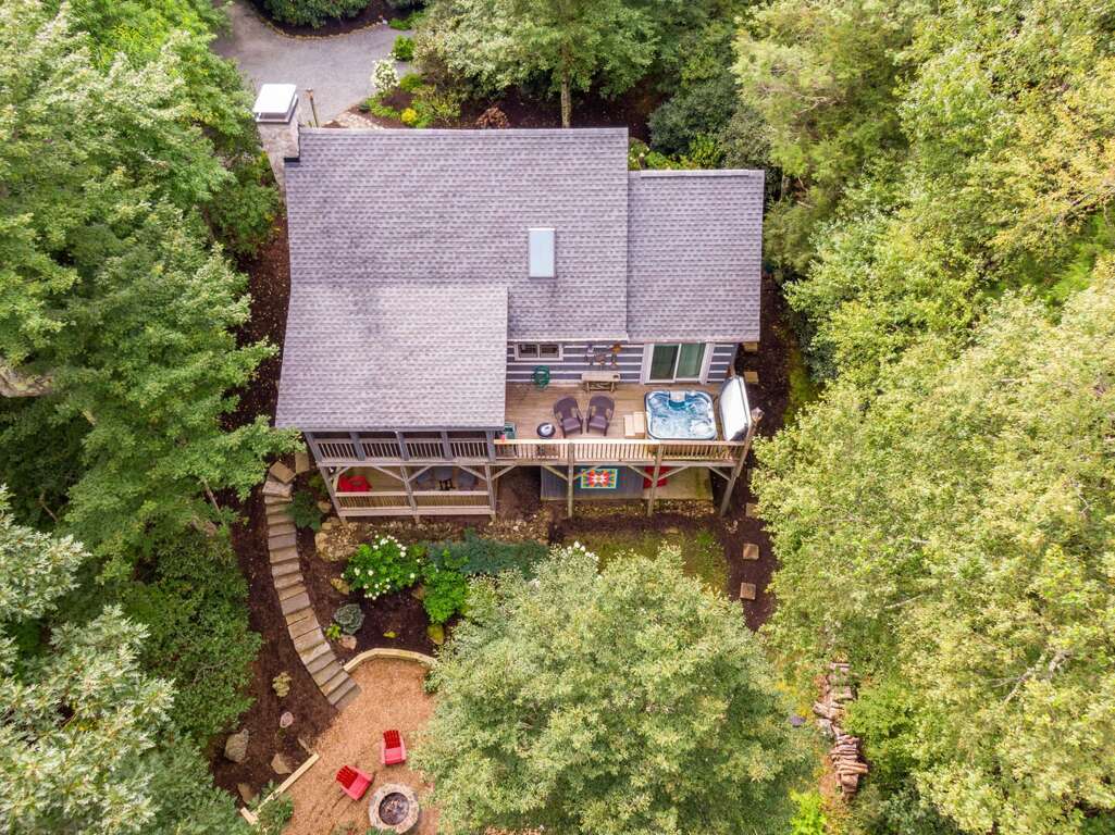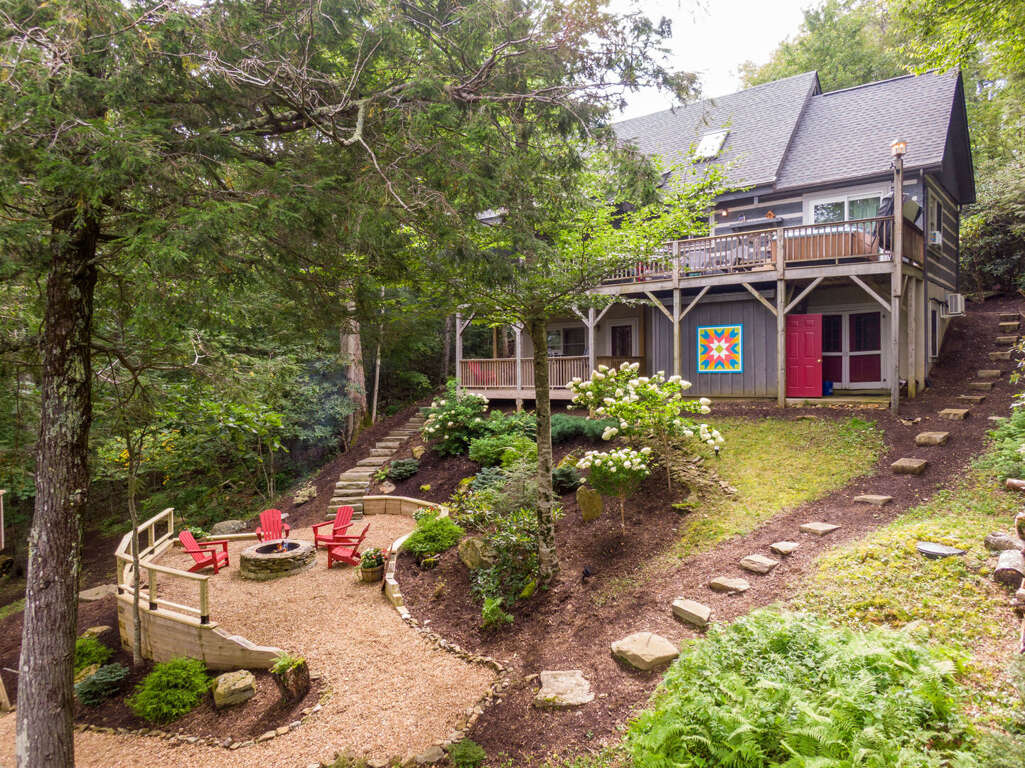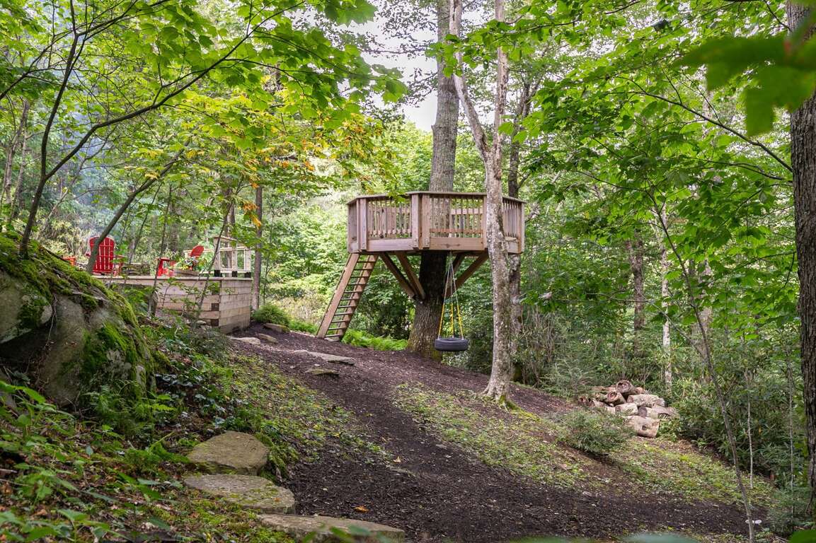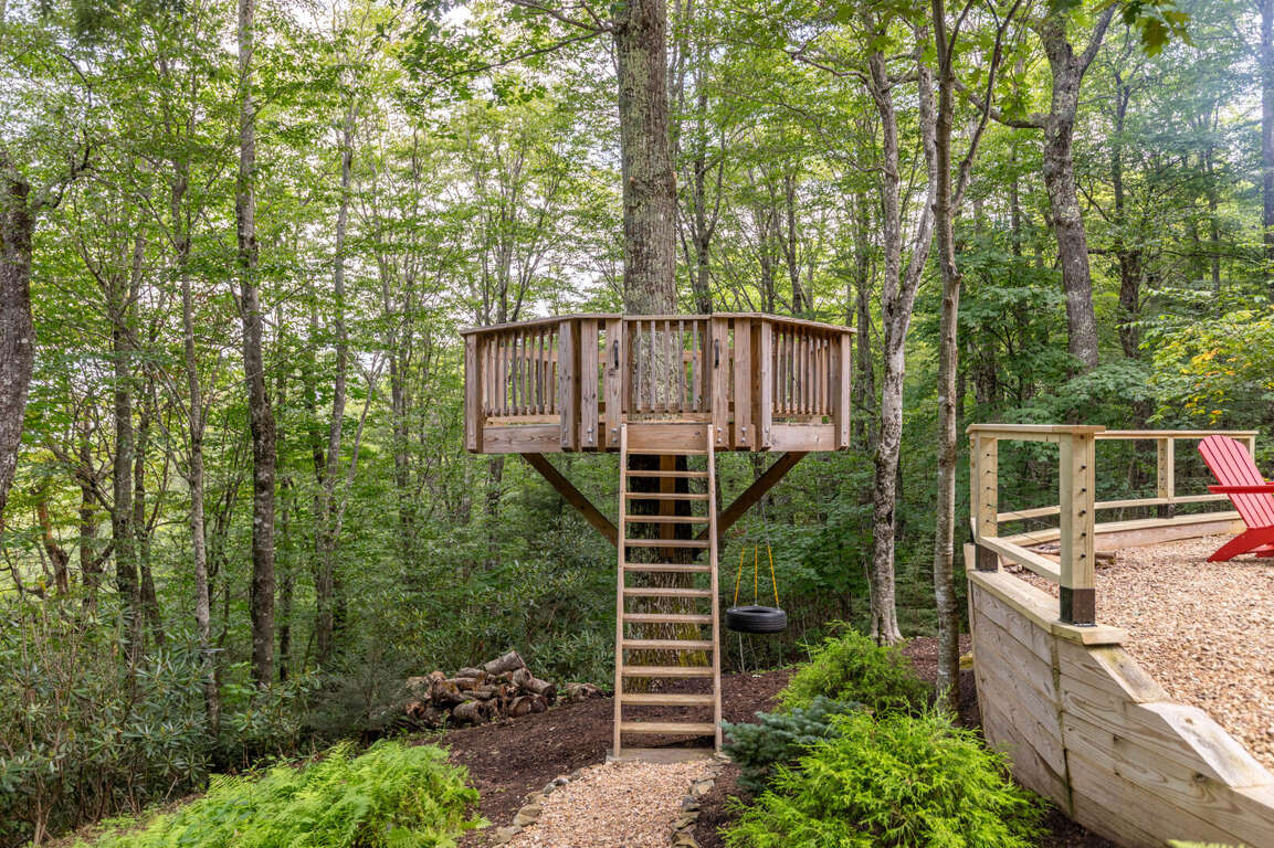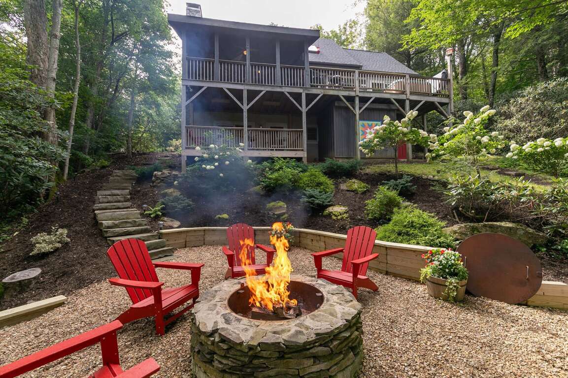 Nestled within a private, secure, and gated community, the cozy cabin in Grandfather, NC offers a tranquil archway of trees at the entrance, beautiful views, and a backyard oasis for guests to enjoy. The backyard has been recently transformed with new amenities in 2021, including a second deck off the lower bedroom, a huge entertaining space with a custom-built fire pit, and an open treehouse large enough for adults and children. Additionally, the backyard features gorgeous new landscaping, a tire swing, and a secret hiking loop. Guests can explore this secret hiking loop, immersing themselves in the natural beauty of the surrounding area. Whether it's relaxing in the serene backyard oasis or embarking on a nature-filled adventure, the outdoor amenities at Scarborough Fair provide the perfect setting for a rejuvenating stay.
