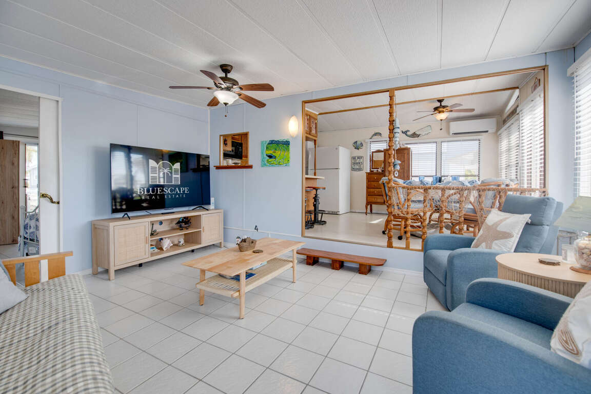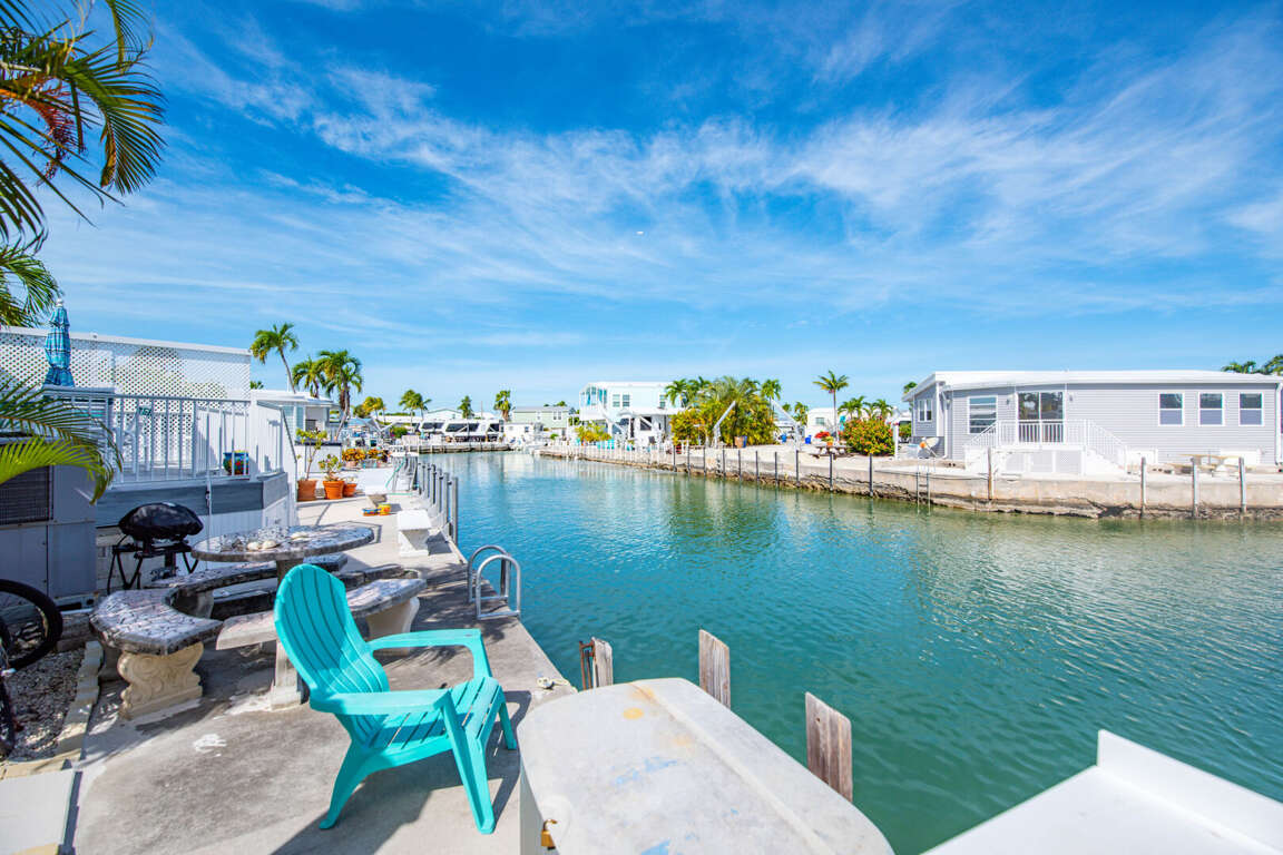 Escape to this inviting 2-bedroom, 1.5-bath canal-front retreat where tropical charm meets effortless access to the beautiful Lower Keys waters. Smuggler's Cove #414 is set along a 23-foot seawall that accommodates boats up to 23 feet, this home is perfect for boaters and anyone dreaming of smooth, easy trips out to explore the islands. Mature palm trees sway over the lot, creating a relaxed island vibe, while a fish-cleaning station and convenient water hookup at the dock make your fishing days simple and enjoyable. Inside, a bright and comfortable living space welcomes you home with a 65" smart TV, a dining table for five, a practical kitchen setup for preparing meals, and the convenience of an in-unit washer and dryer. The primary bedroom offers a cozy queen bed, its own smart TV, and a quiet mini-split, while the guest bedroom features a twin trundle with its own wall A/C. A full bathroom with a tub/shower combo plus an additional half bath provide plenty of room for everyone. After a day on the water, unwind at the concrete canal-side picnic table and enjoy dinner outdoors as the evening breeze moves through the palms. This is the perfect place to relax, recharge, and enjoy the true spirit of the Florida Keys. This home is dog-friendly with a non-refundable pet fee of $250 per dog.