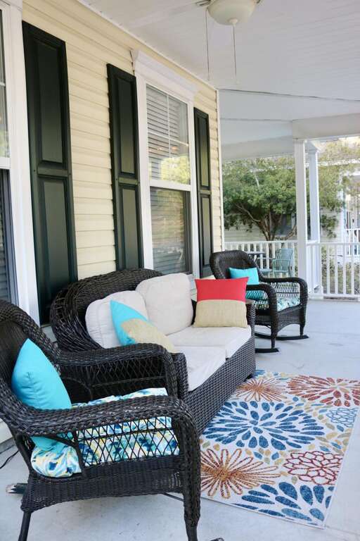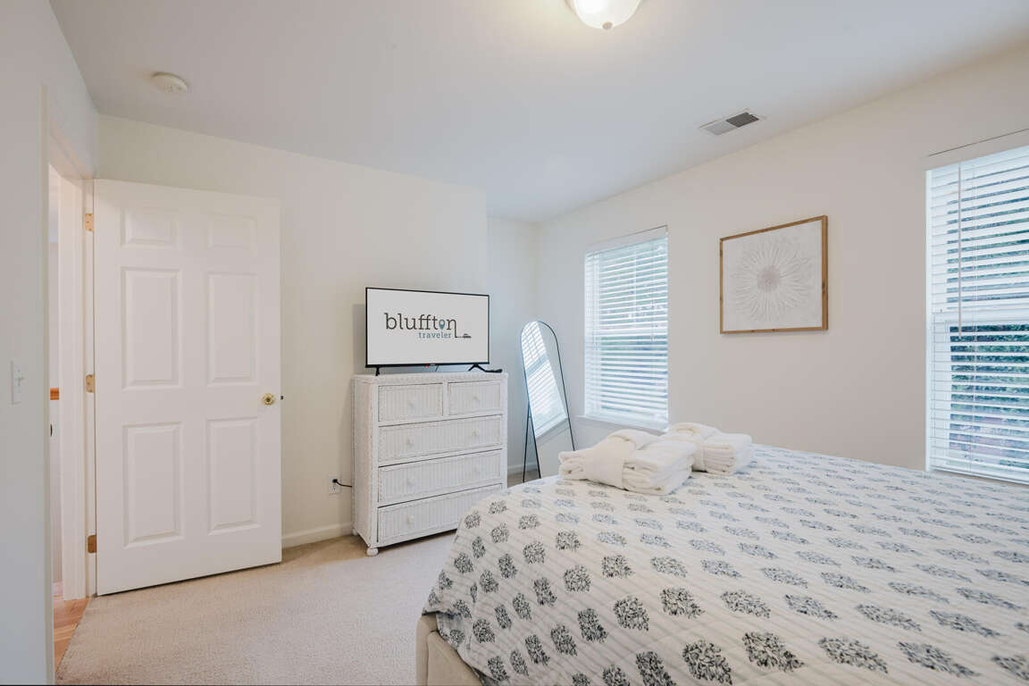 Outside on the front porch you will find Adirondack chairs for enjoying your morning brew or the warm southern evenings, and the backyard and driveway parking offers privacy and convenience for your belongings. A community pool, open during the season, adds a refreshing touch to your stay in Bluffton, SC.