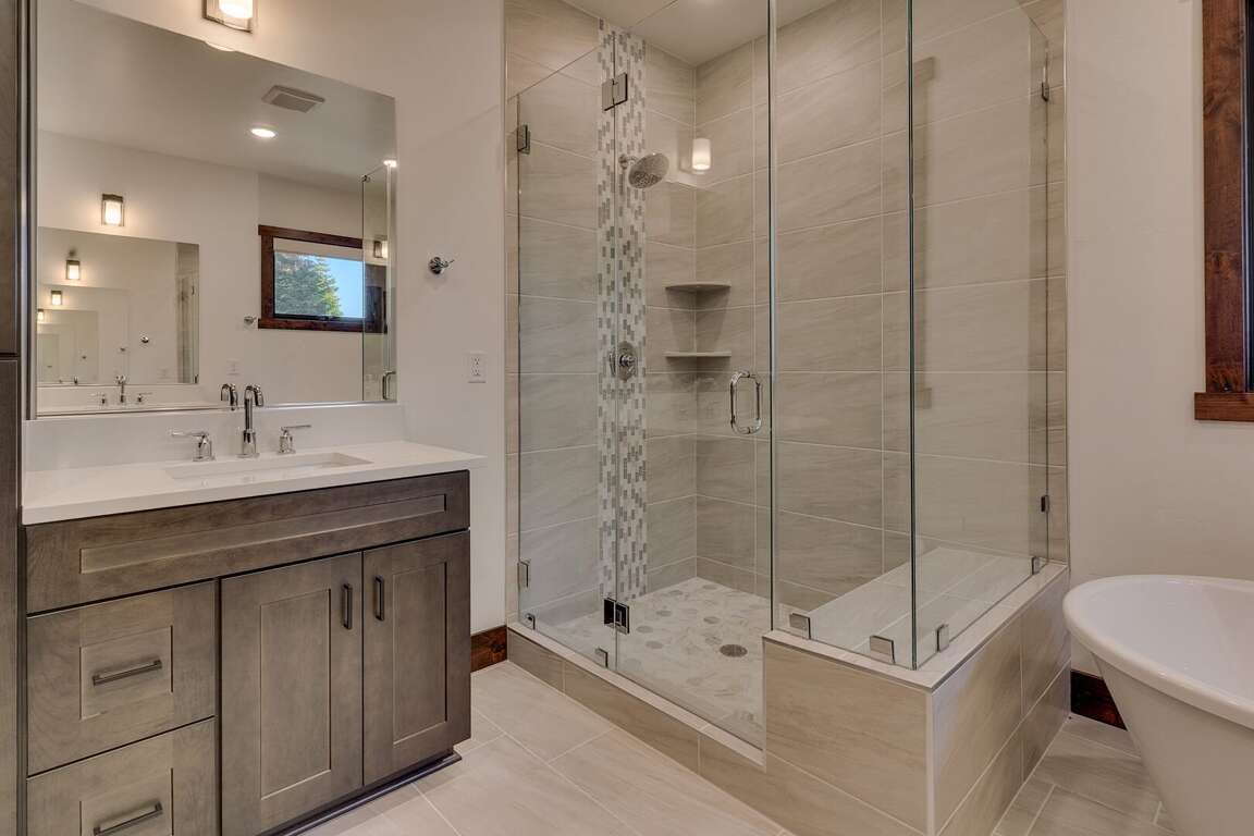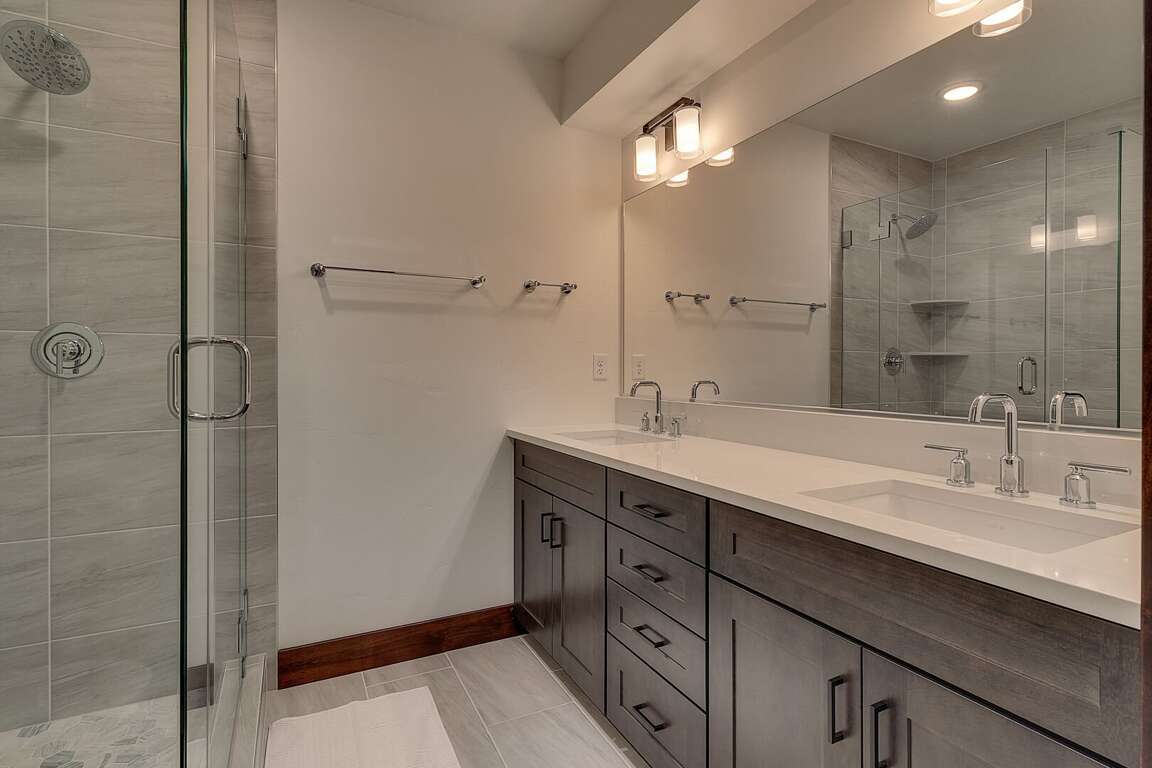 Bathroom 2 – 1st floor, dual sinks, large enclosed shower<br />