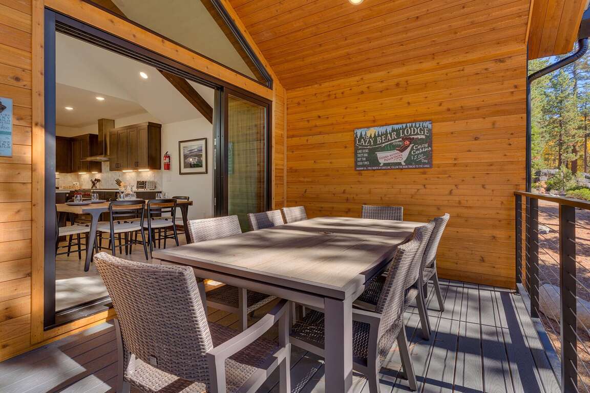 This home offers a serene escape surrounded by towering pine trees and peaceful forest scenery. The outdoor spaces are thoughtfully designed with furnished patios for dining, lounging, and taking in the natural beauty.<br />