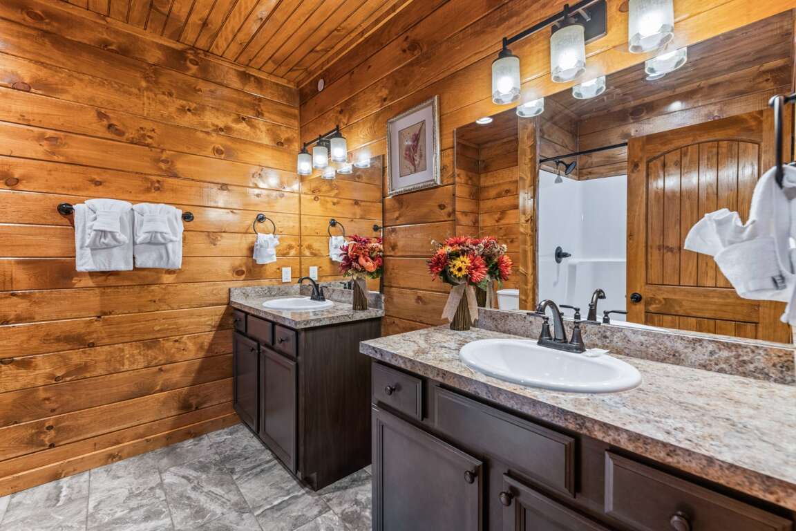 Breathtaking Views is a 10 bedroom cabin - You can bring your whole family or friends and enjoy the scenic view that Breathtaking Views can offer. Create memories with your loved ones while having picnic on our Outdoor Covered Picnic Pavilion. After a long day, relax and unwind on one of the two hot tubs or just enjoying the midnight view. You can also use the Home Theater with Theater Seating and watch your favorite movies or spend time in our Game room. Book Now!
